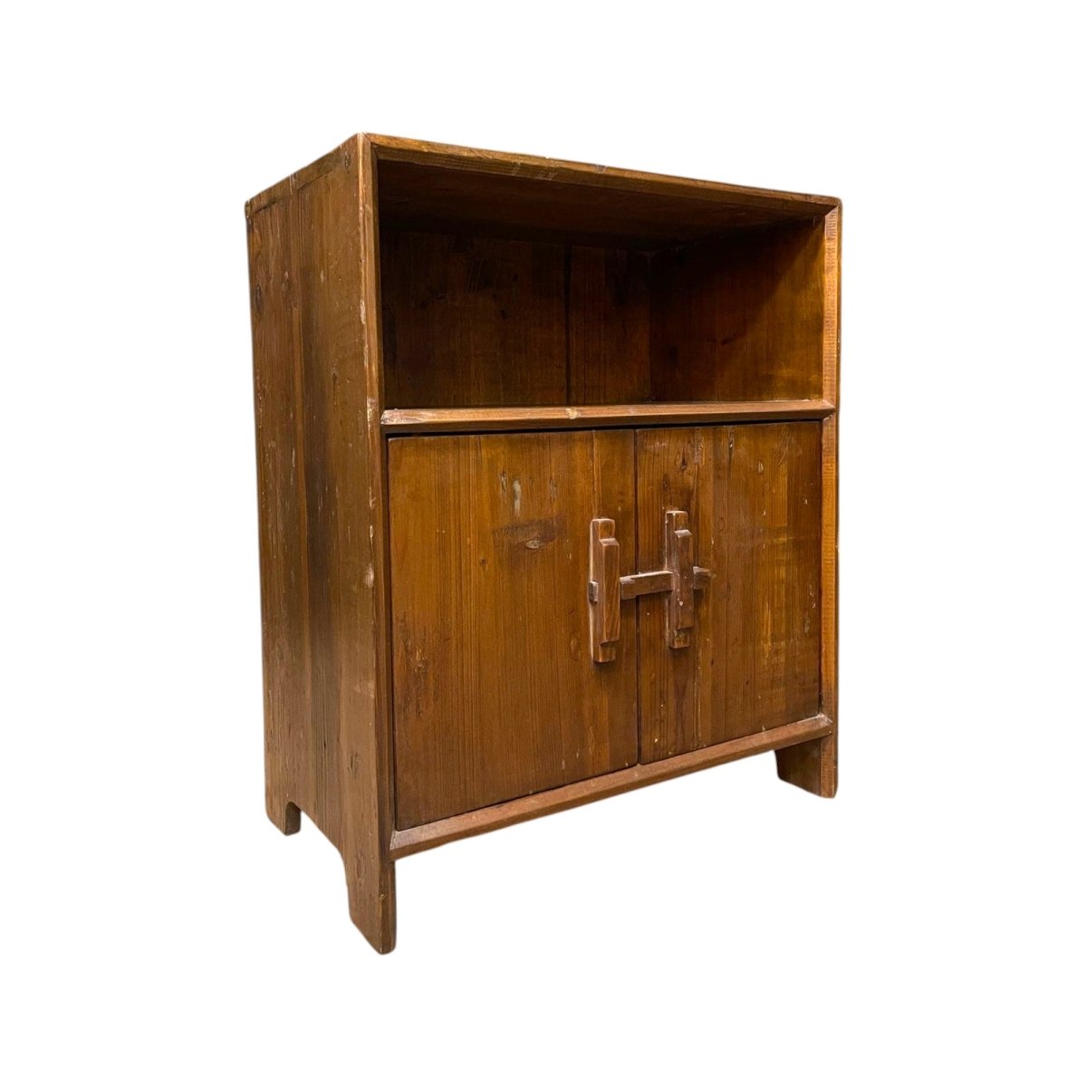 Provincial style Chinese recycled timber side cabinet, featuring a doored section with a shelf.