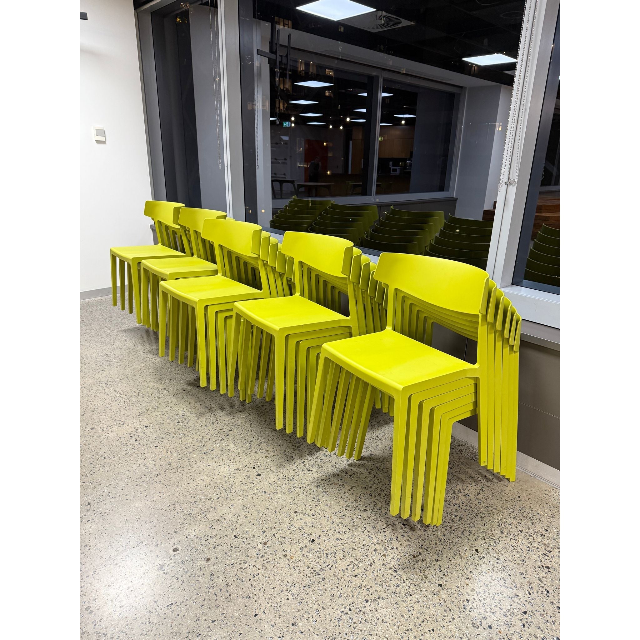 The vibrant green finish brings a bold pop of colour to any environment, while the stackable design ensures convenient storage and space efficiency.
