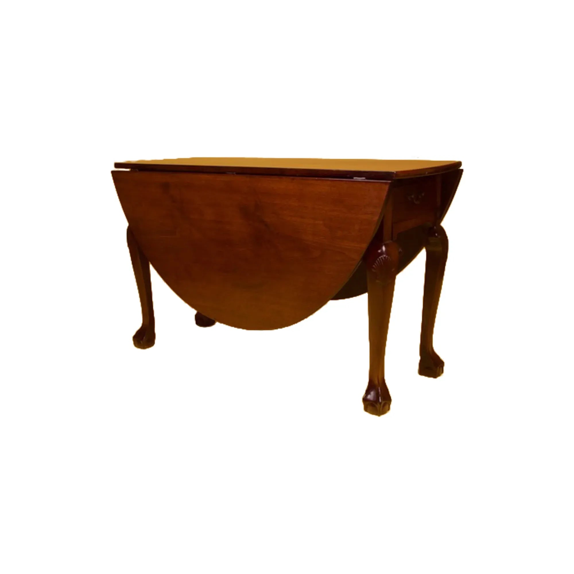 This is an excellent example of a rare and genuine antique English 18th Century circa 1760, George II, oval drop side, gate leg Dining Table of the finest quality totally hand made by craftsmen from prestigious imported dense Central American Cuban Mahogany and is still in amazing excellent original condition. The timber is nicely figured and of warm mid honey colour. The shaped cabriole legs are embellished with raised shell carvings to the knees and classic carved ‘Chippendale’ ball and claw feet.