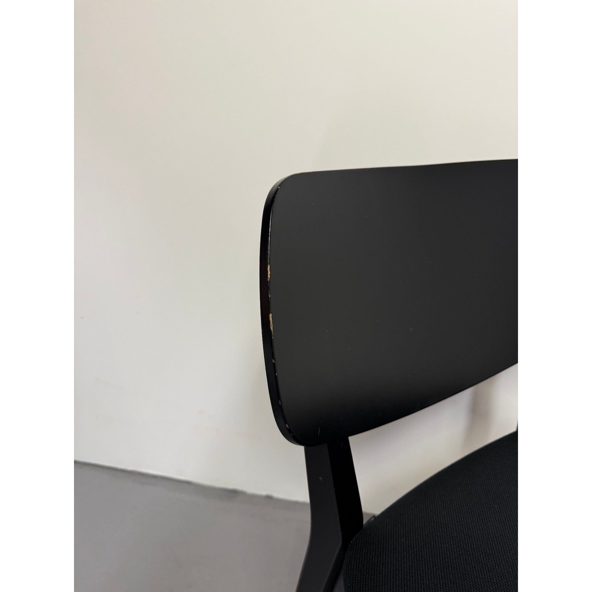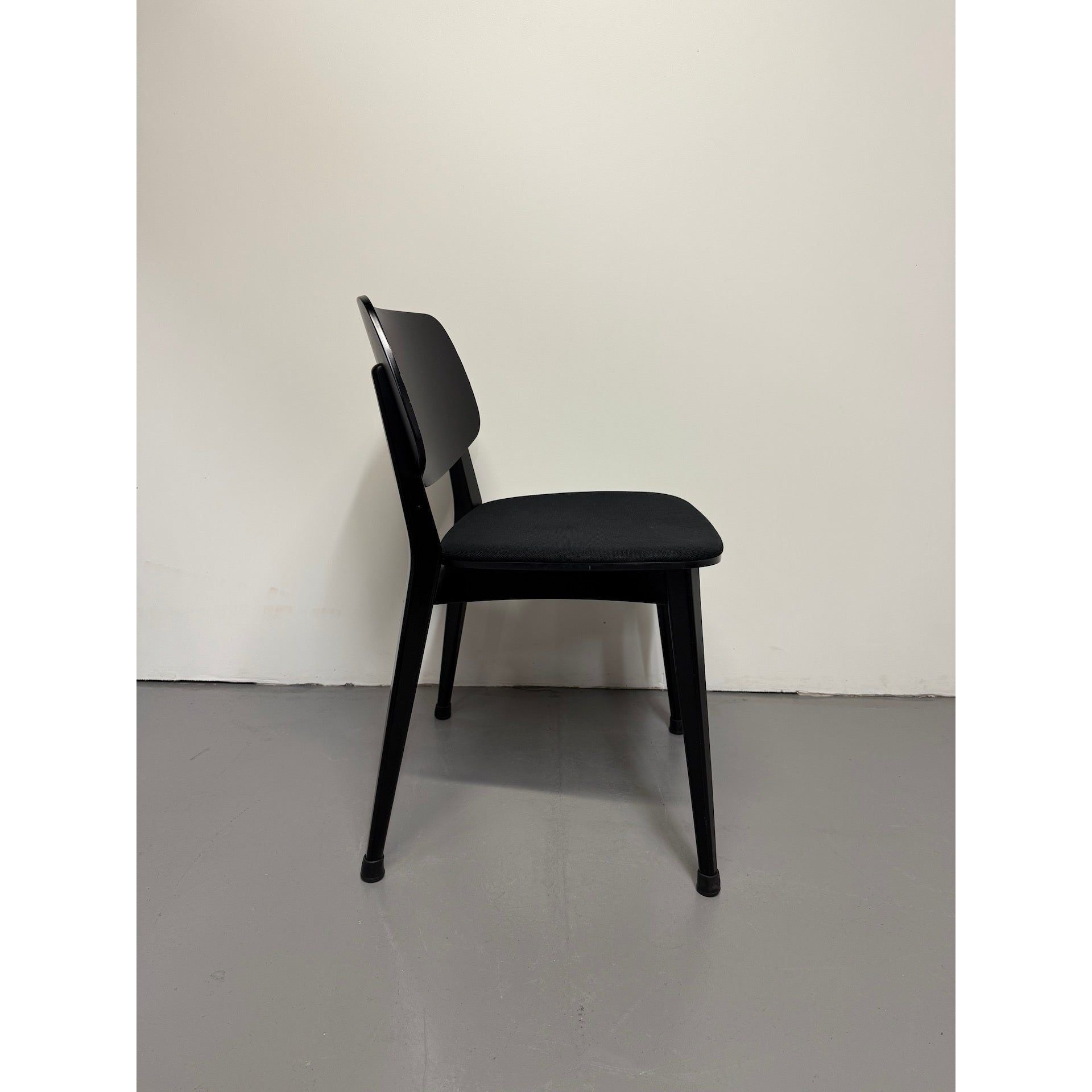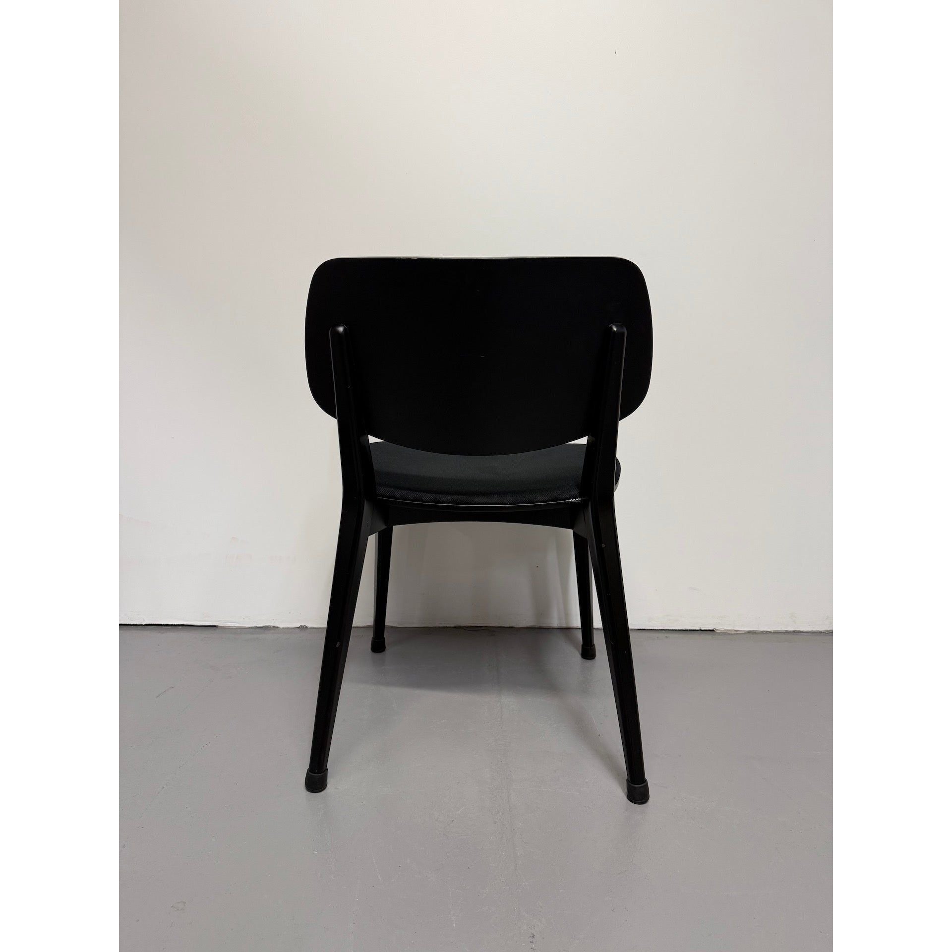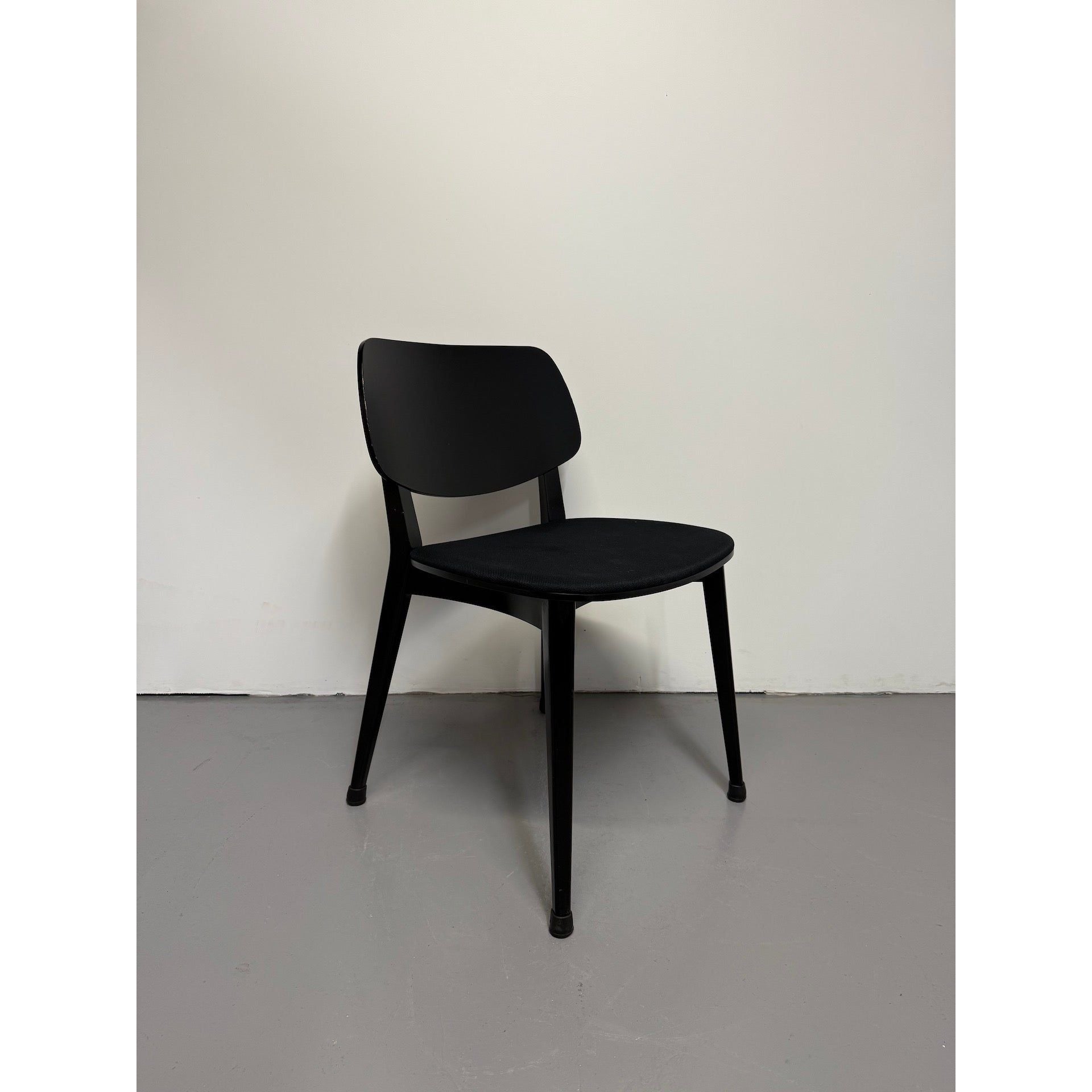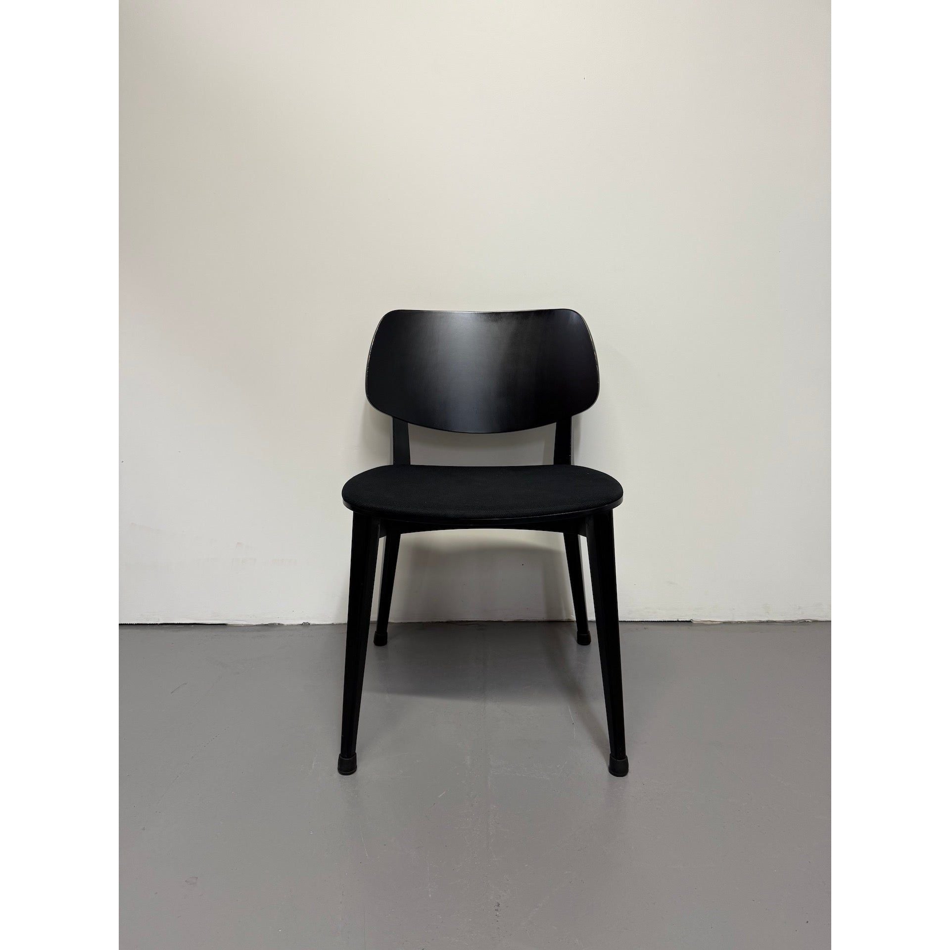 This all-black version pairs a stained beechwood backrest and frame with an upholstered black fabric seat, creating a cohesive, understated look that feels both modern and timeless.