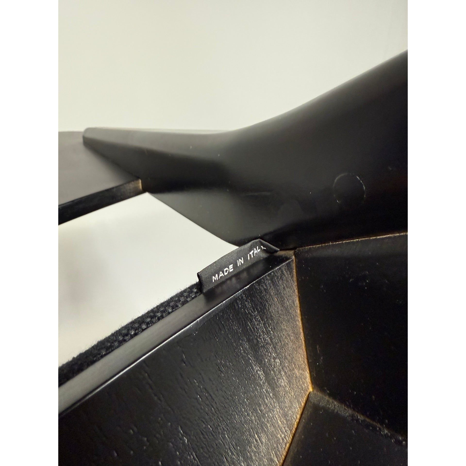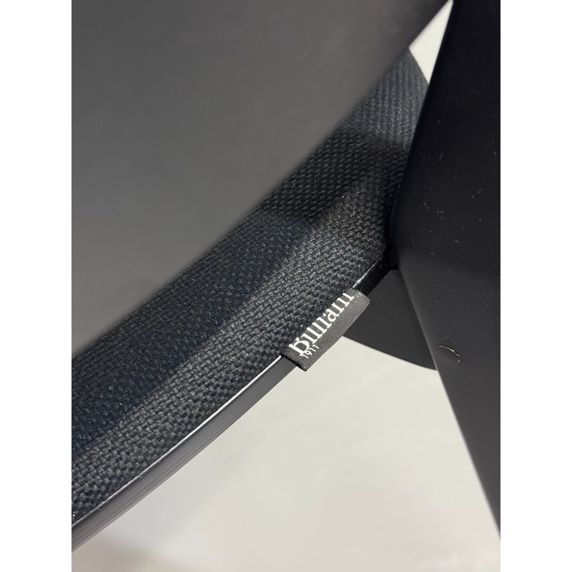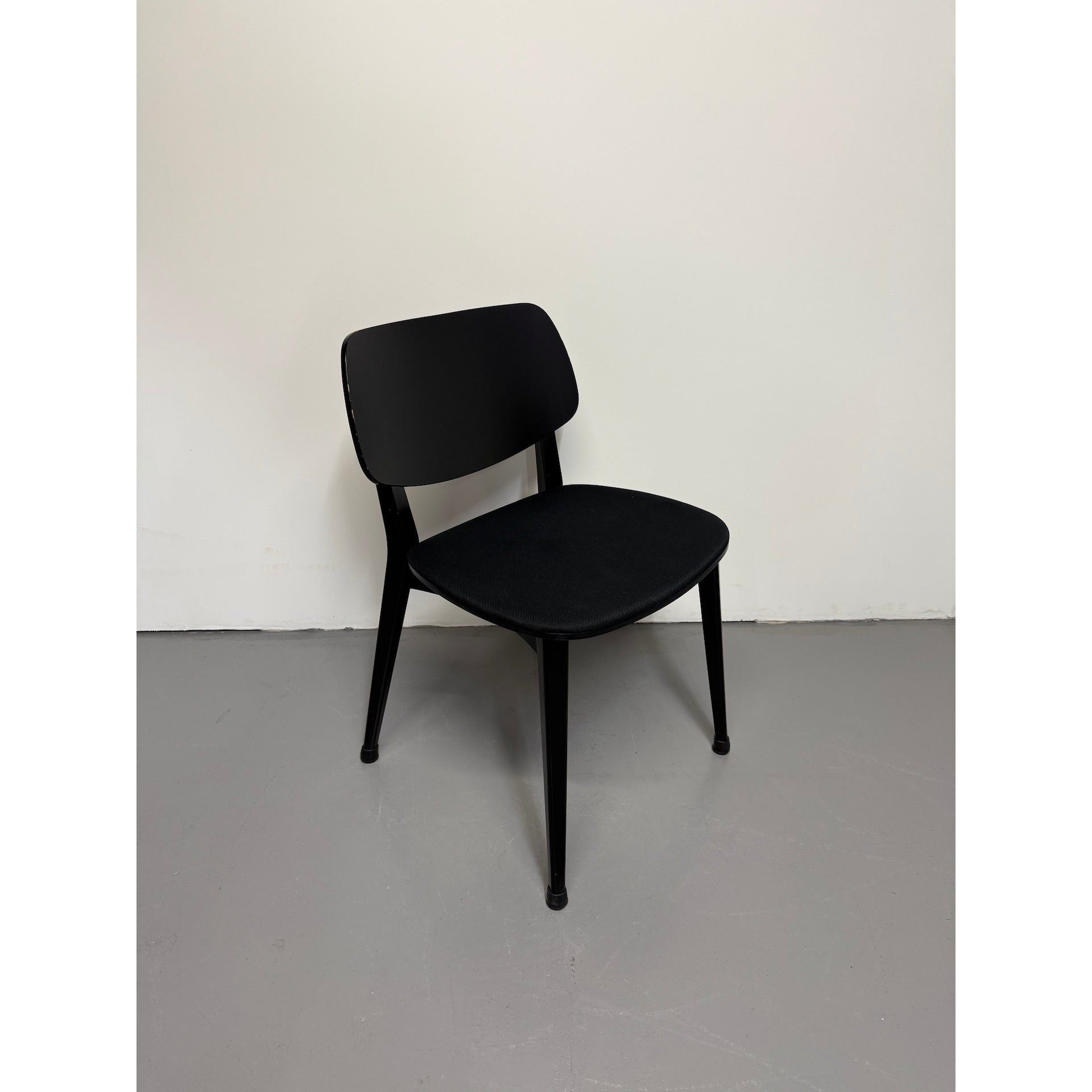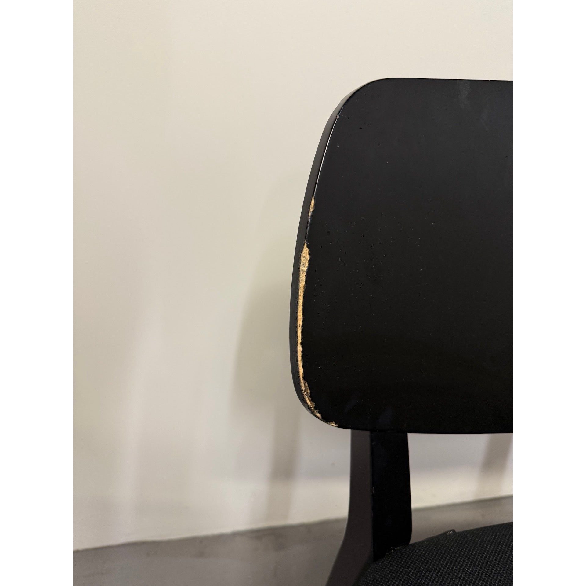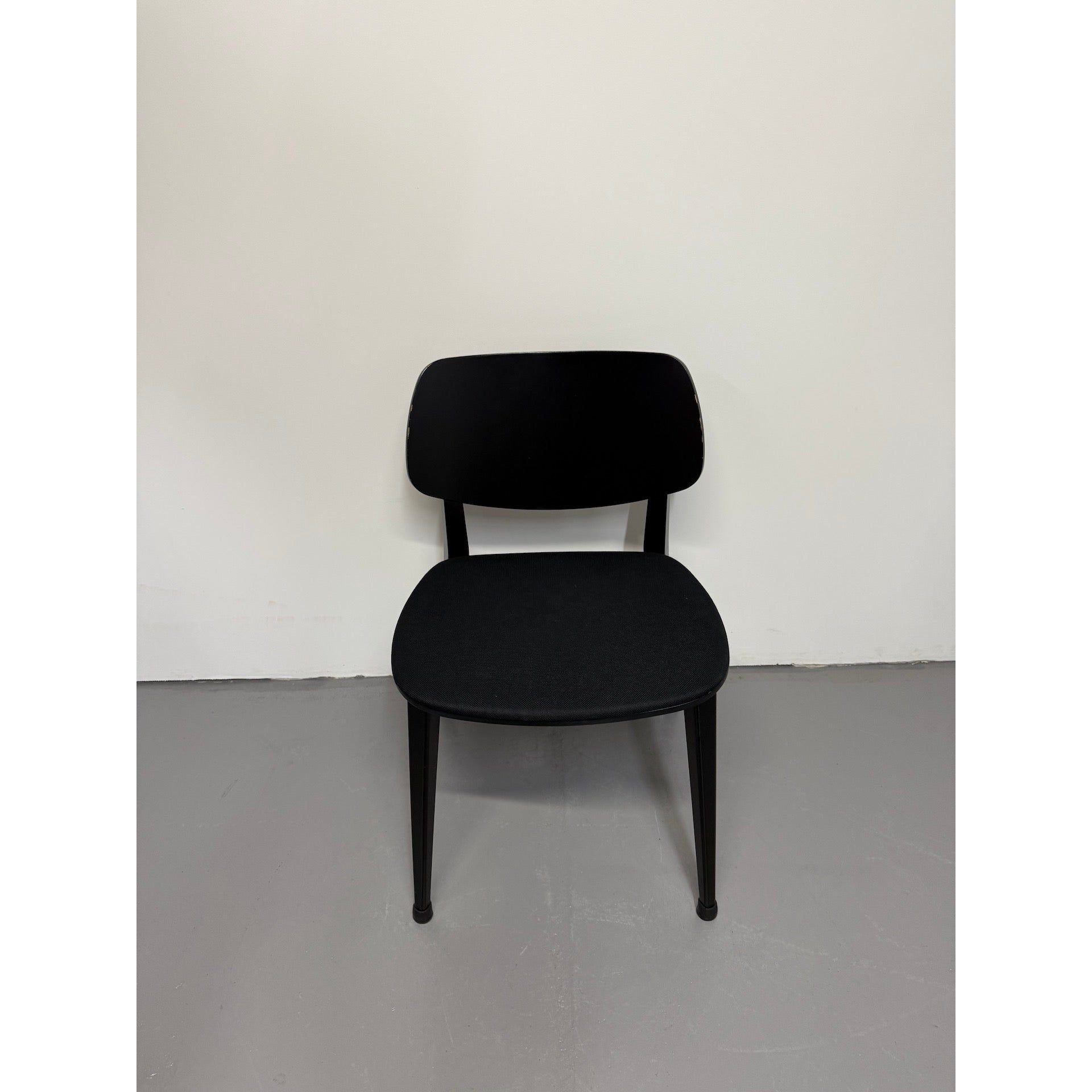 This all-black version pairs a stained beechwood backrest and frame with an upholstered black fabric seat, creating a cohesive, understated look that feels both modern and timeless.
