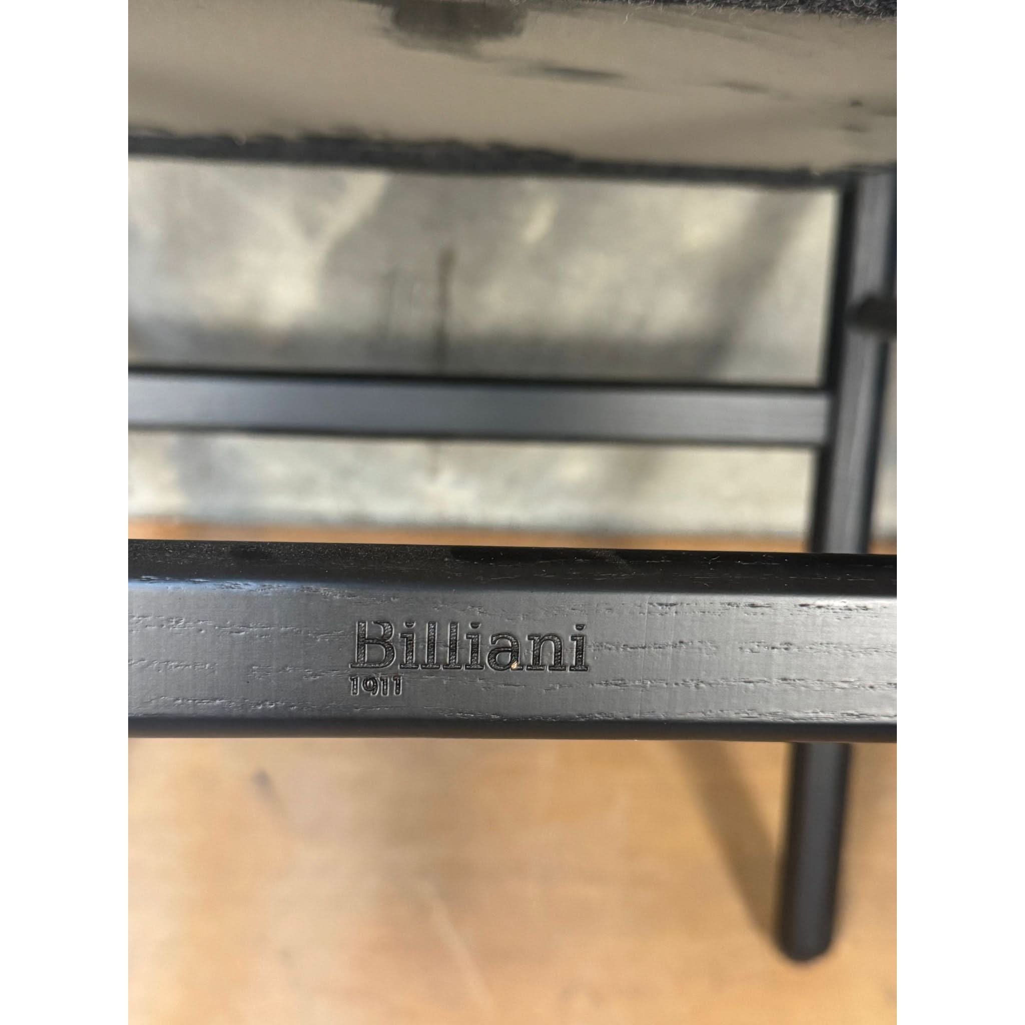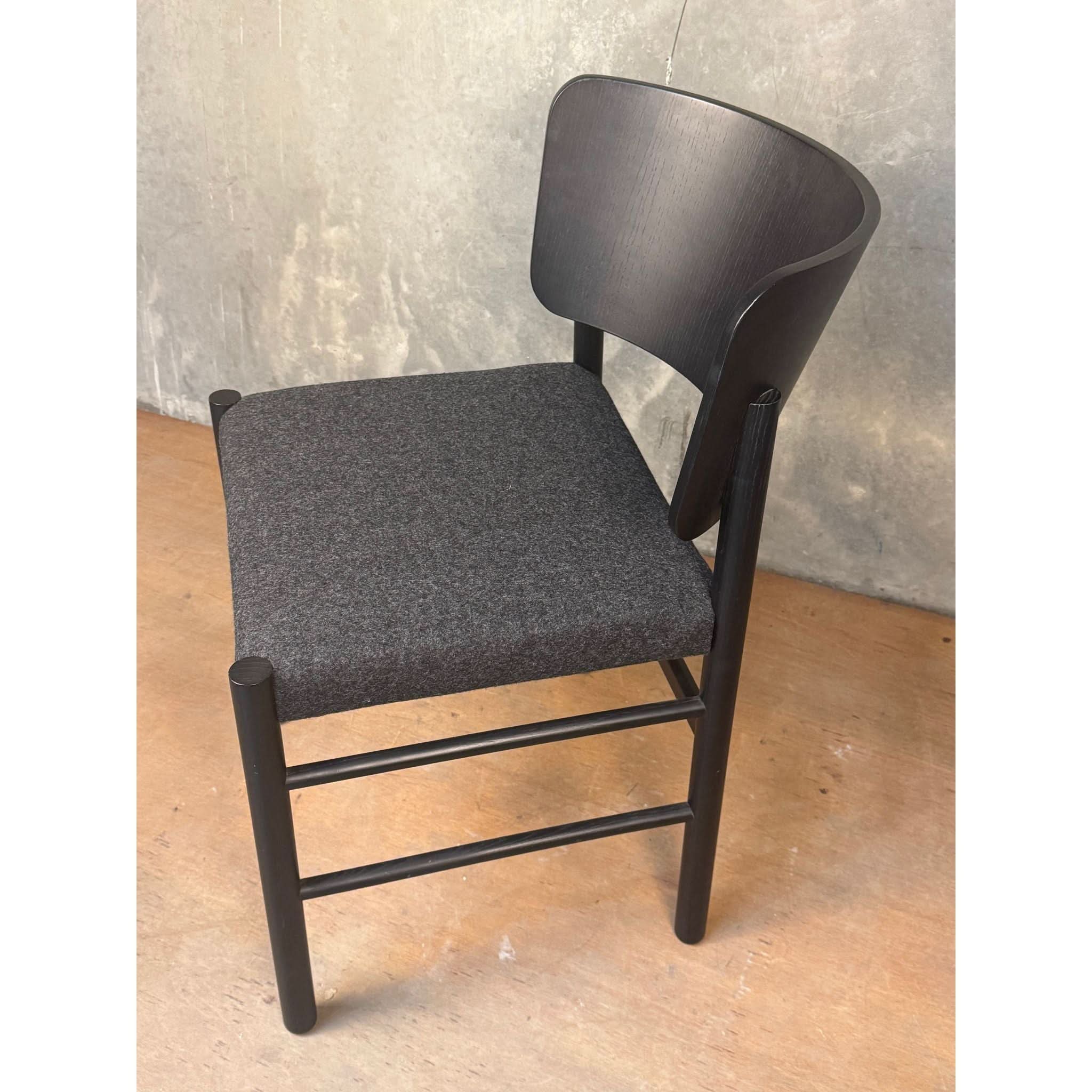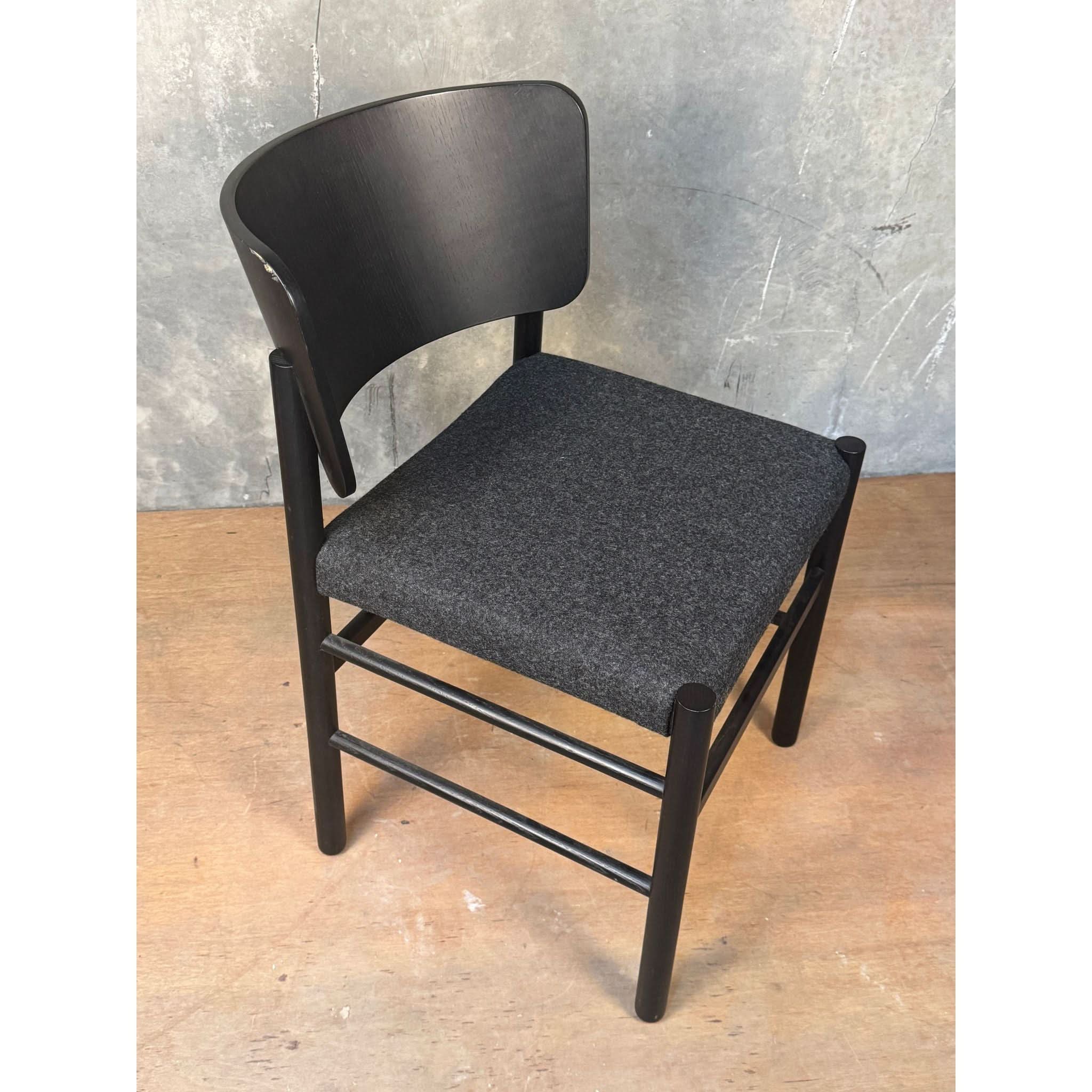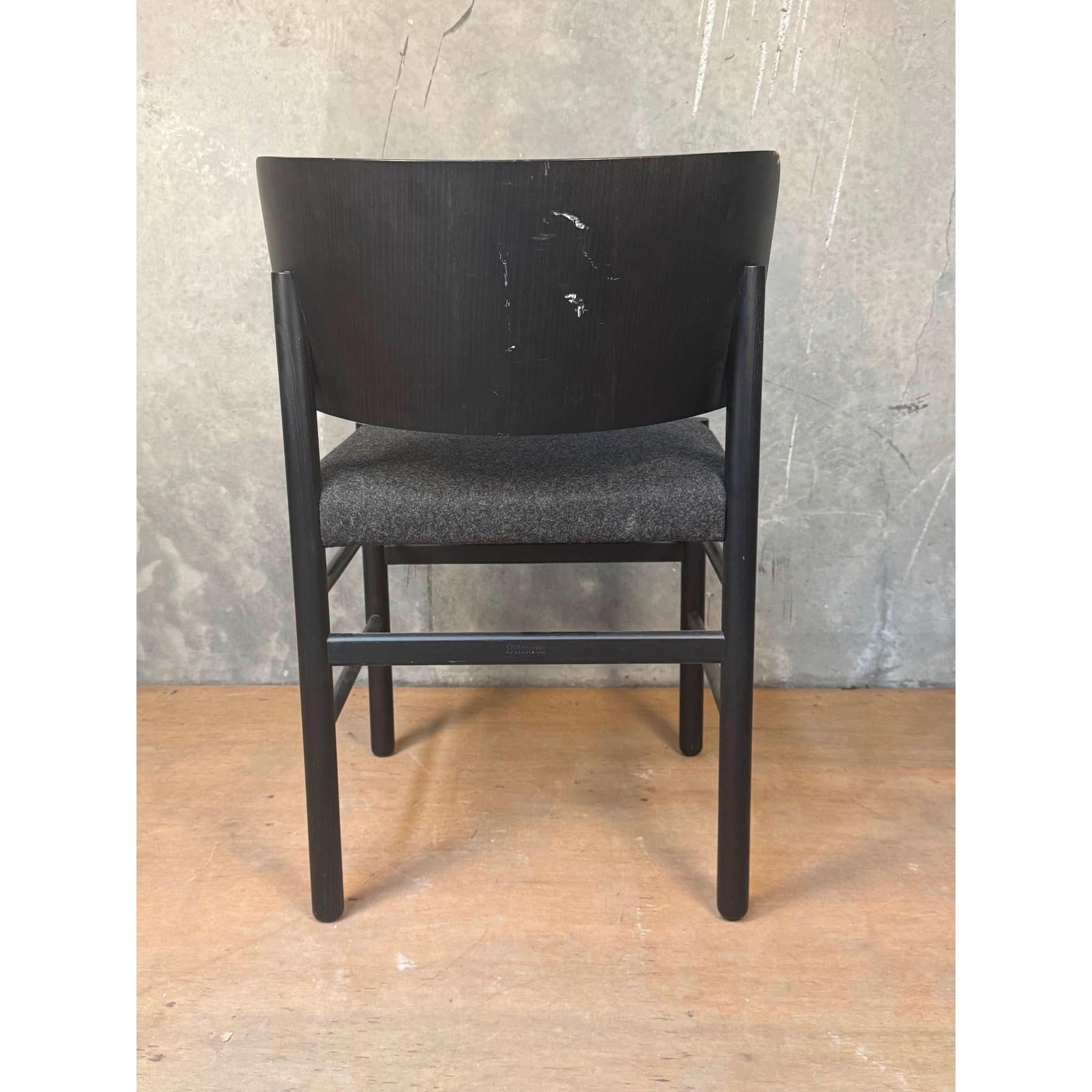 The Fratina chair from the esteemed Billiani collection blends classic design with a modern twist. Designed in Italy, it features sleek round legs and a distinctive semi-circular backrest, embodying refined elegance and contemporary style. Constructed from black stained wood, the chair presents a clean, sophisticated look adaptable to many settings. Its dark grey upholstered felt seat cushion enhances both comfort and visual appeal, making it ideal for dining rooms, offices, or as an accent chair. This preloved piece, donated to ReLove, shows minor signs of wear but remains in good condition.