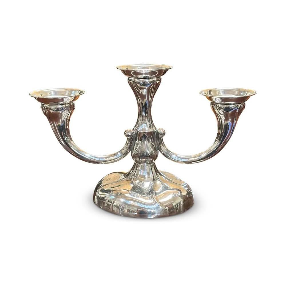 A lovely continental silver (800) candelabra with 3 branches crafted in Europe circa 1930.