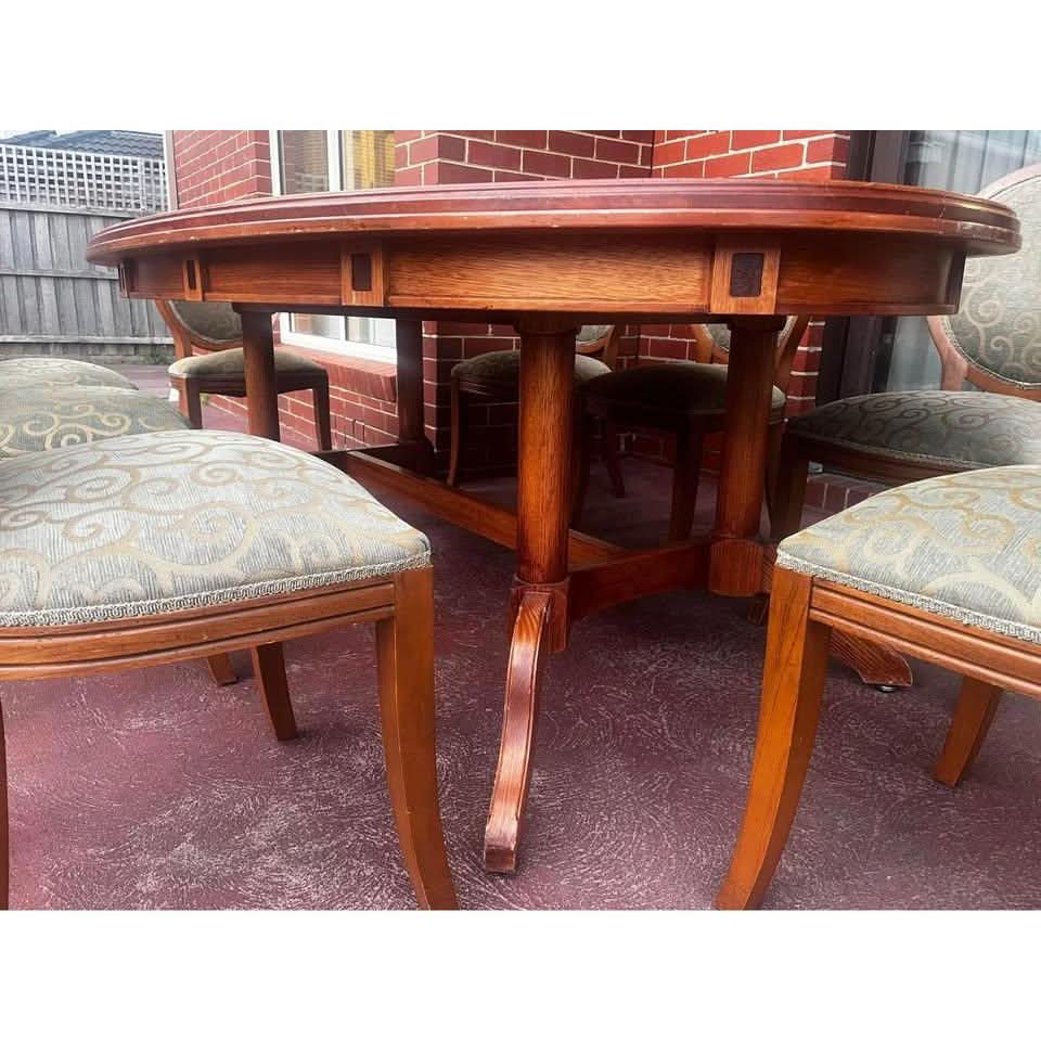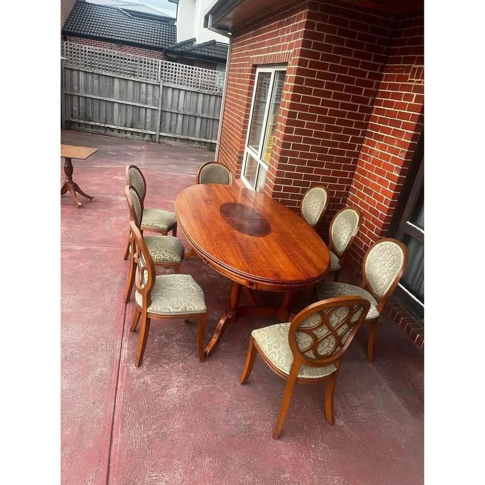 Upgrade your dining experience with this stunning wooden dining table paired with eight beautifully crafted chairs. Perfect for family gatherings or dinner parties, this set combines elegance with functionality.