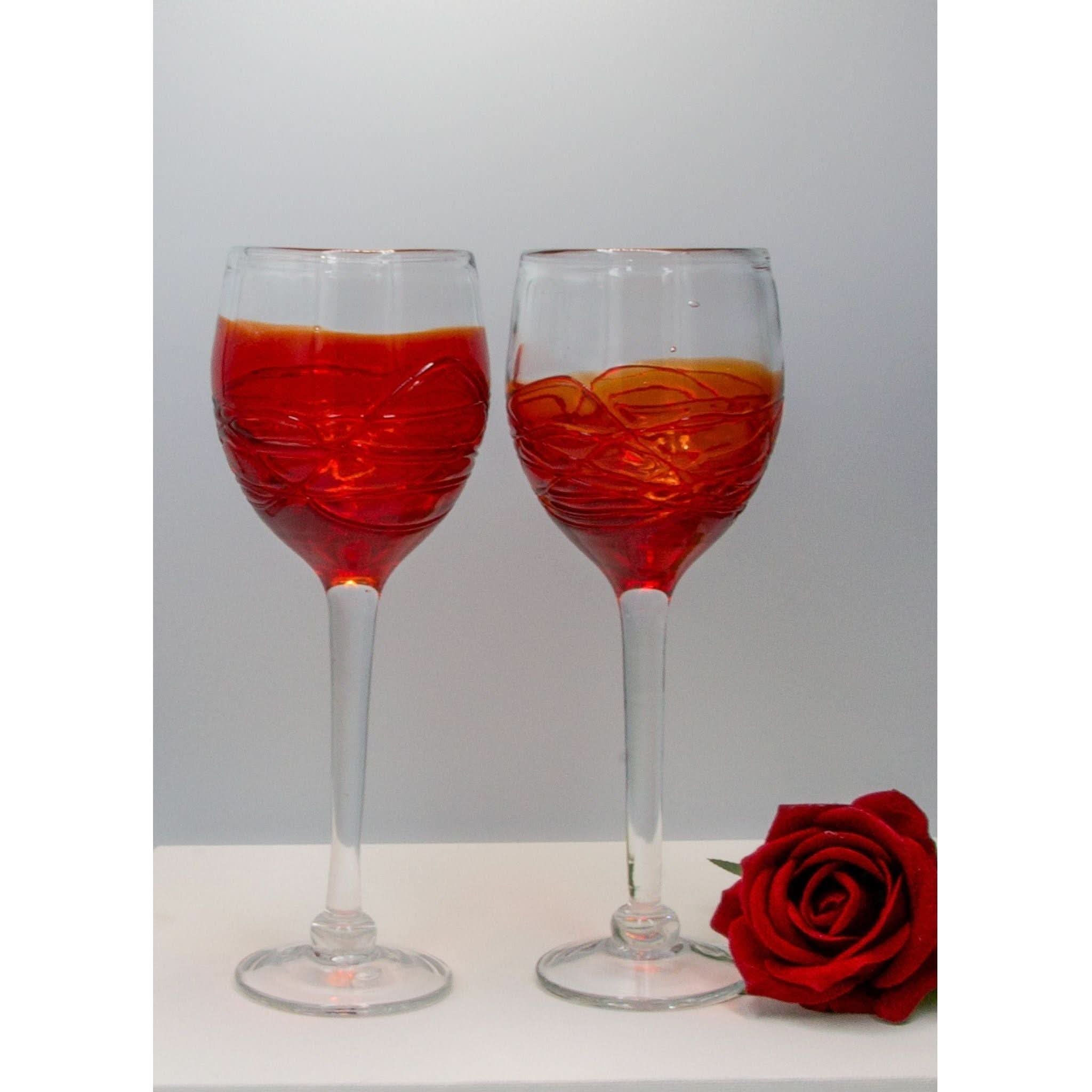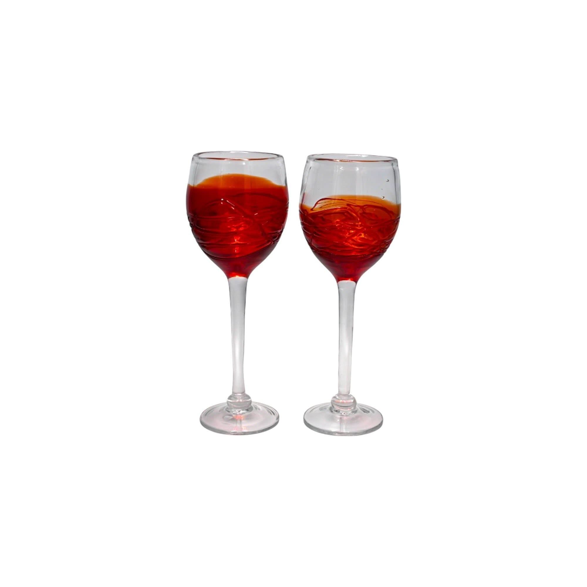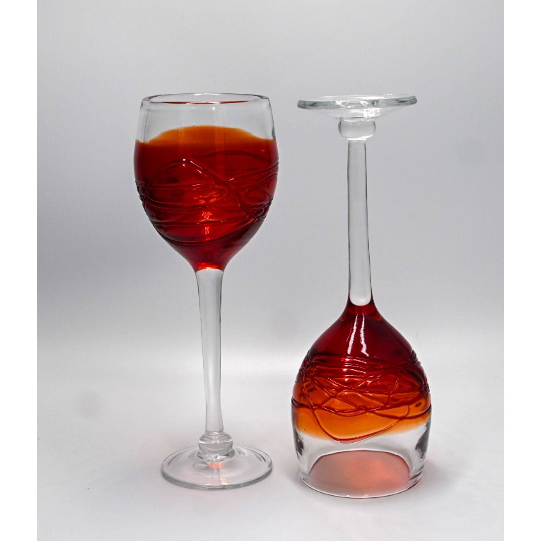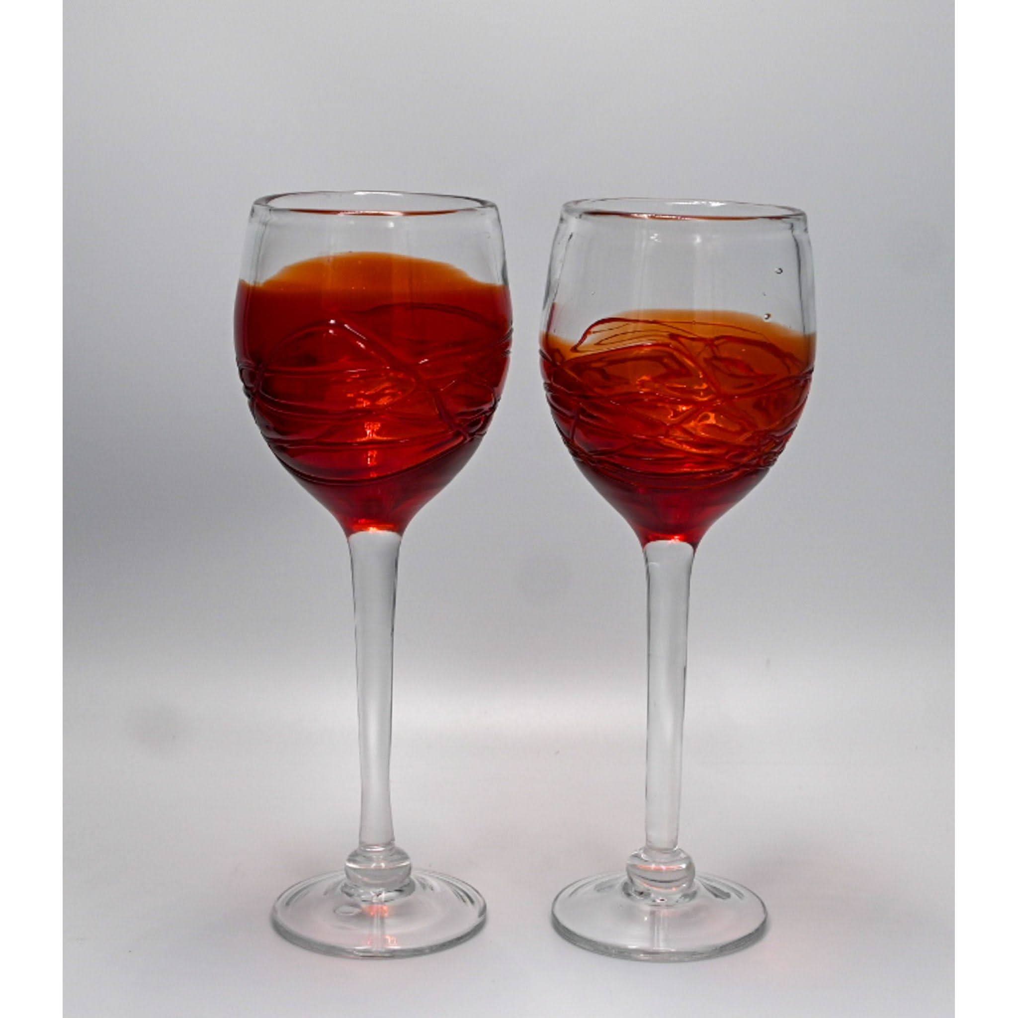 These glasses are in excellent condition. The bowl of both glasses have a few small bubbles in the glass from the glassblowing process.The amount of colour on the glasses does vary but this only adds to the uniqueness of each glass
