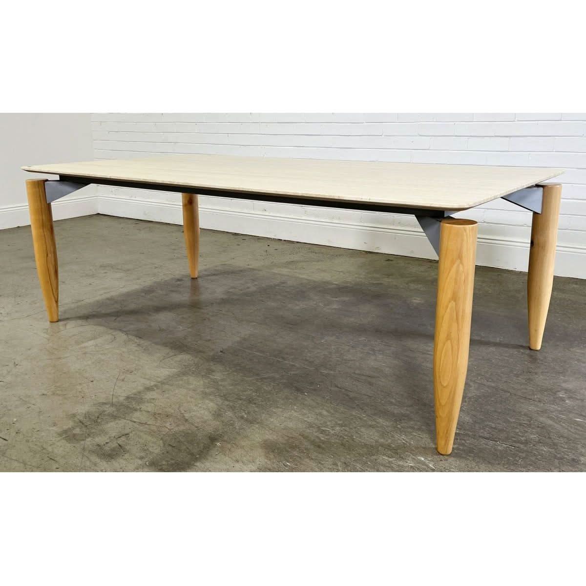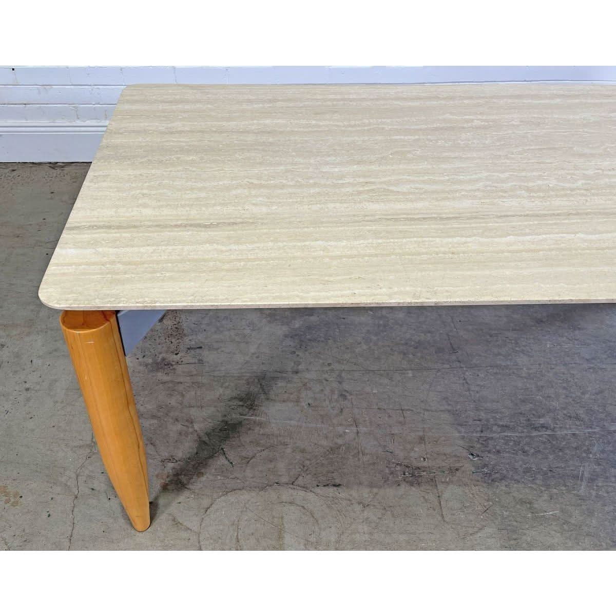 Welcome your guests in style with this elegant Italian Travertine dining table.