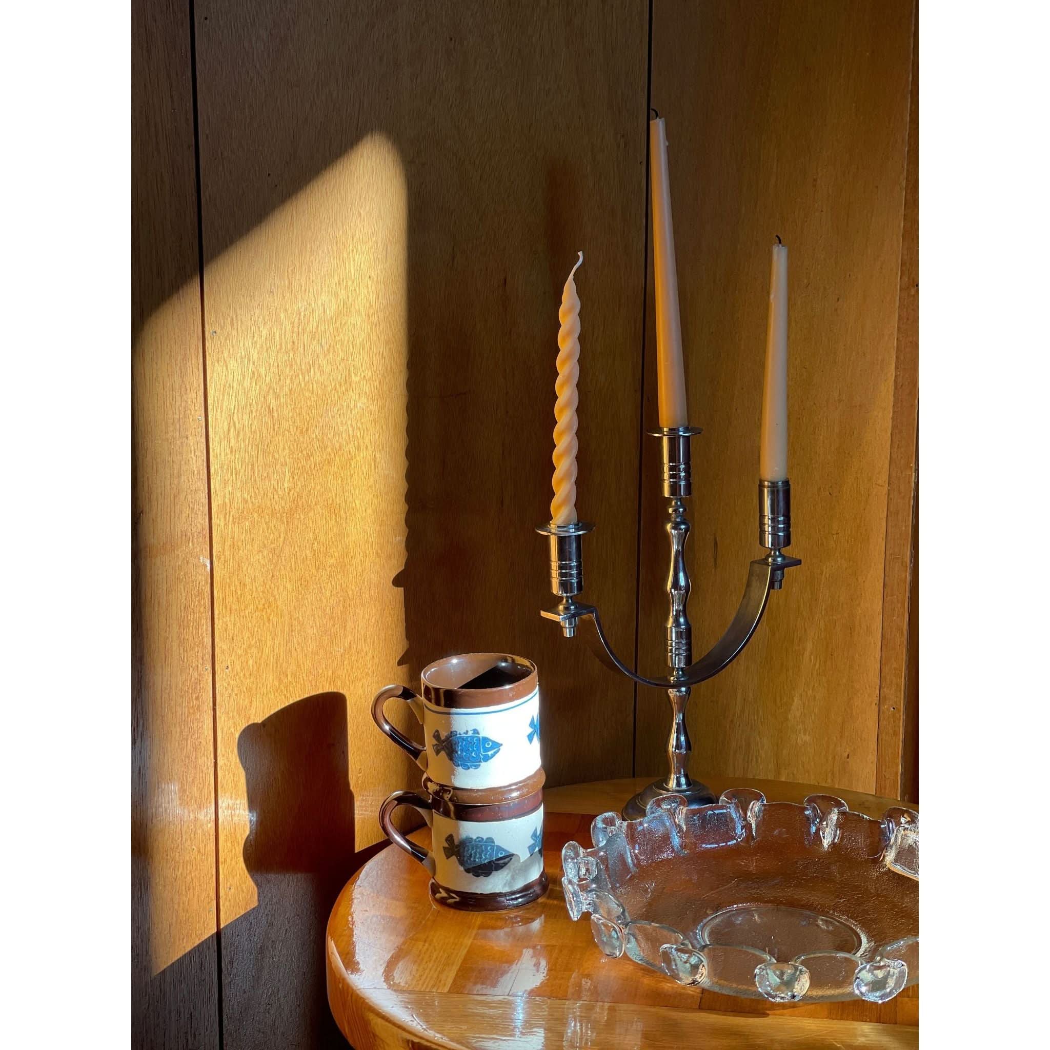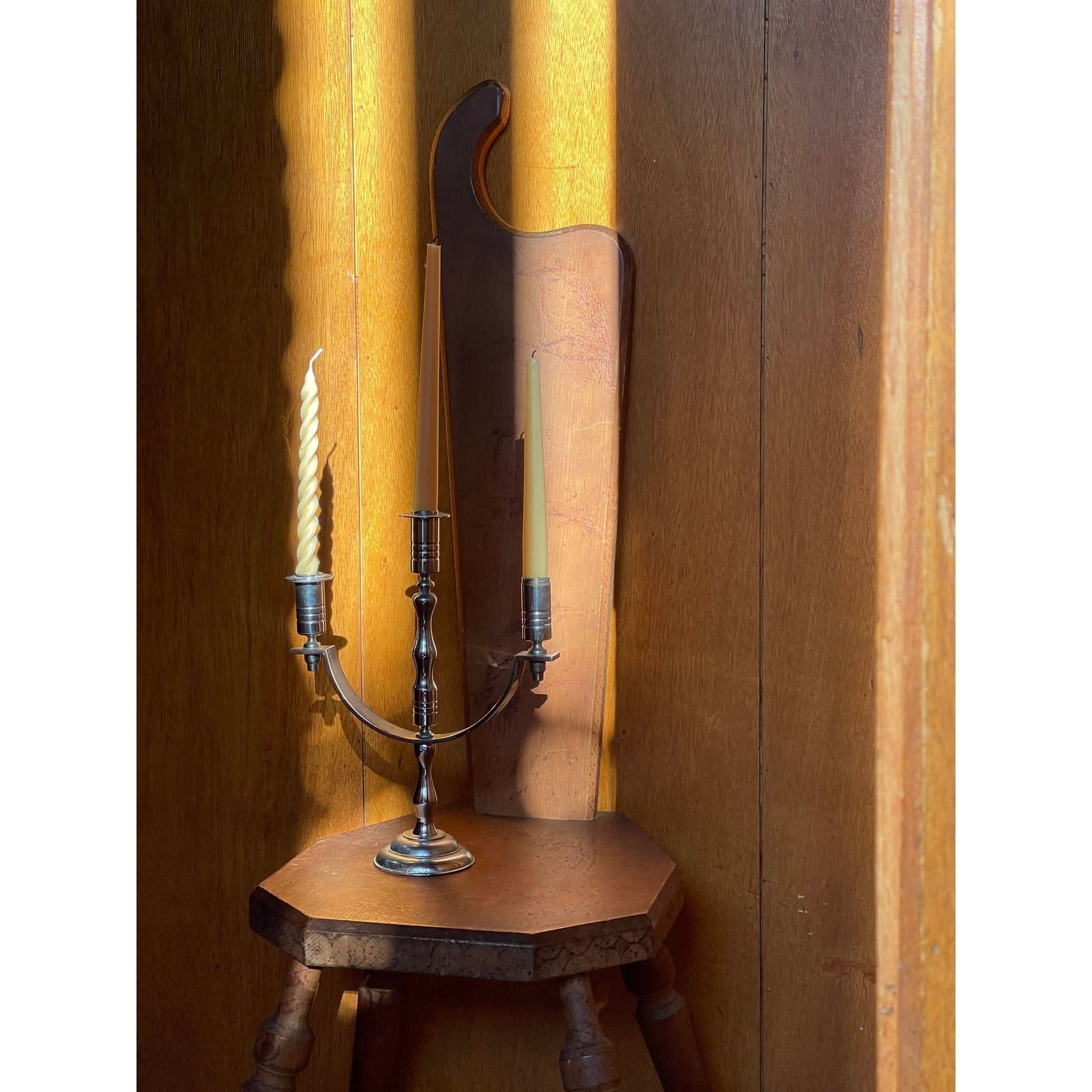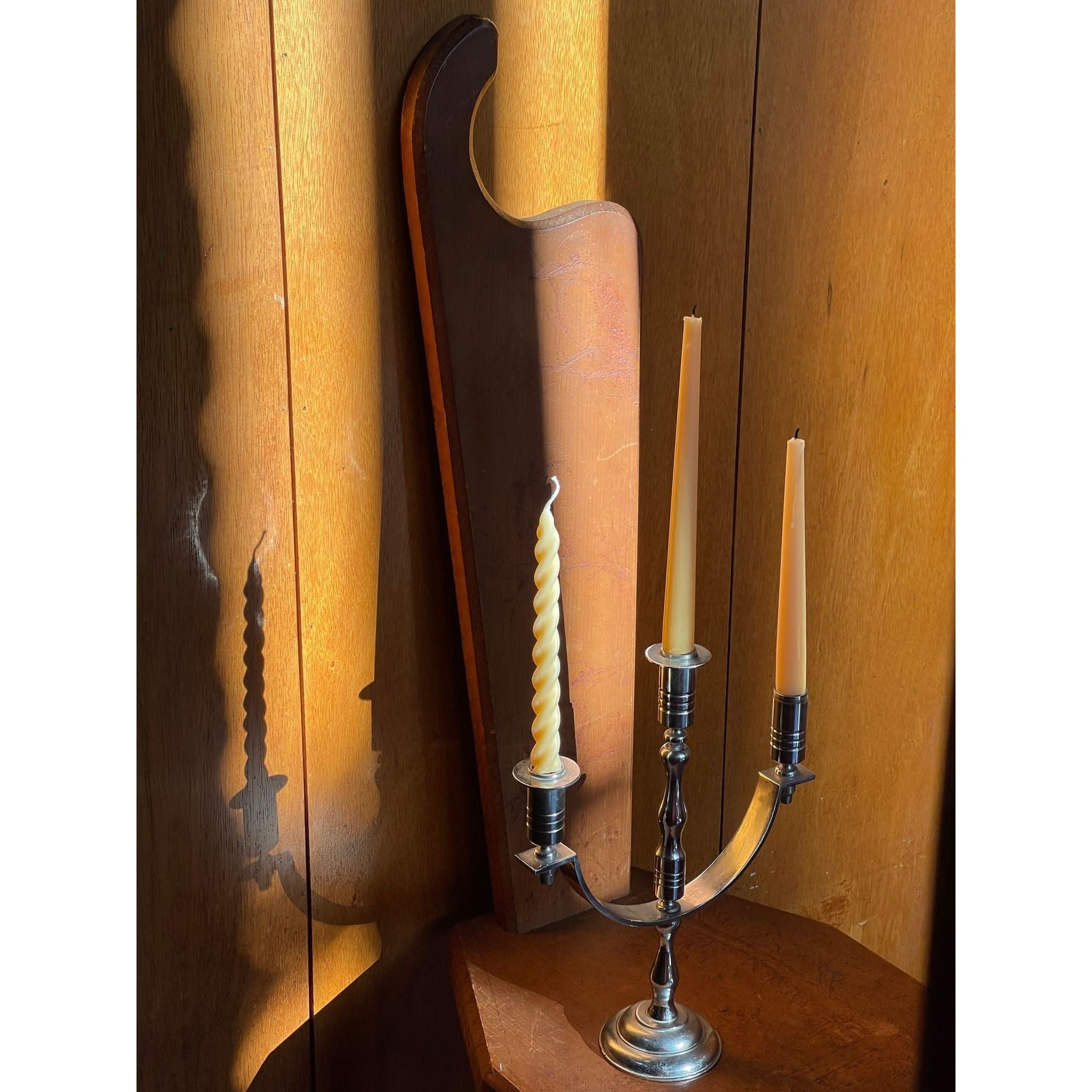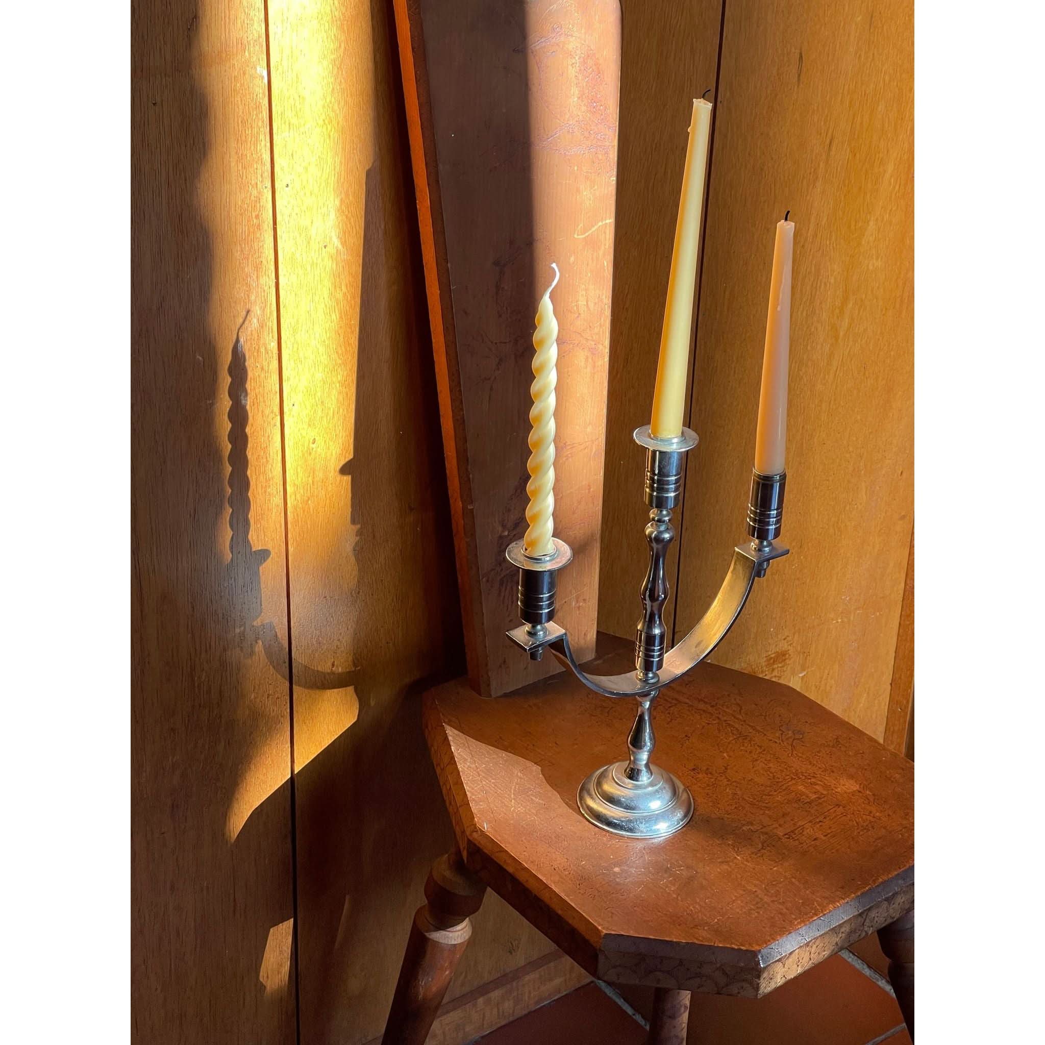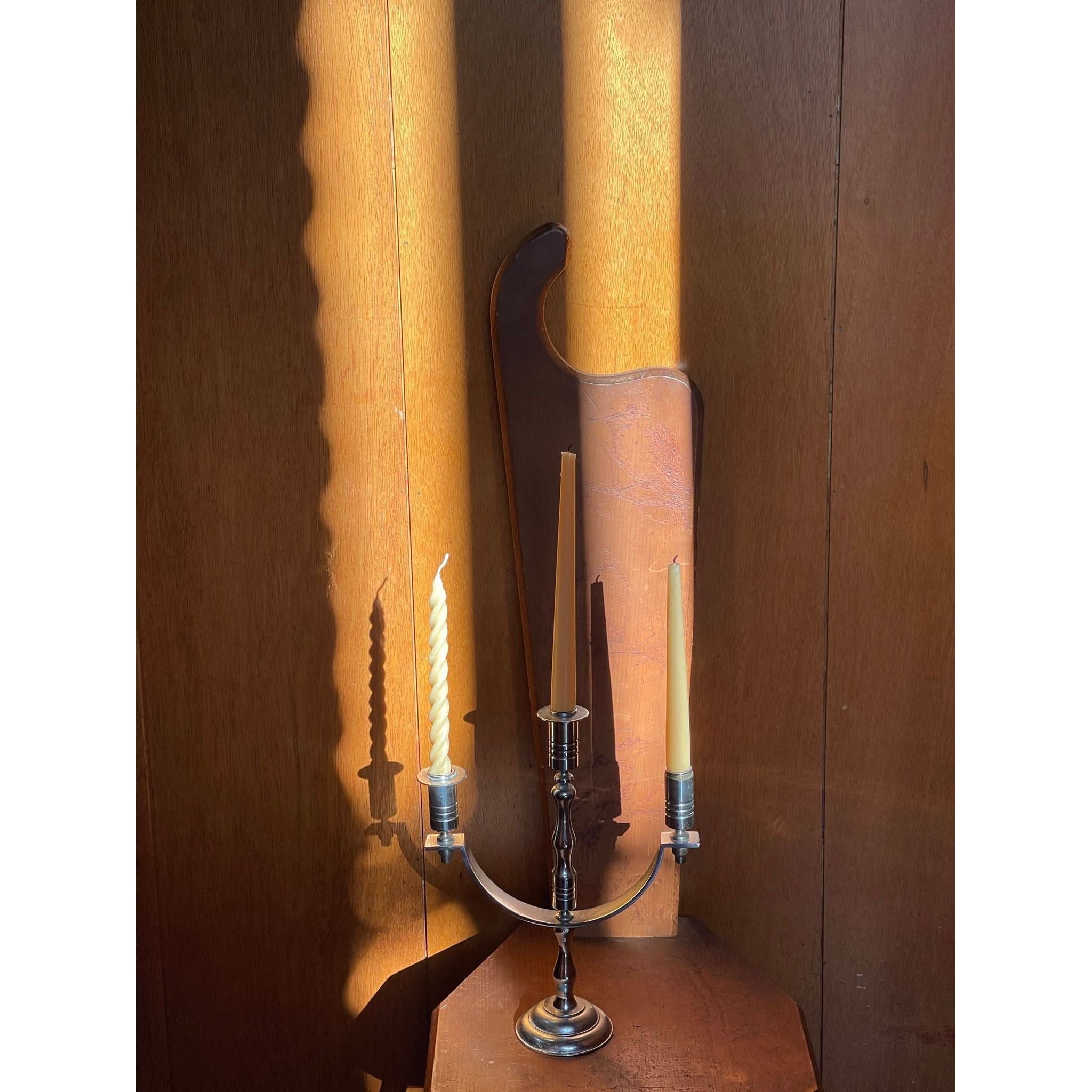 beautiful three arm metal candelabra for your next dinner party table or everyday romance