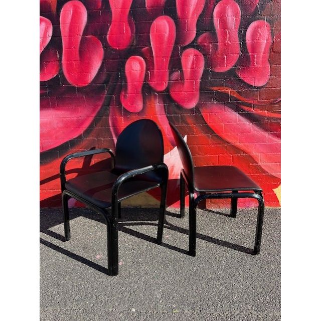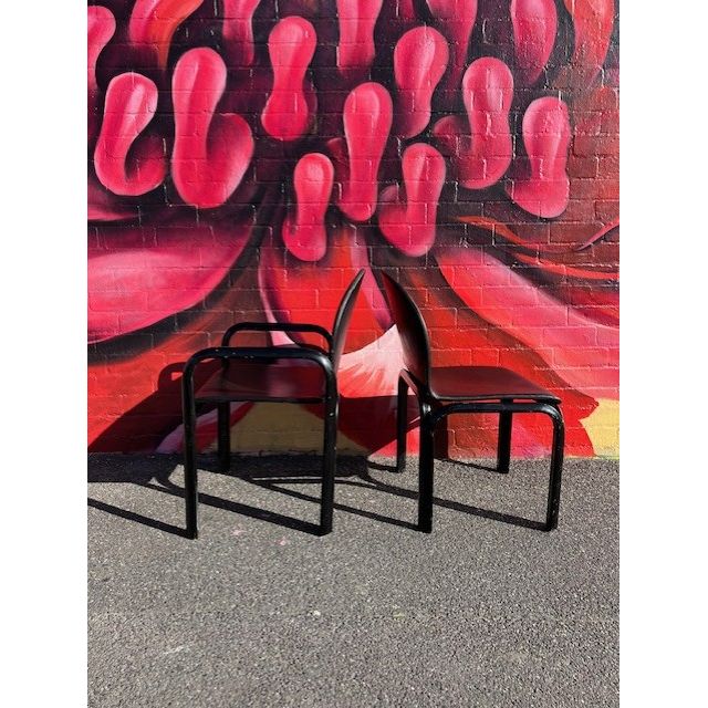 A striking set of original vintage dining chairs designed by renowned Italian architect and designer Gae Aulenti. This set includes: