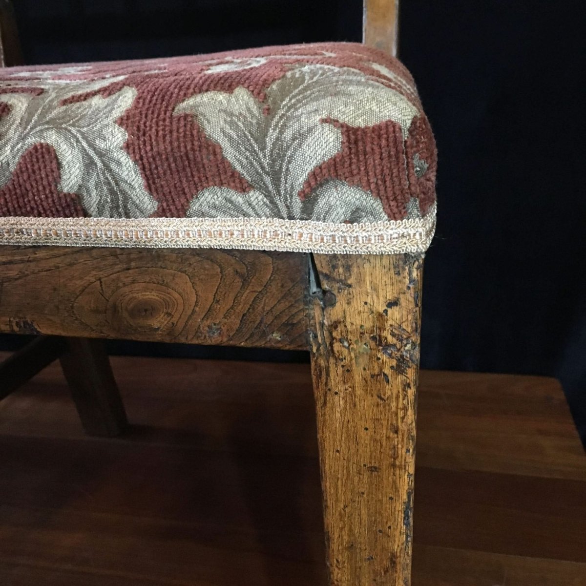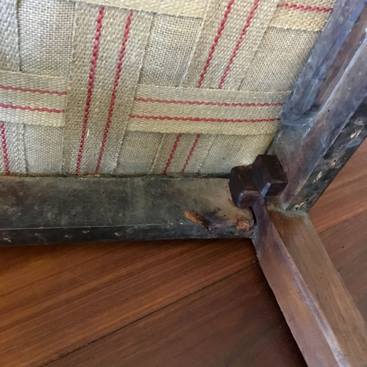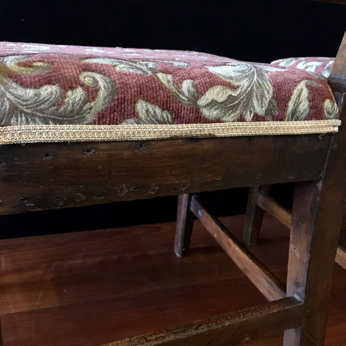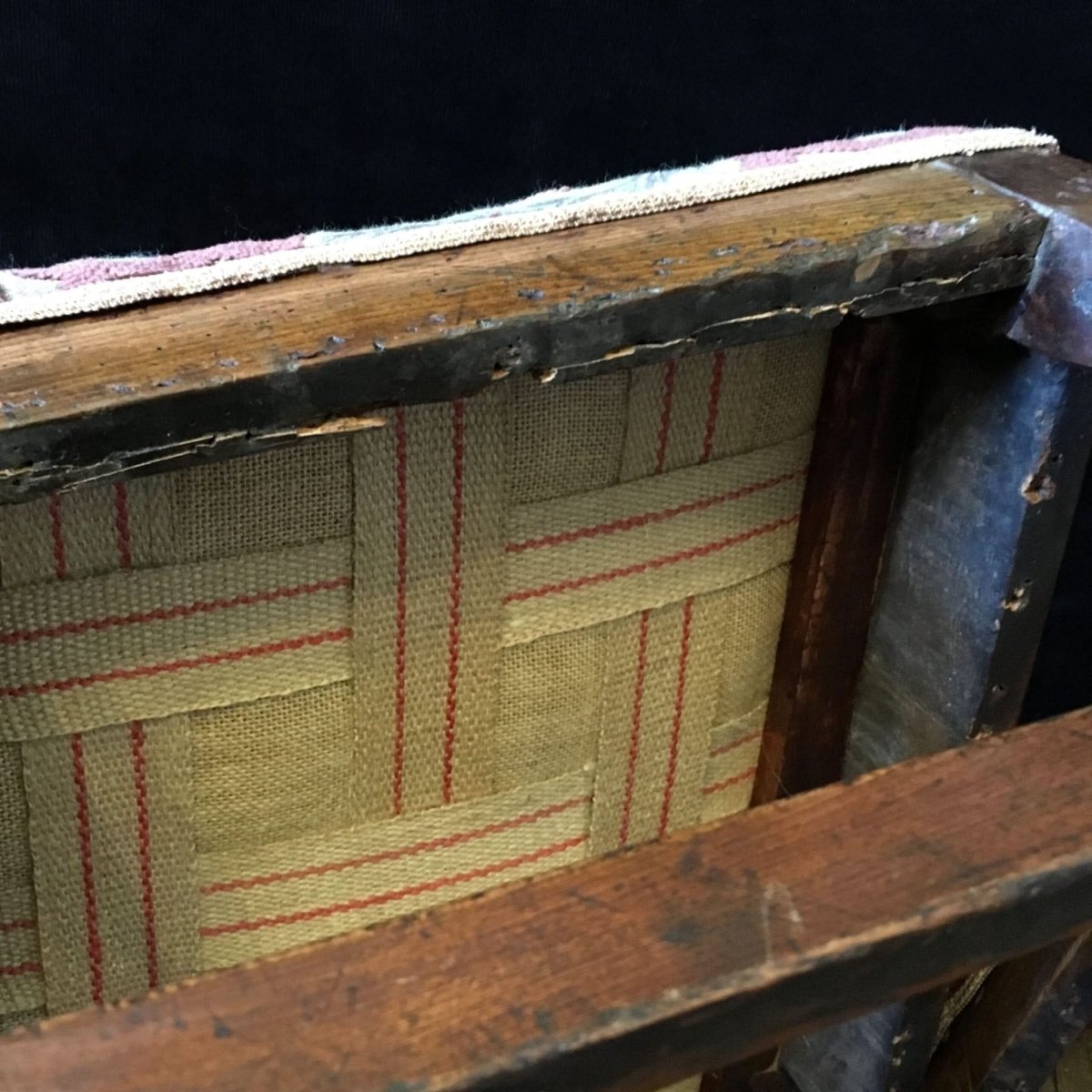 Conditionold restorations and tack holes from previous upholstery