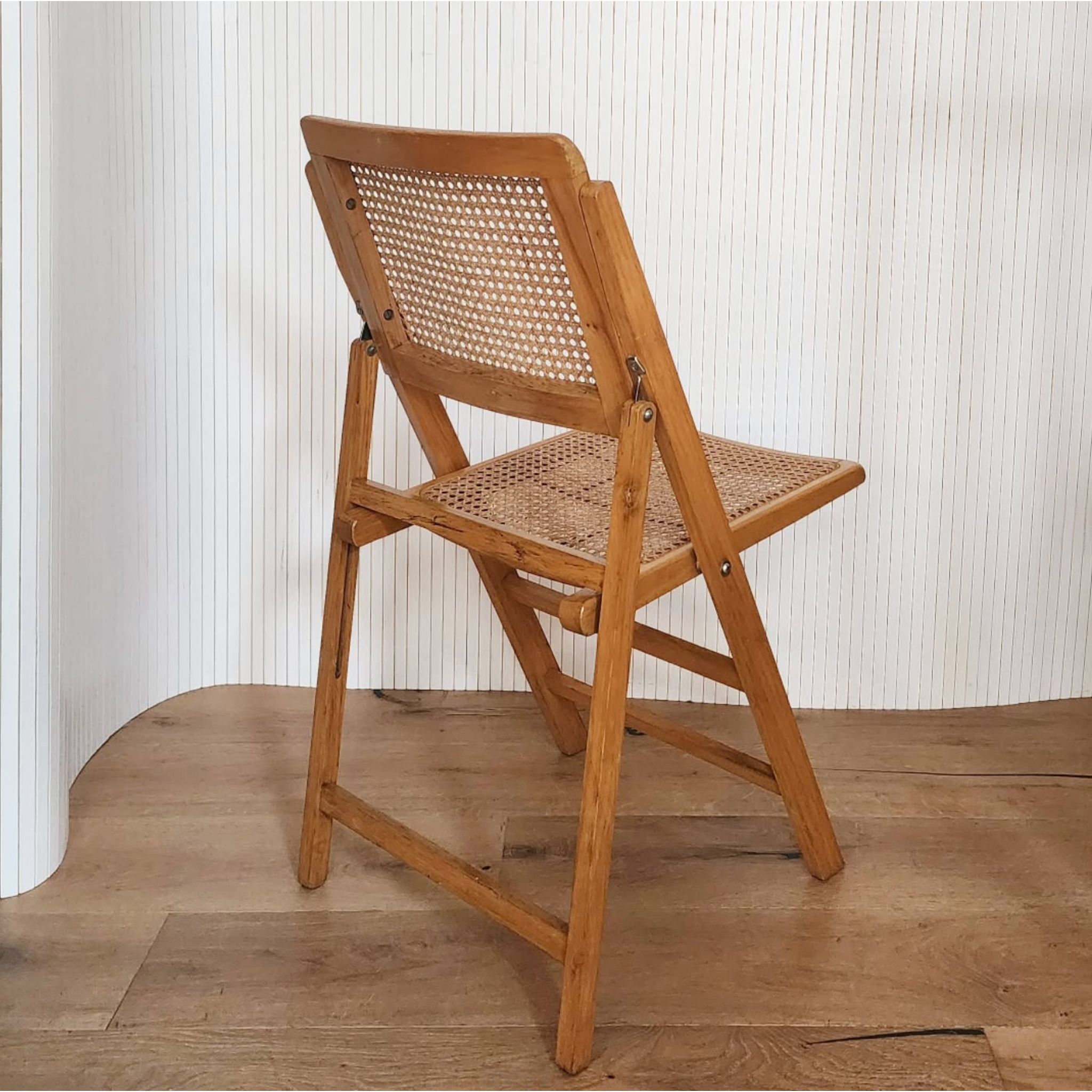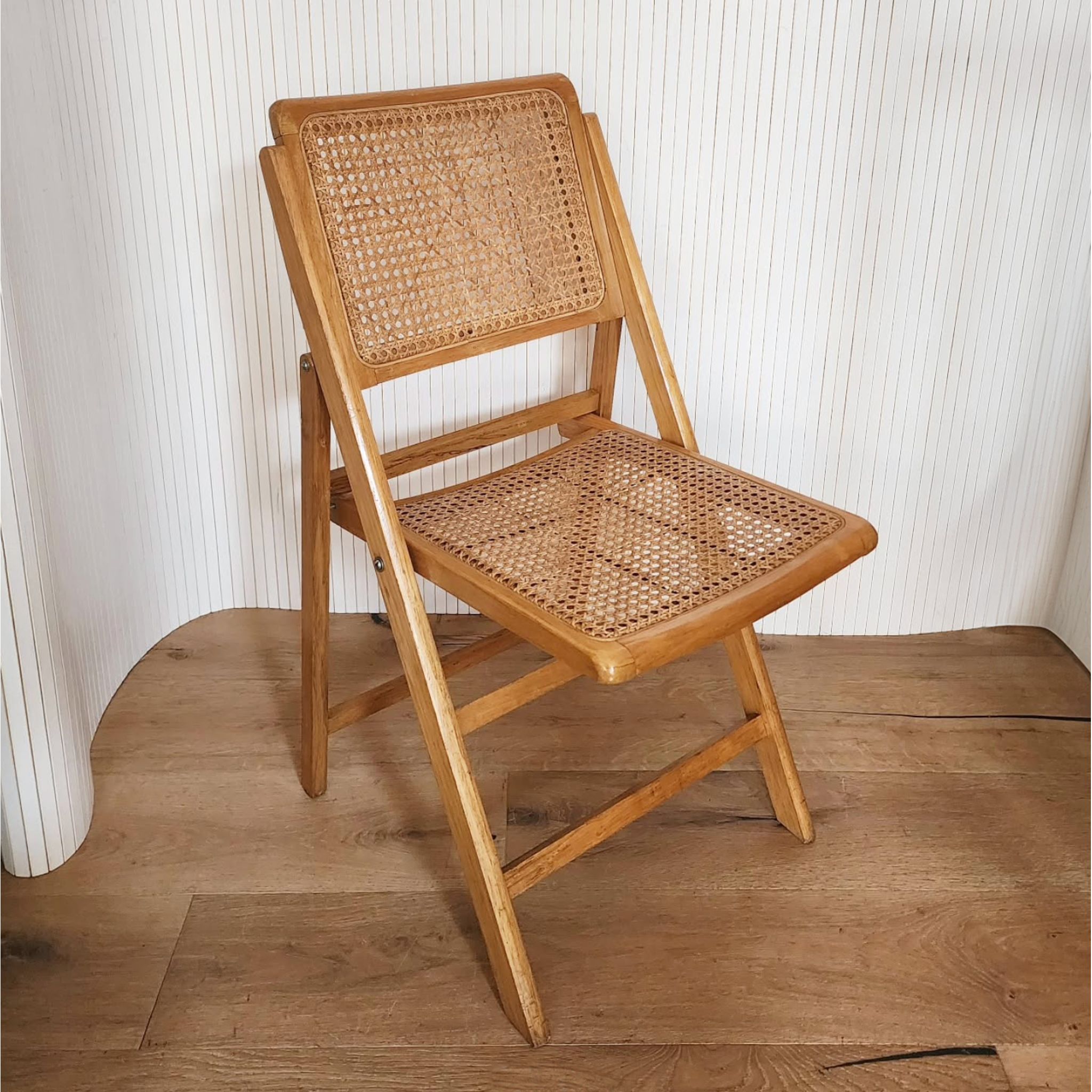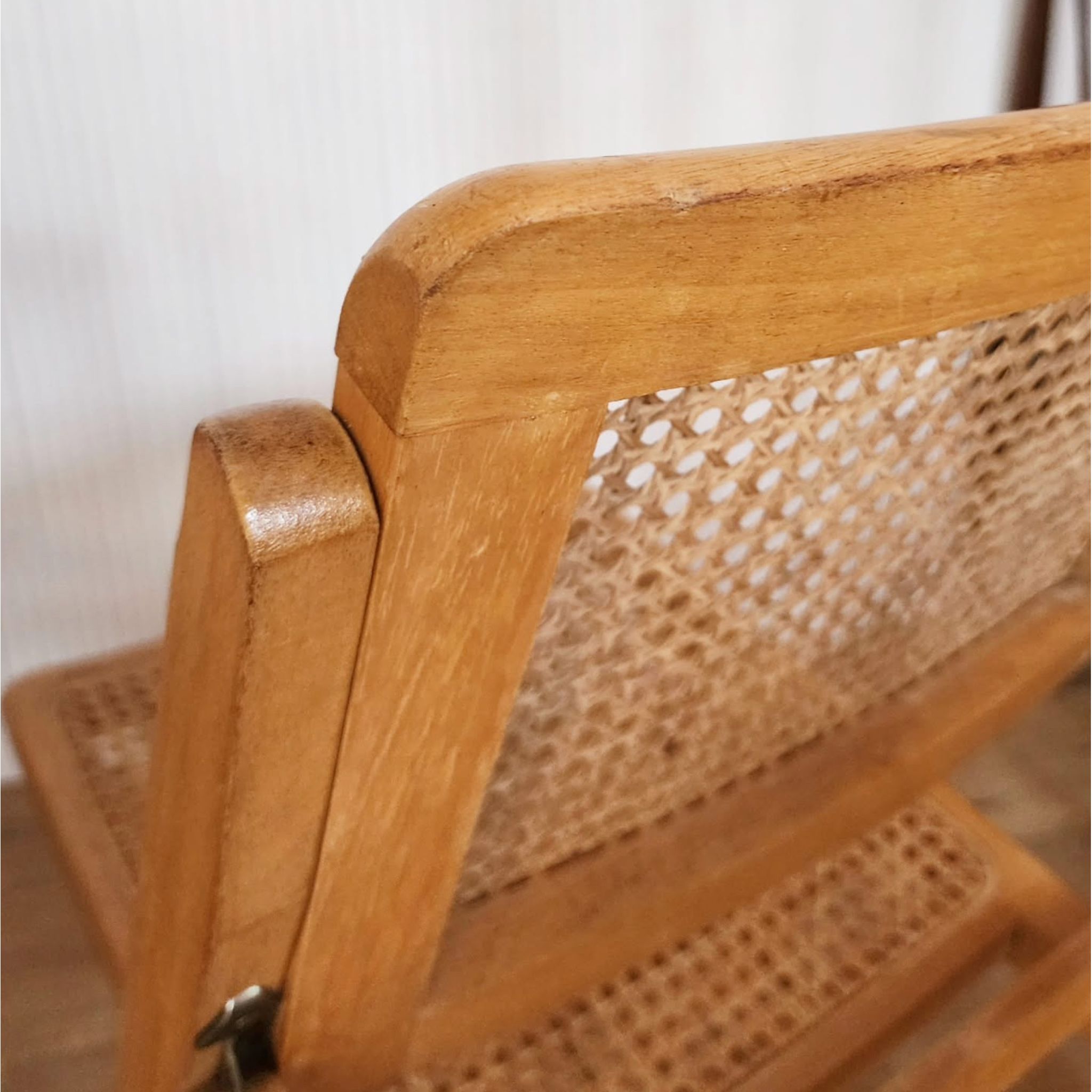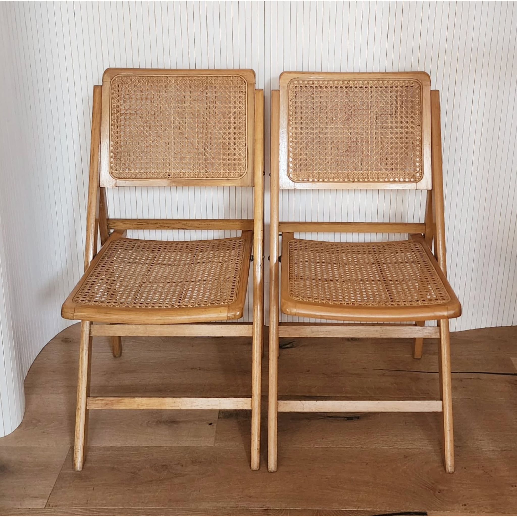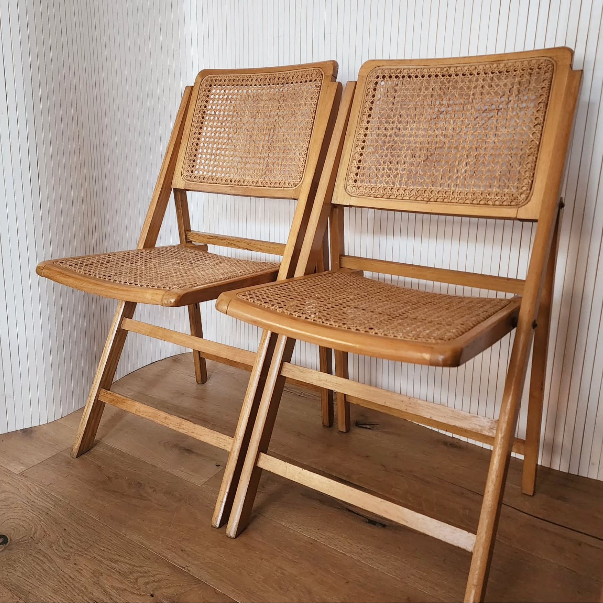 Vintage cane folding dining chairs, circa 1970s. Can be folded away and stored, or used as spares for extra guests.