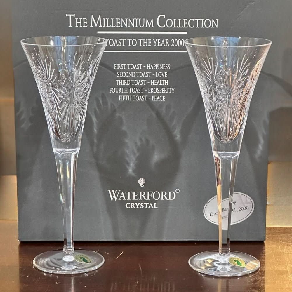 This is a lovely pair of Waterford Crystal Champagne toasting flutes. They were crafted as part of the “Millenium Collection” as a toast to the year 2000!
