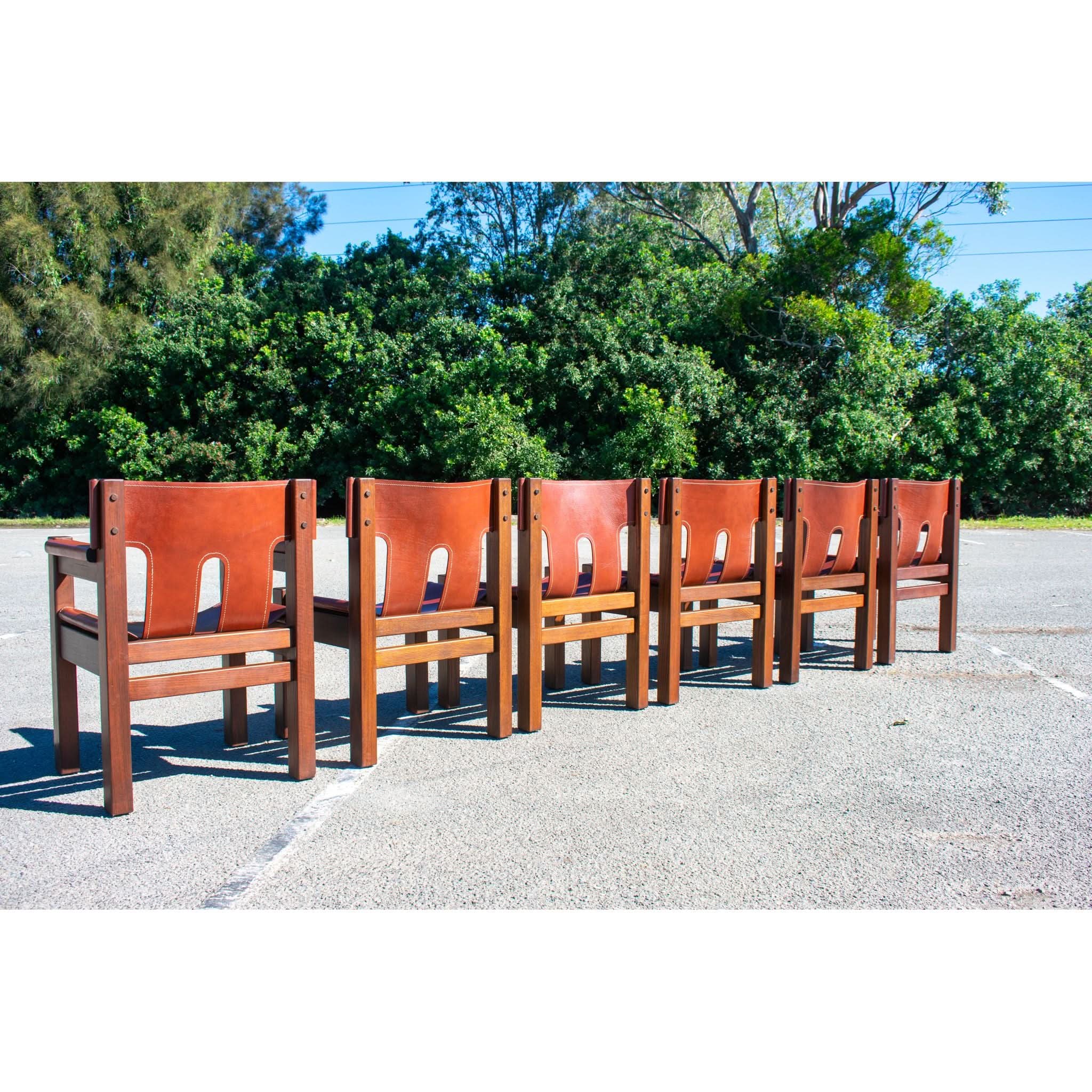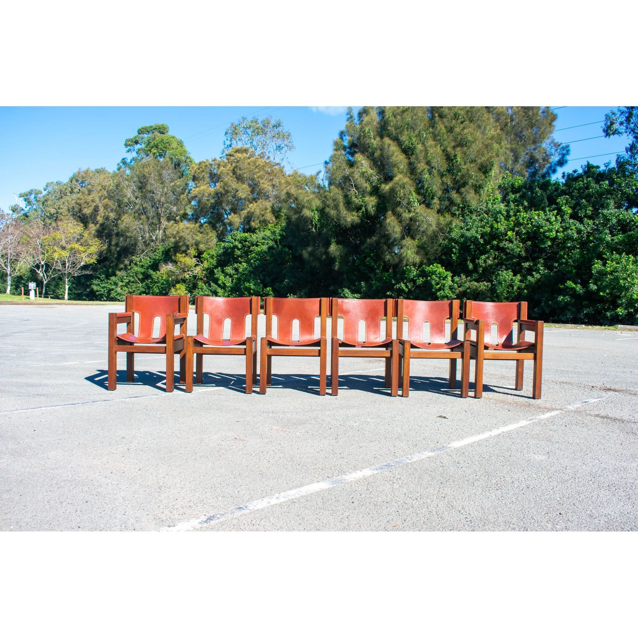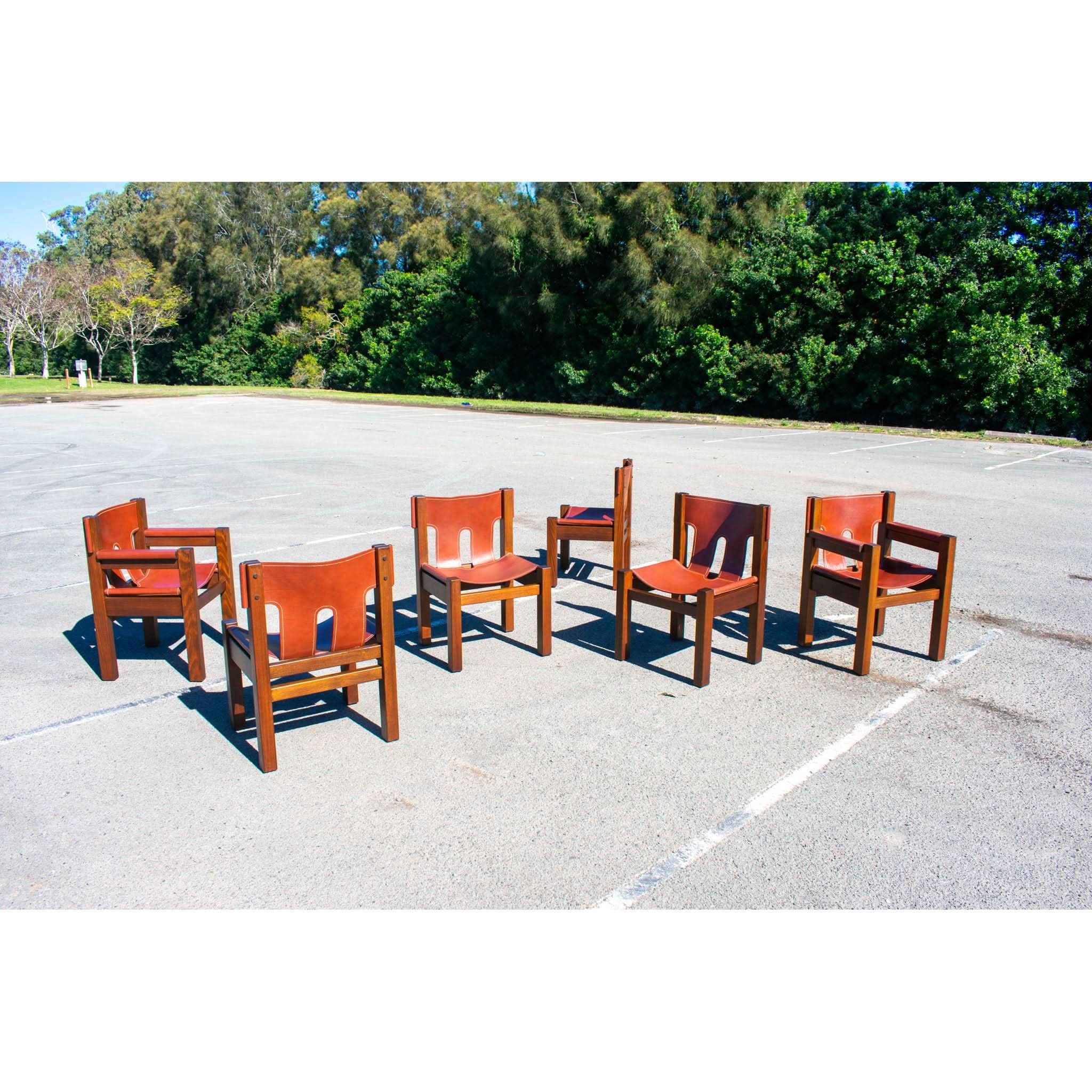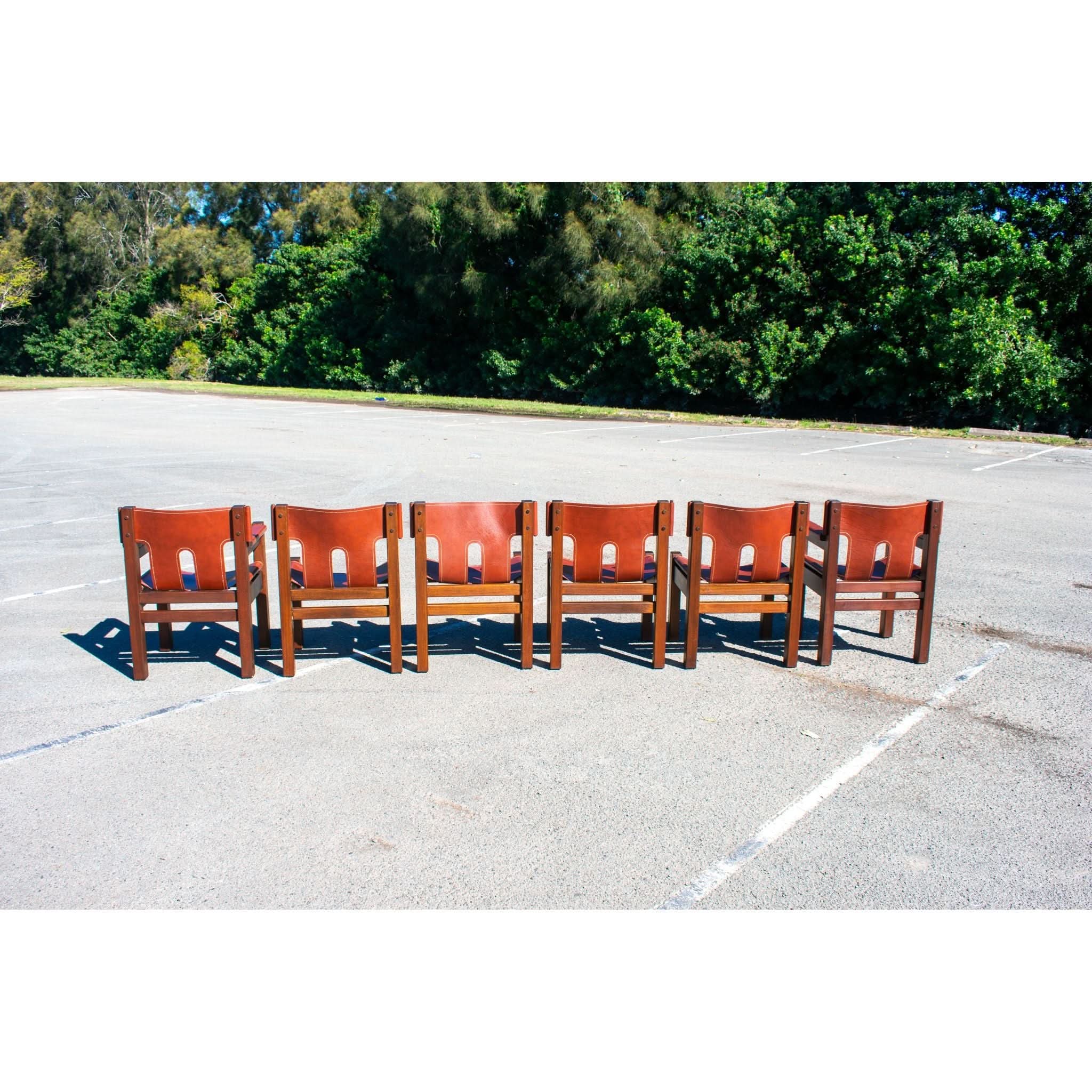 A rare find from the golden era of Australian modernism, this Matilda dining suite is a collector’s piece seldom seen intact. Comprising four dining chairs and two carvers, all upholstered in rich conker-toned Howe saddle leather, the suite retains its original character and materials—an increasingly elusive combination.