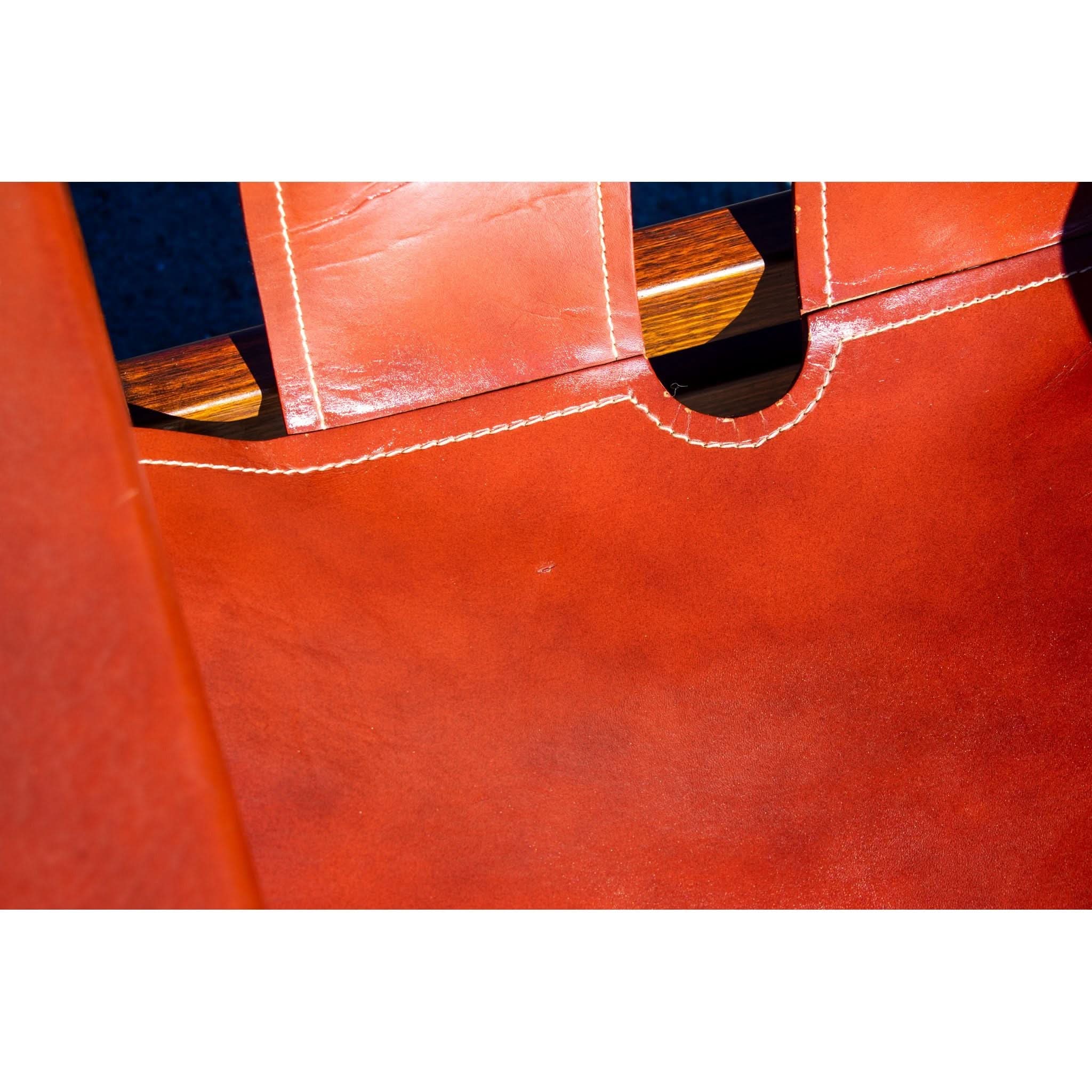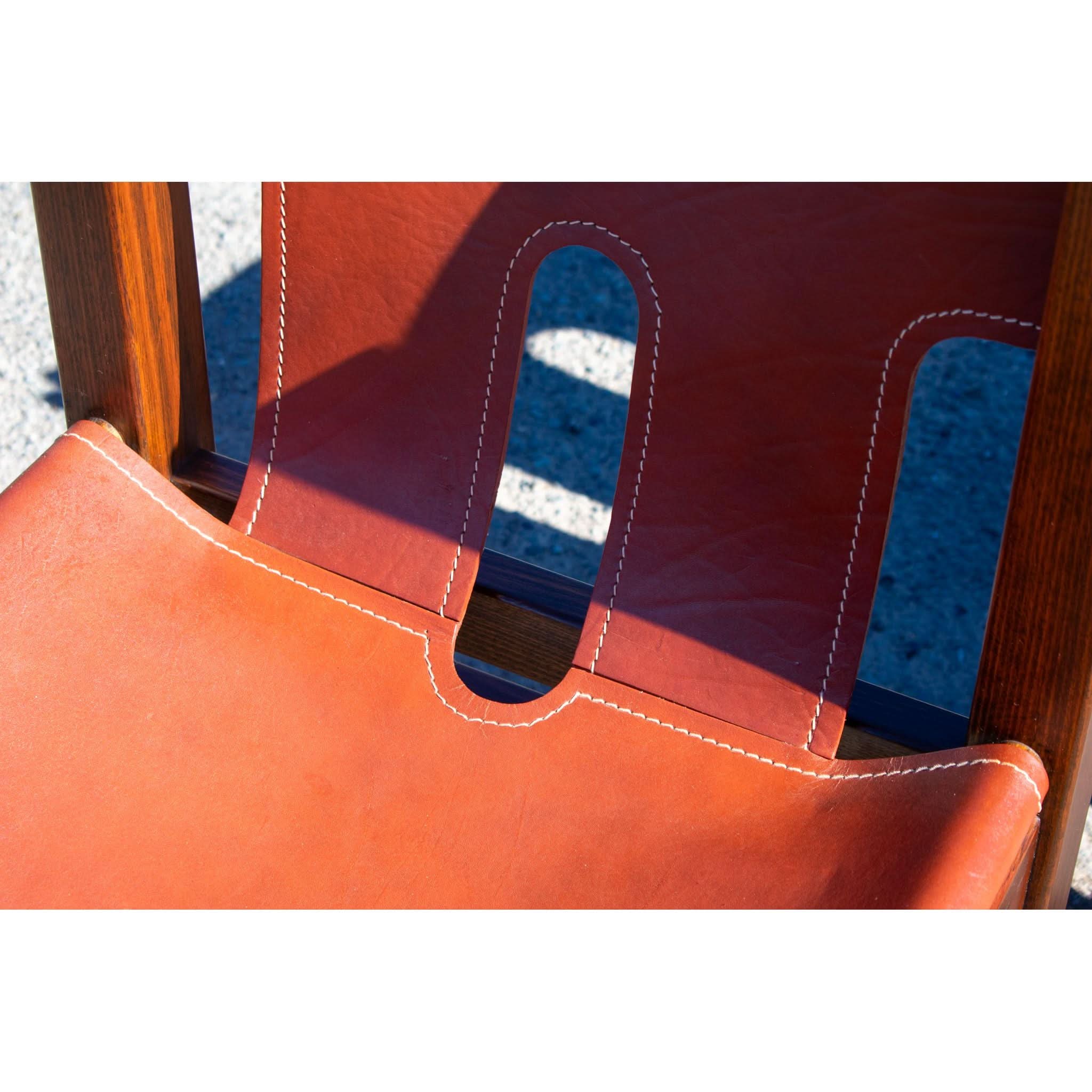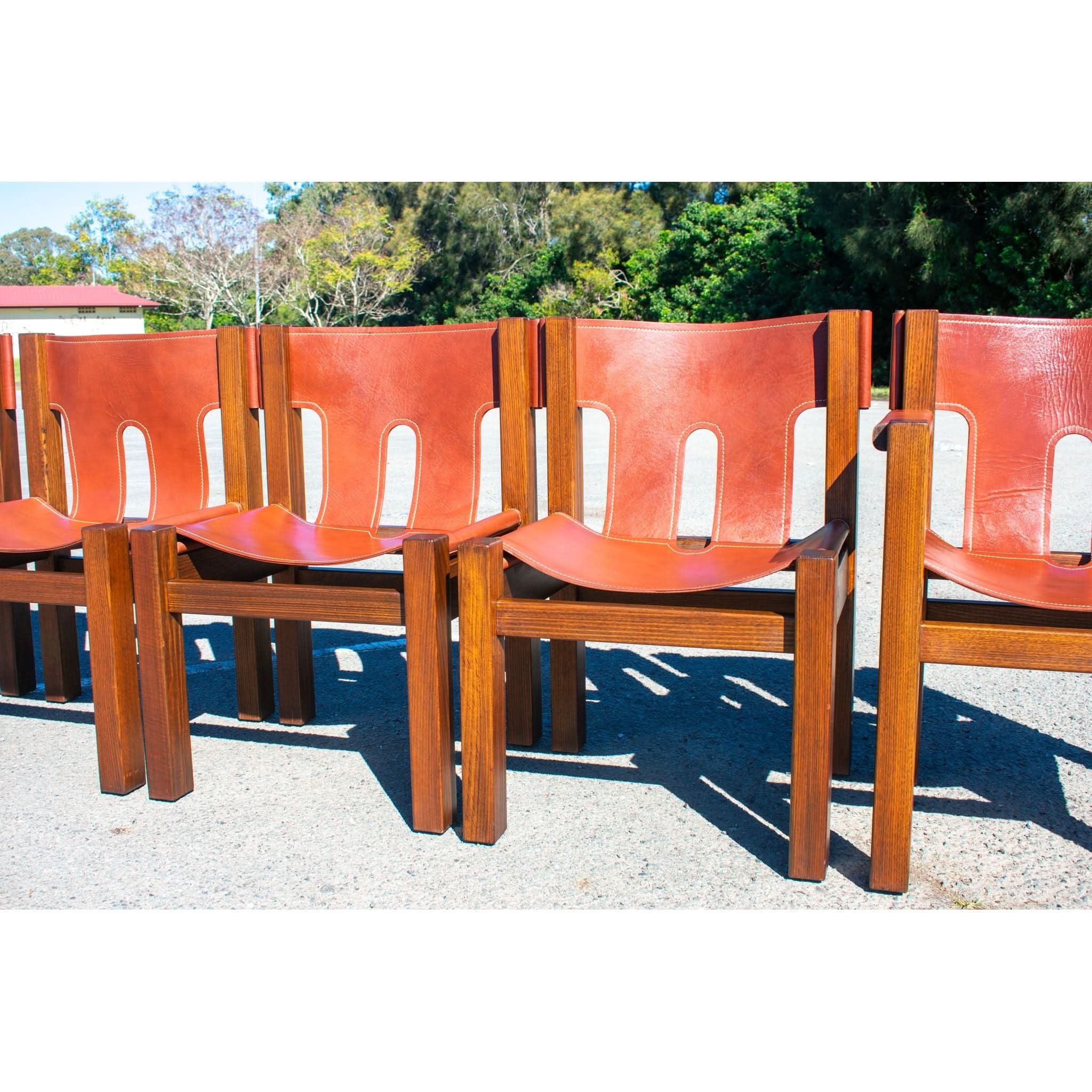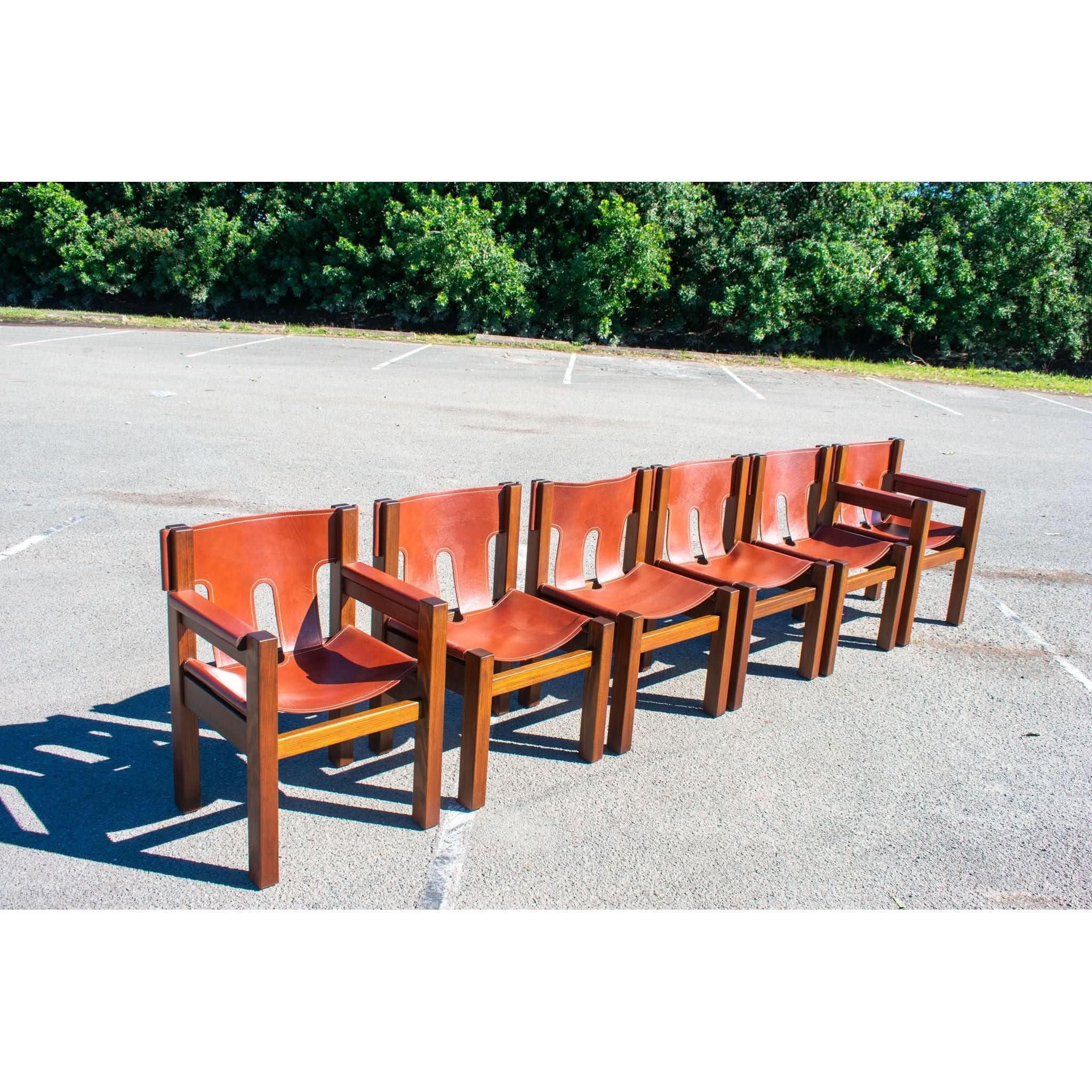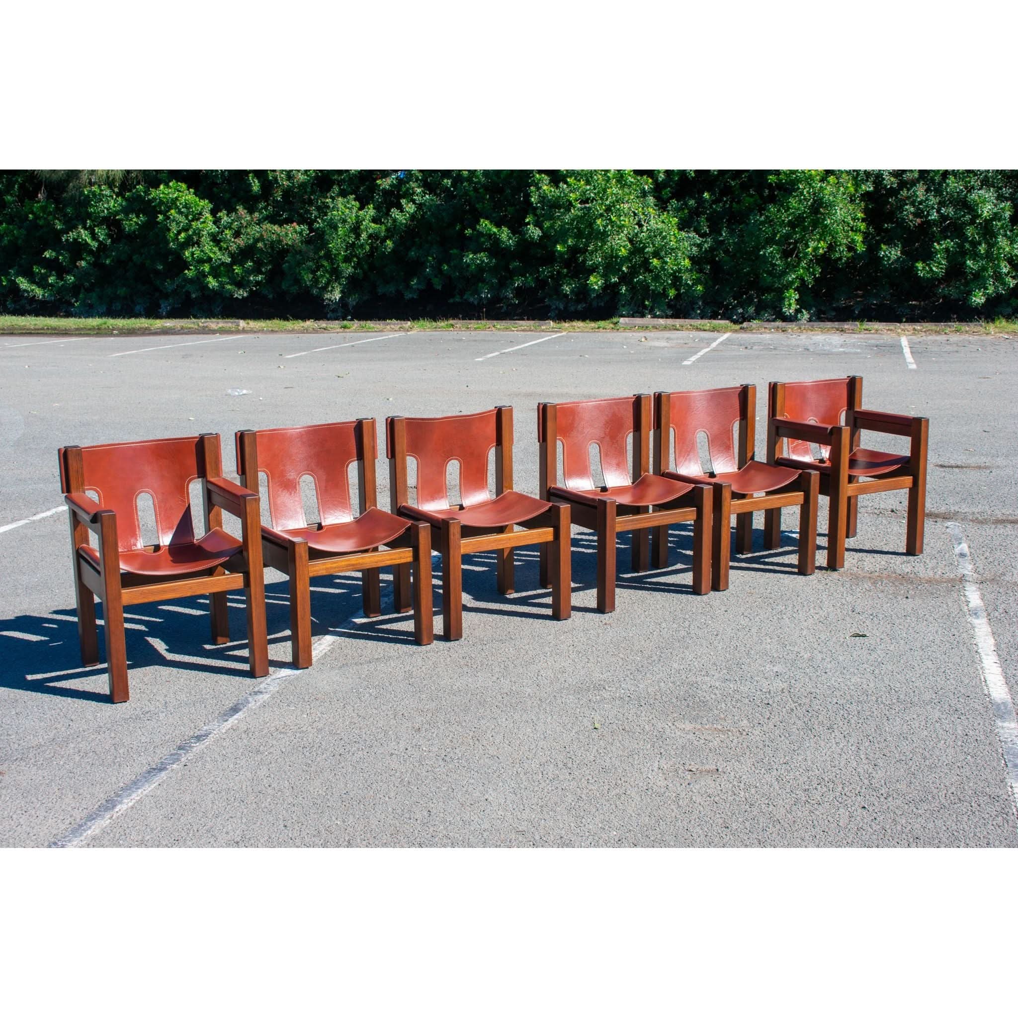 A rare find from the golden era of Australian modernism, this Matilda dining suite is a collector’s piece seldom seen intact. Comprising four dining chairs and two carvers, all upholstered in rich conker-toned Howe saddle leather, the suite retains its original character and materials—an increasingly elusive combination.