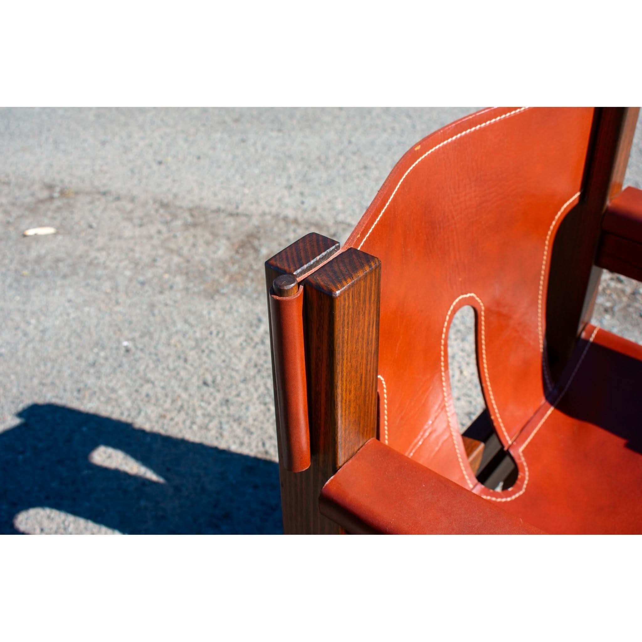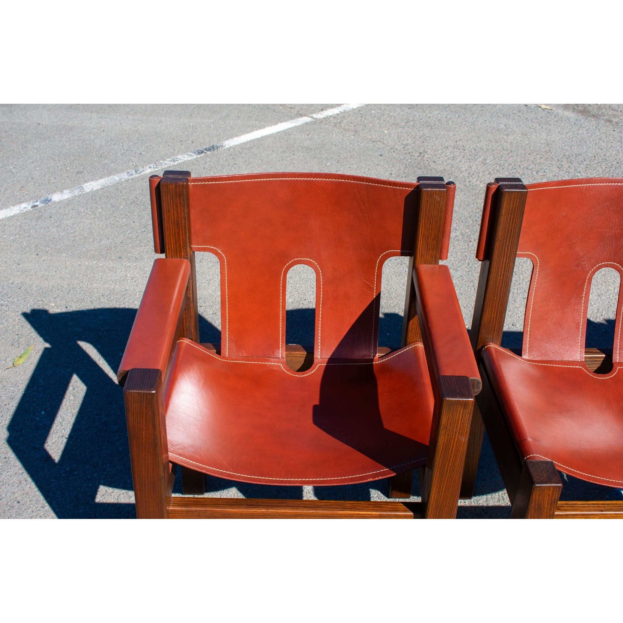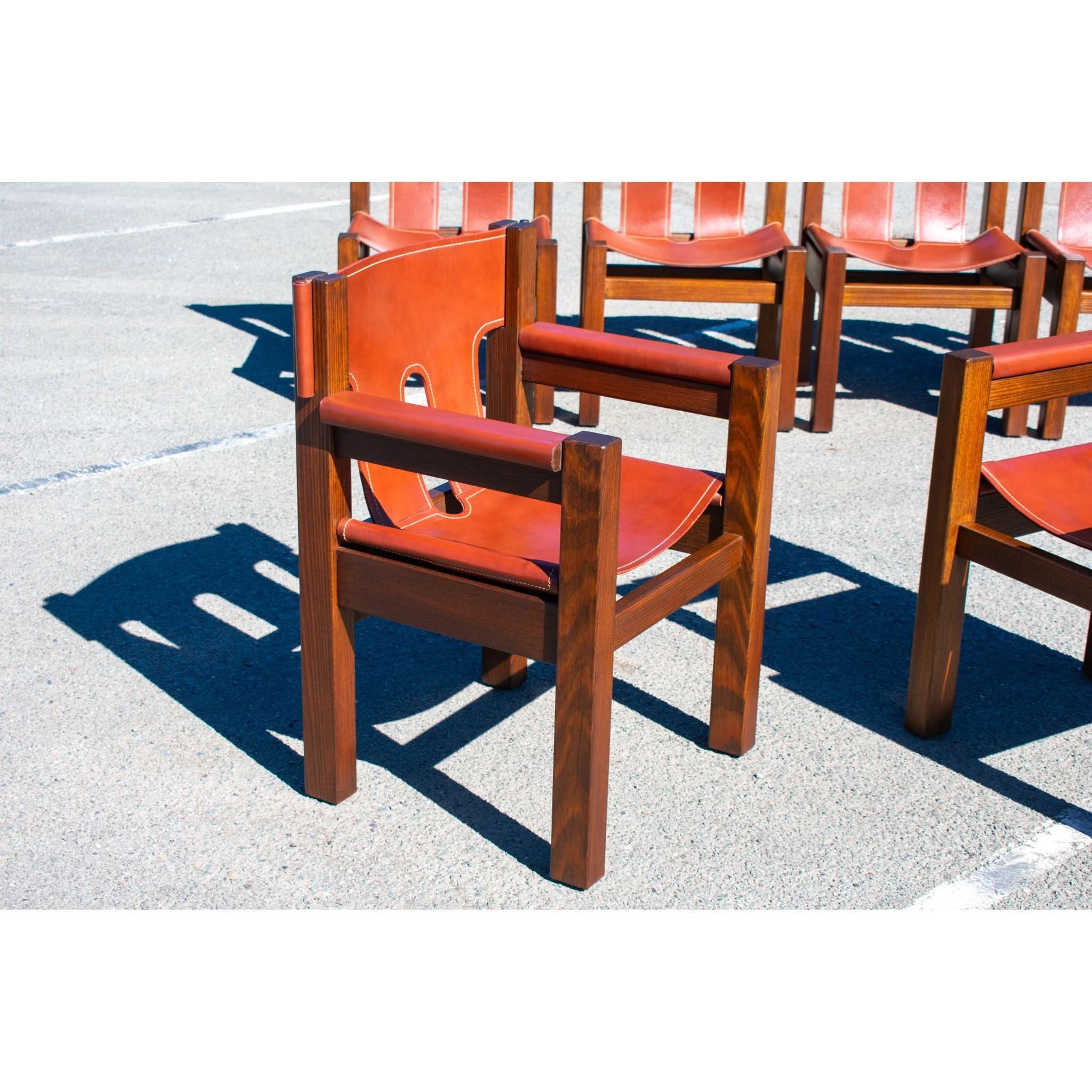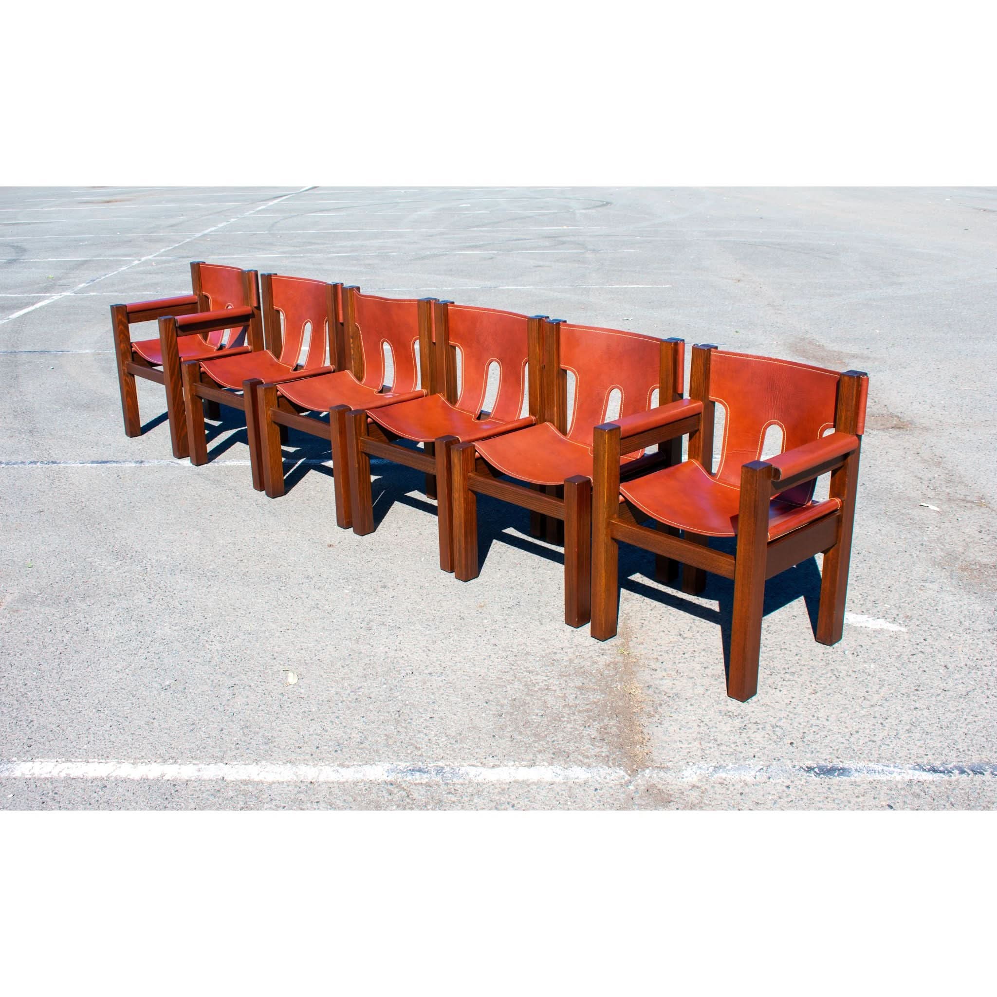 A rare find from the golden era of Australian modernism, this Matilda dining suite is a collector’s piece seldom seen intact. Comprising four dining chairs and two carvers, all upholstered in rich conker-toned Howe saddle leather, the suite retains its original character and materials—an increasingly elusive combination.