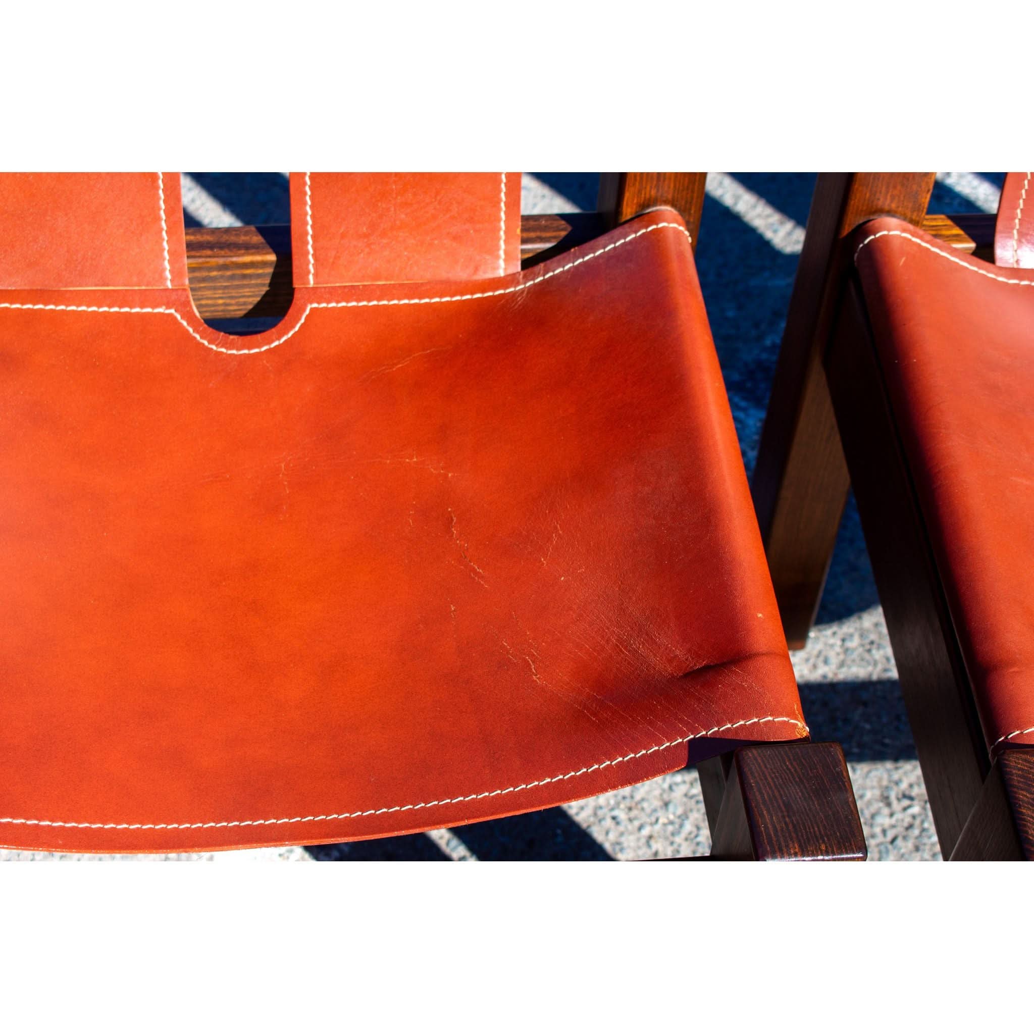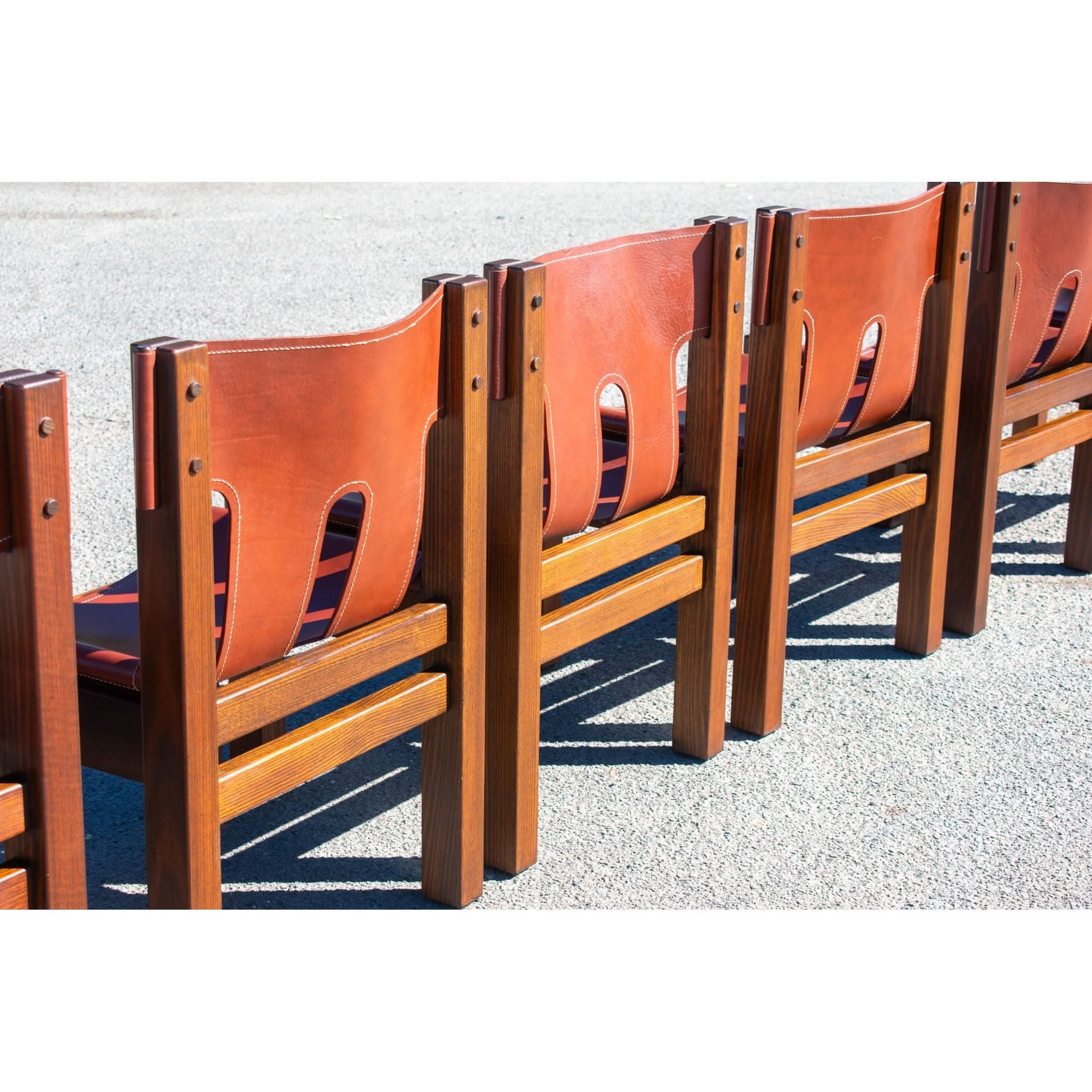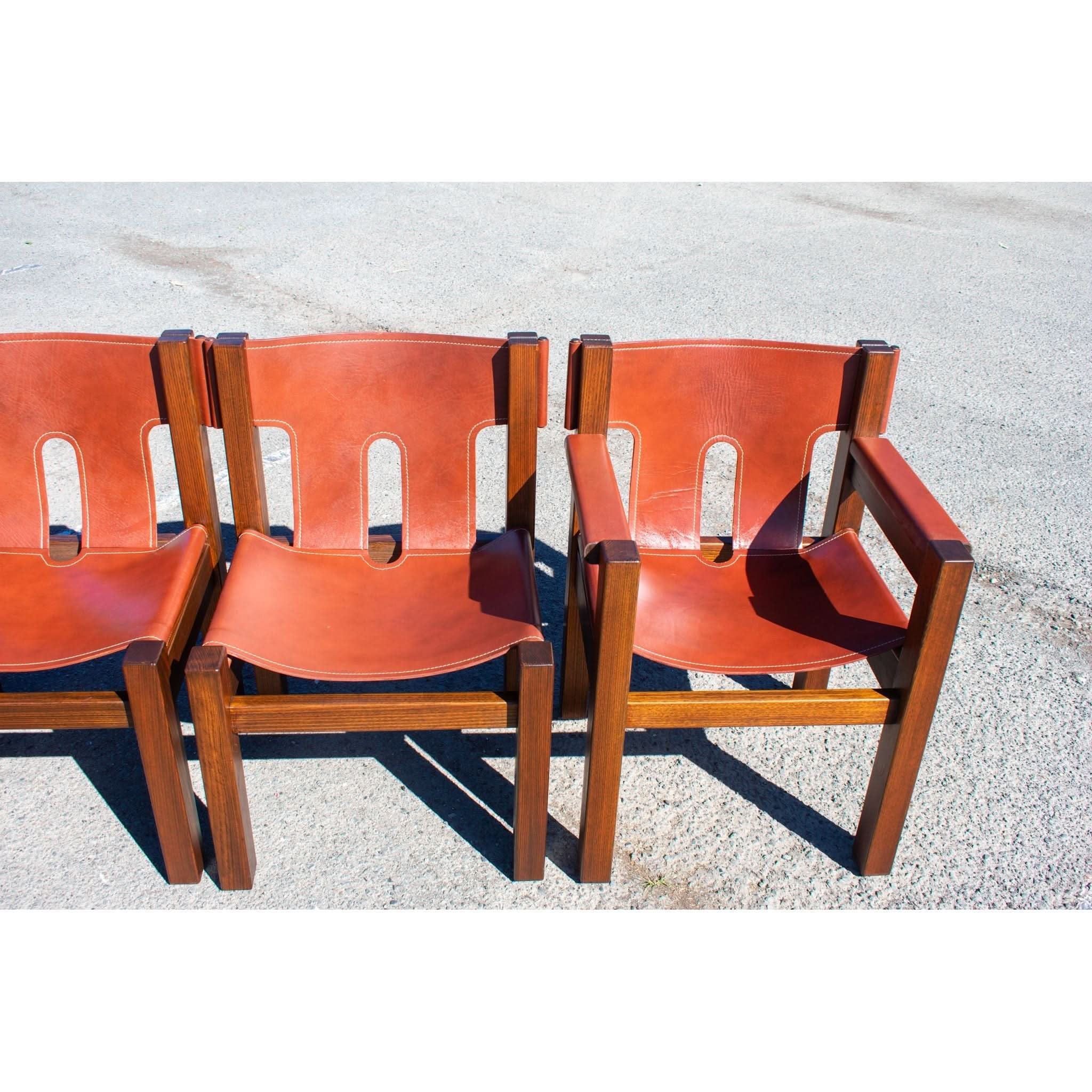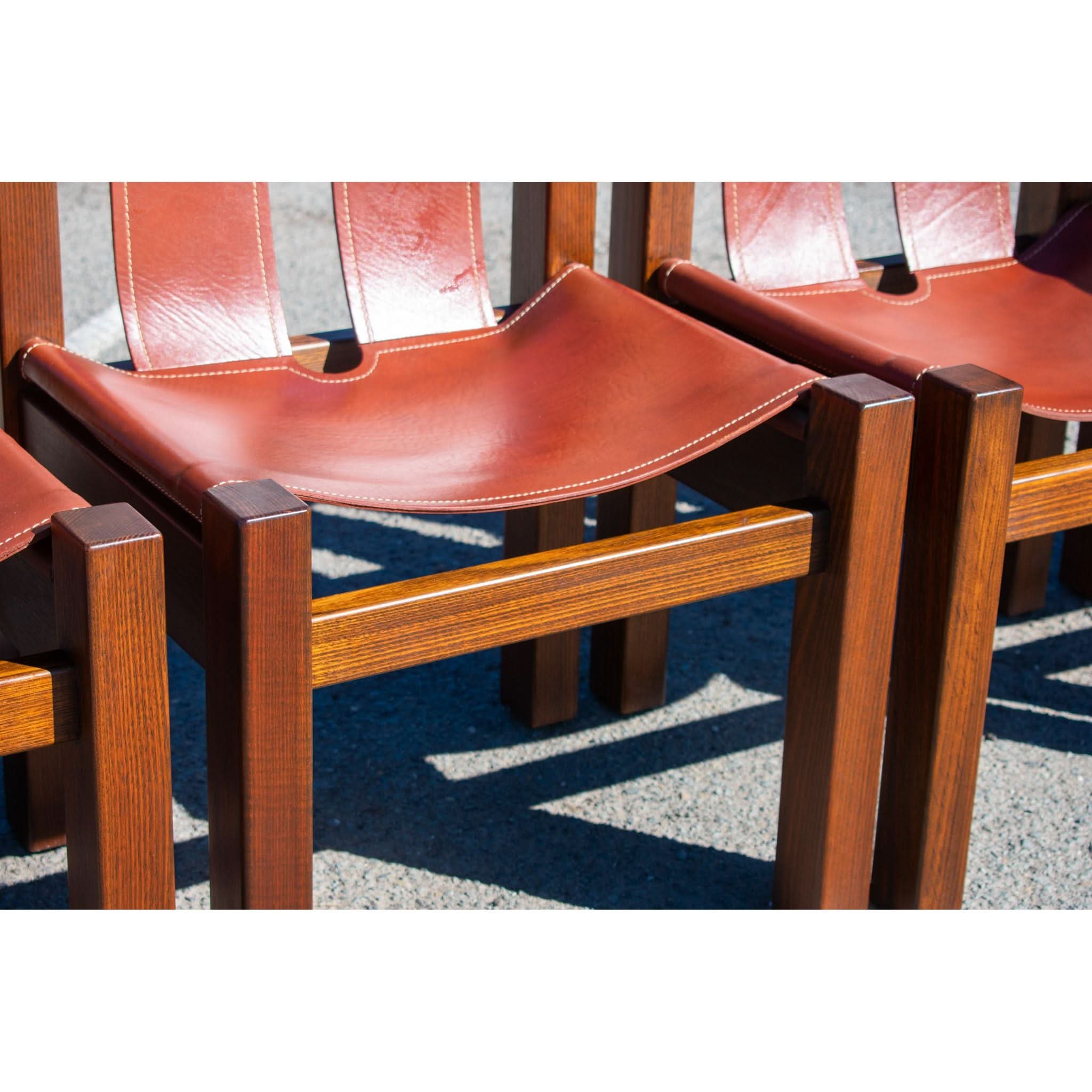 • Condition:Very good overall condition. All frames have been cleaned, waxed, and present beautifully. Joints have been checked and re-glued where necessary. The leather is also in very good condition, with a few small marks visible on a couple of chairs. One chair shows light cracking and a small tear—please refer to the images for detail.