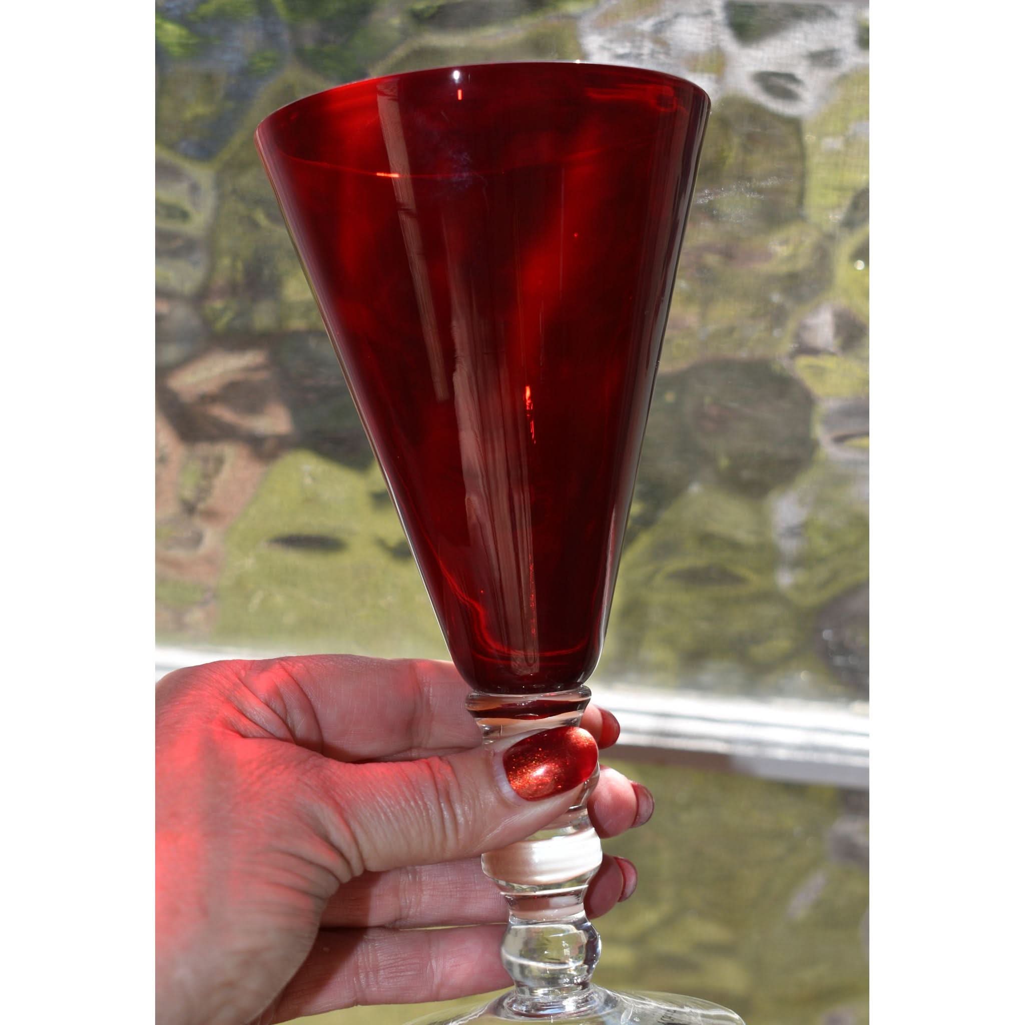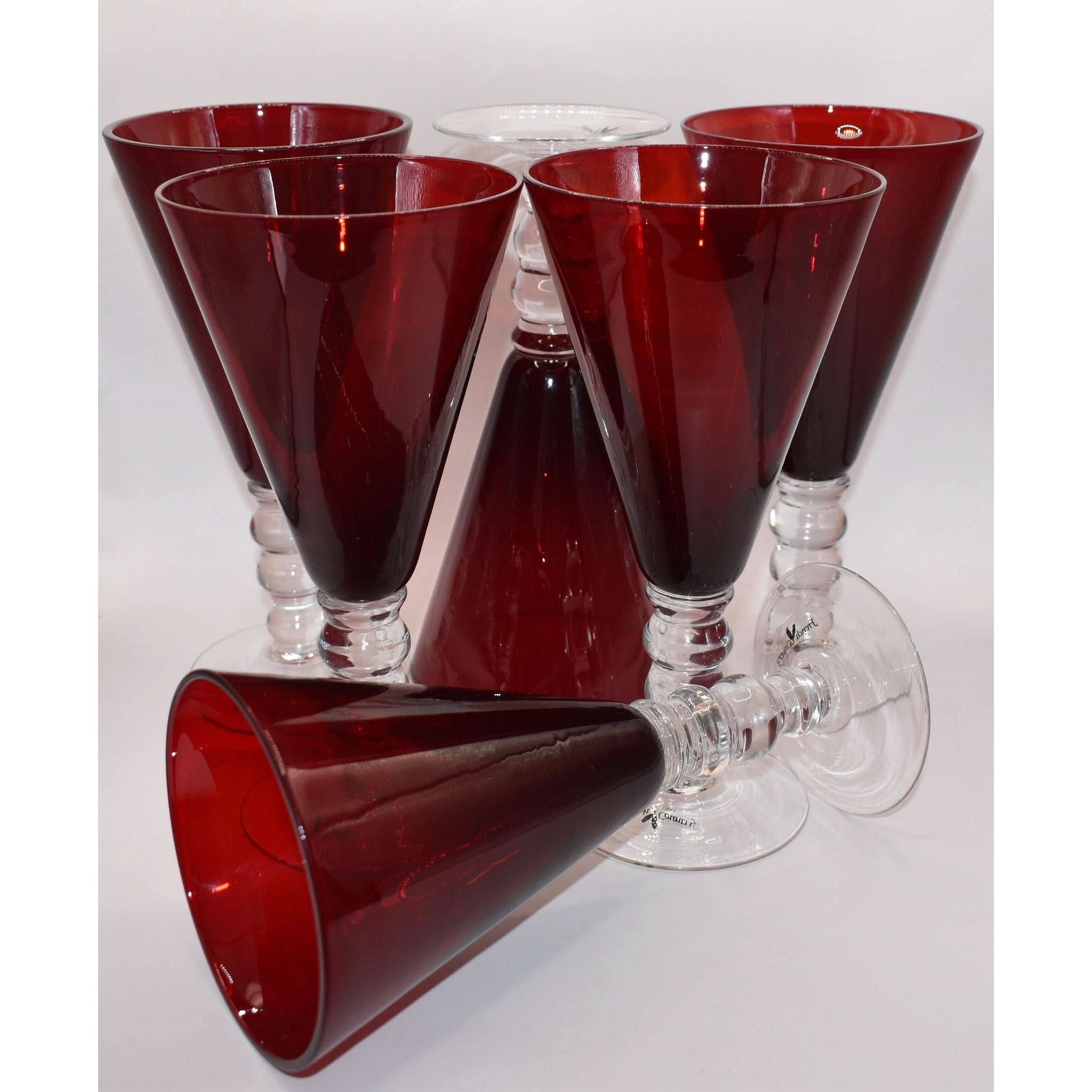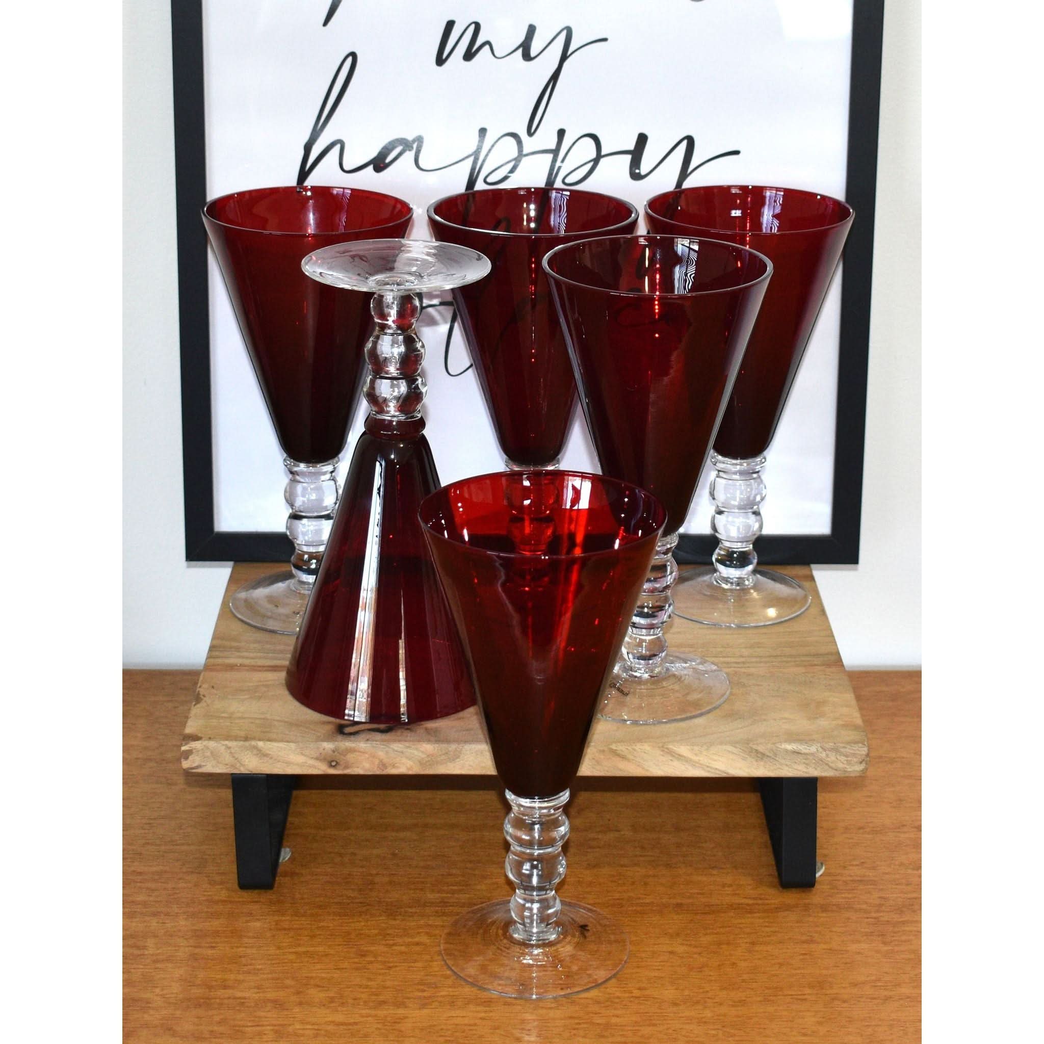 Add a splash of charm to your table with these Red Glass Wine Goblets from the French Country Collection. Each goblet boasts a vibrant red hue and a distinctive three-ball stem that’s as fun to hold as it is to look at. Their generous size and sturdy base make them perfect for savoring a large glass of wine or mixing up your favorite cocktail. Unique and eye-catching, these goblets bring a playful twist to any gathering, ensuring your drinks stand out in style. A set of six means plenty of reasons to celebrate with friends!