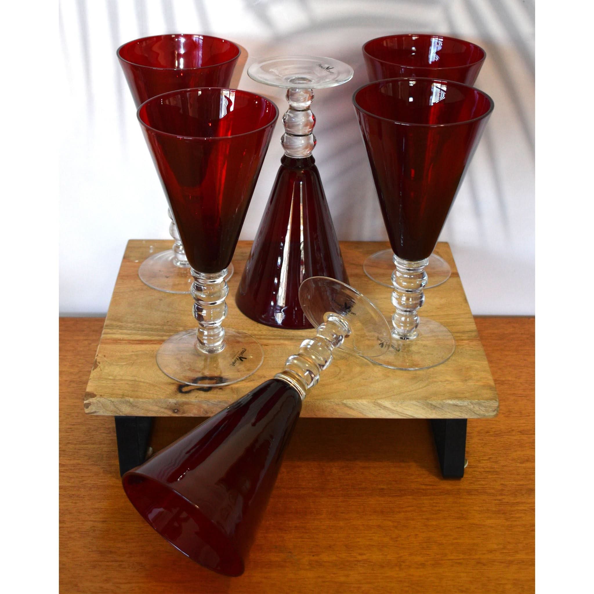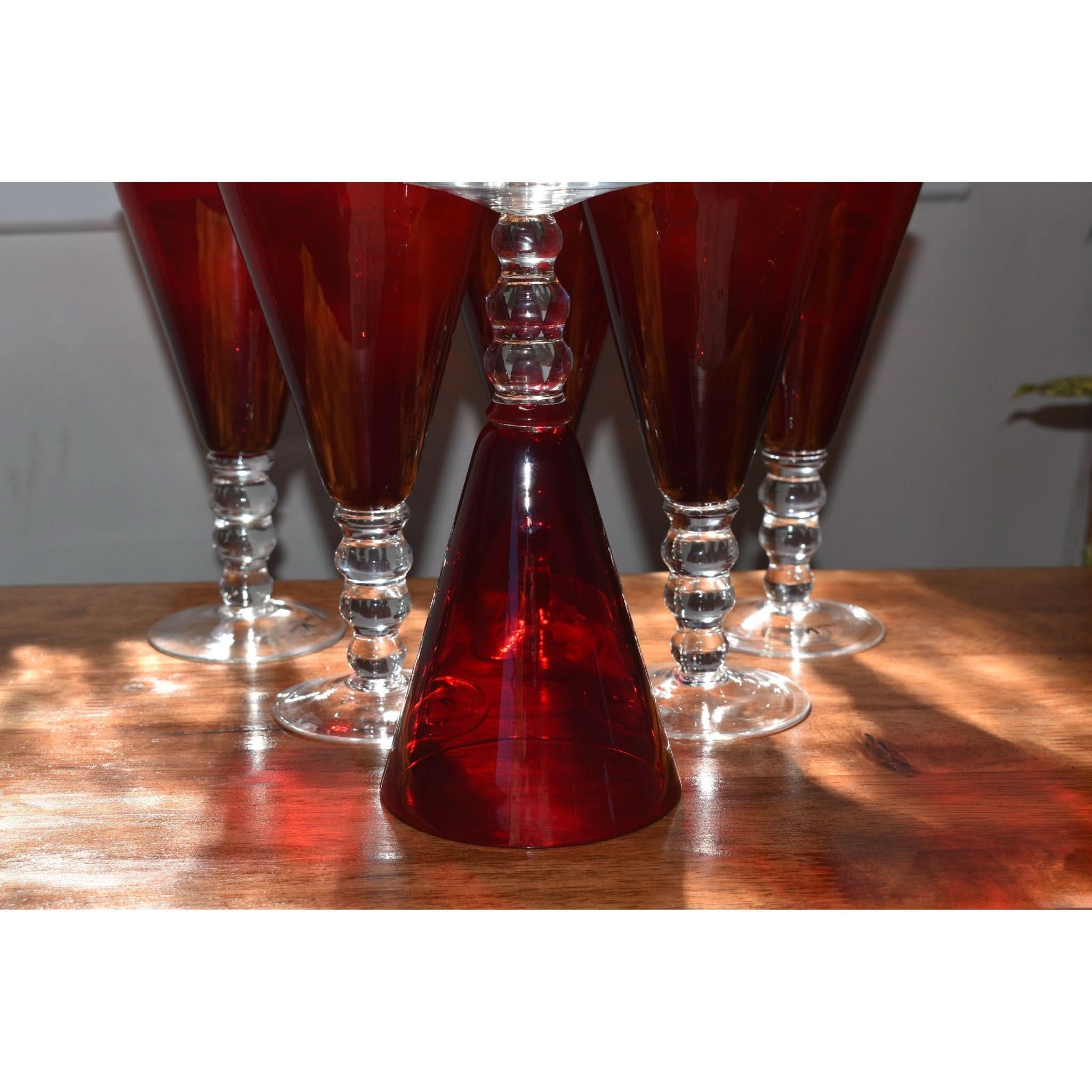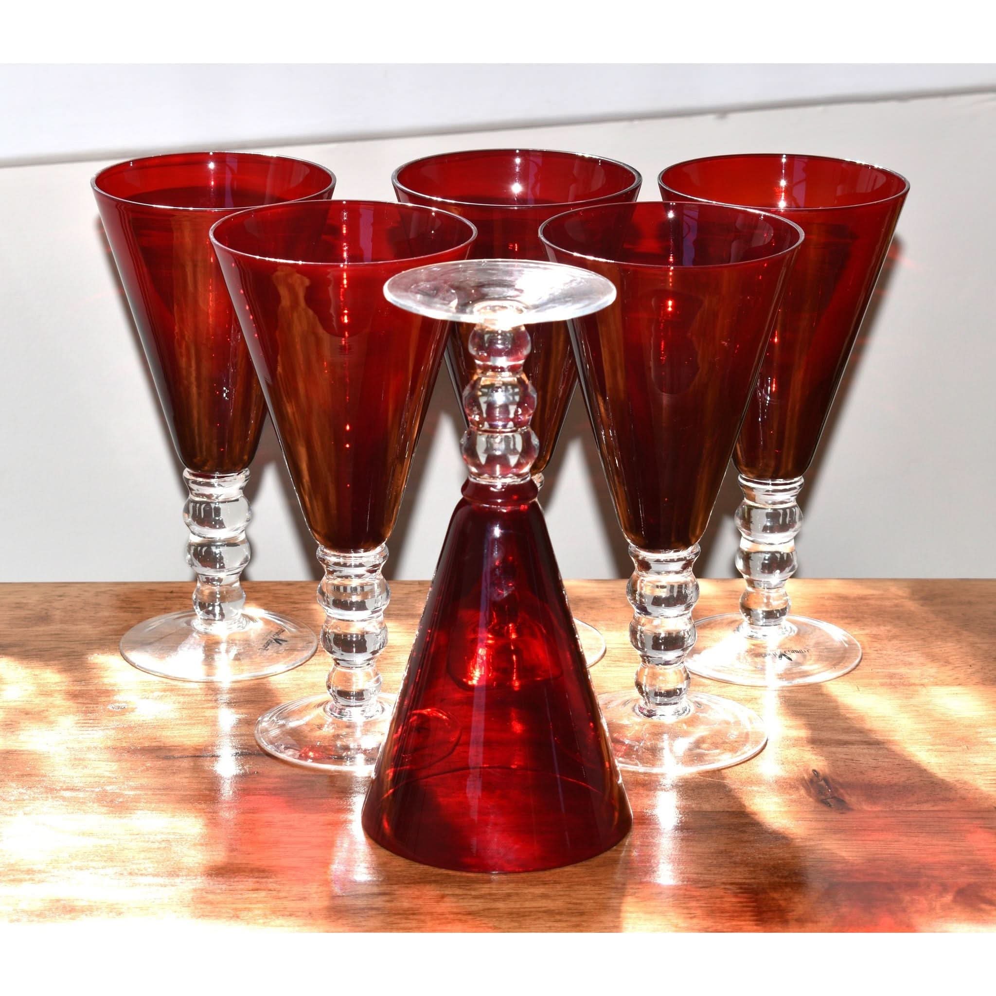 Add a splash of charm to your table with these Red Glass Wine Goblets from the French Country Collection. Each goblet boasts a vibrant red hue and a distinctive three-ball stem that’s as fun to hold as it is to look at. Their generous size and sturdy base make them perfect for savoring a large glass of wine or mixing up your favorite cocktail. Unique and eye-catching, these goblets bring a playful twist to any gathering, ensuring your drinks stand out in style. A set of six means plenty of reasons to celebrate with friends!