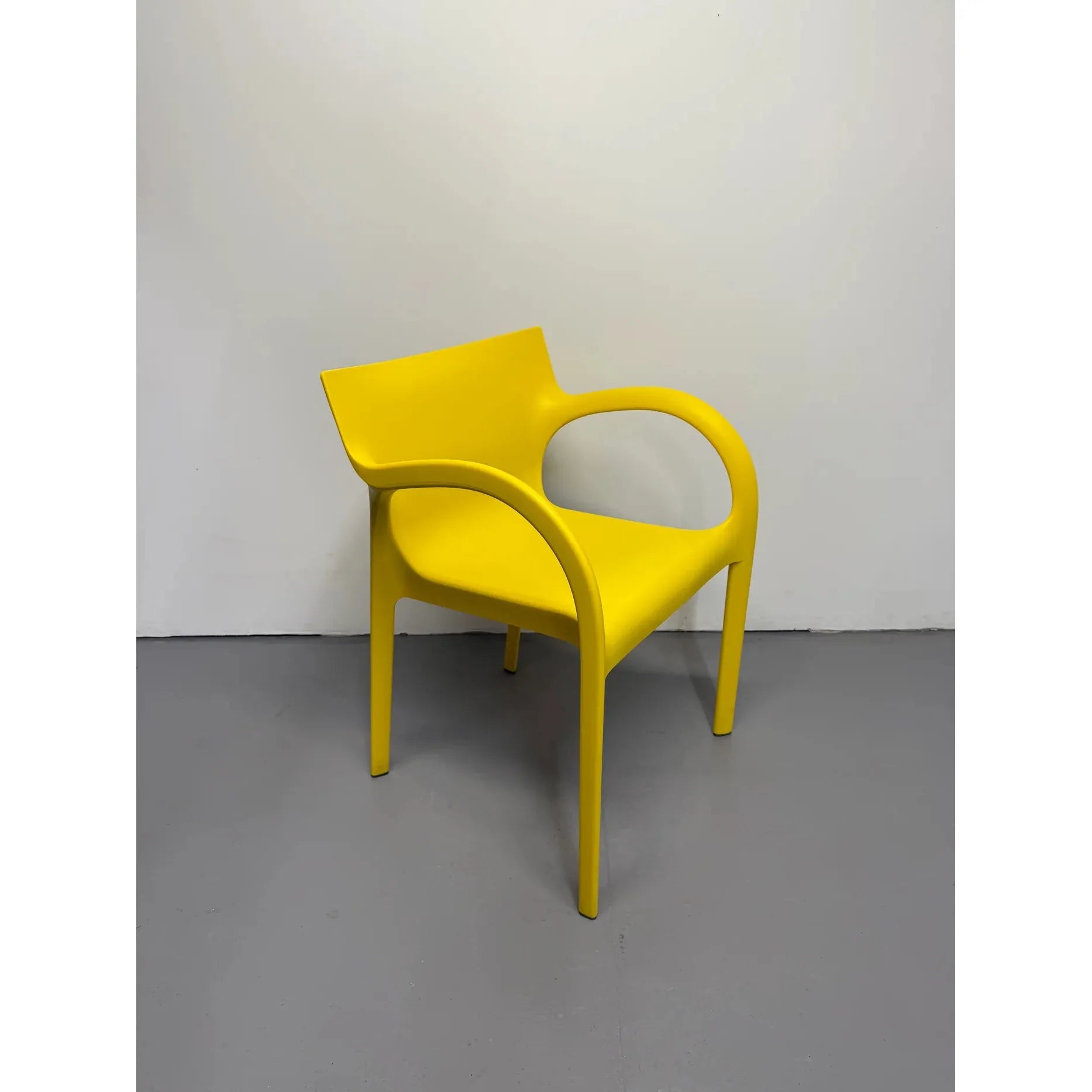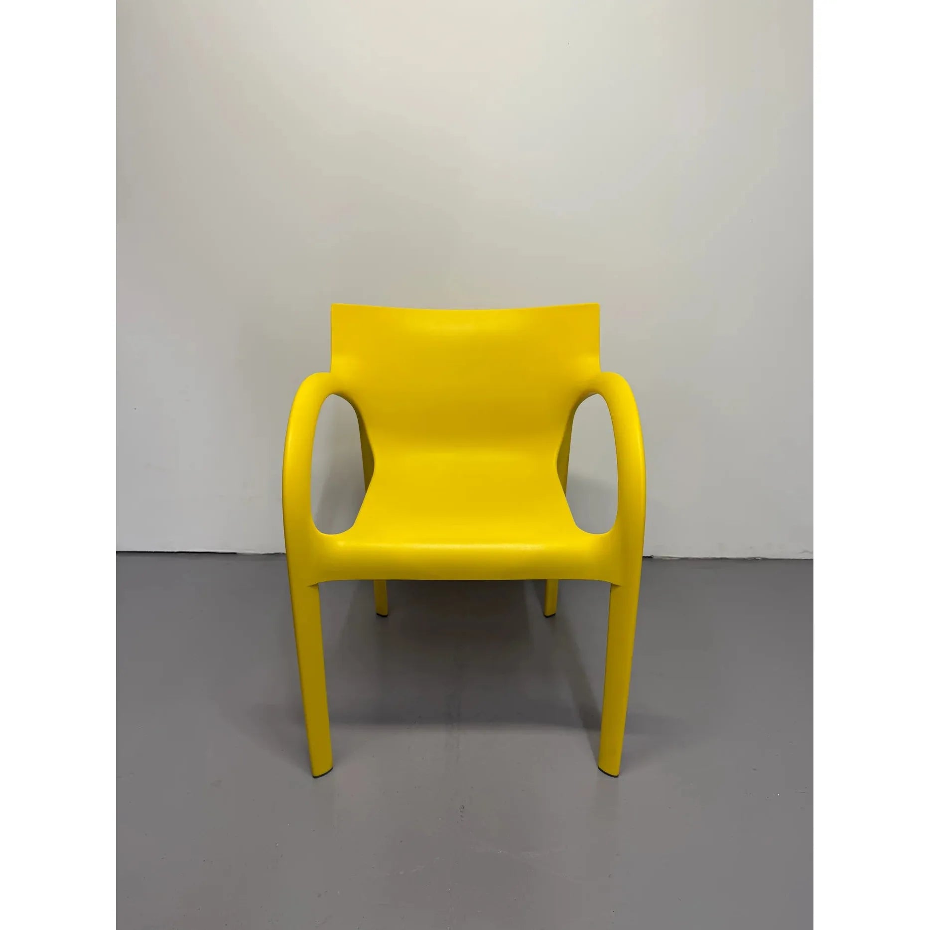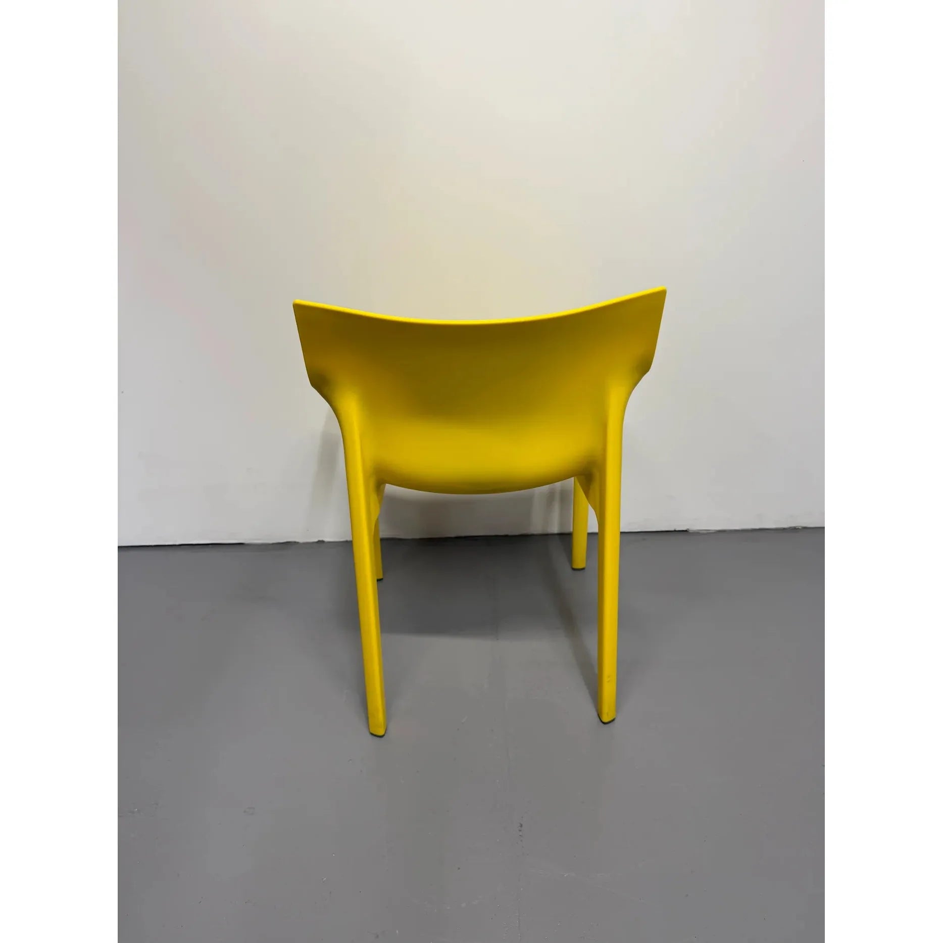 This version comes in a bright yellow finish, adding a vibrant pop of colour indoors or outdoors. Made with UV- and weather-resistant materials, the chair is lightweight, easy to clean, and stackable for flexible use.