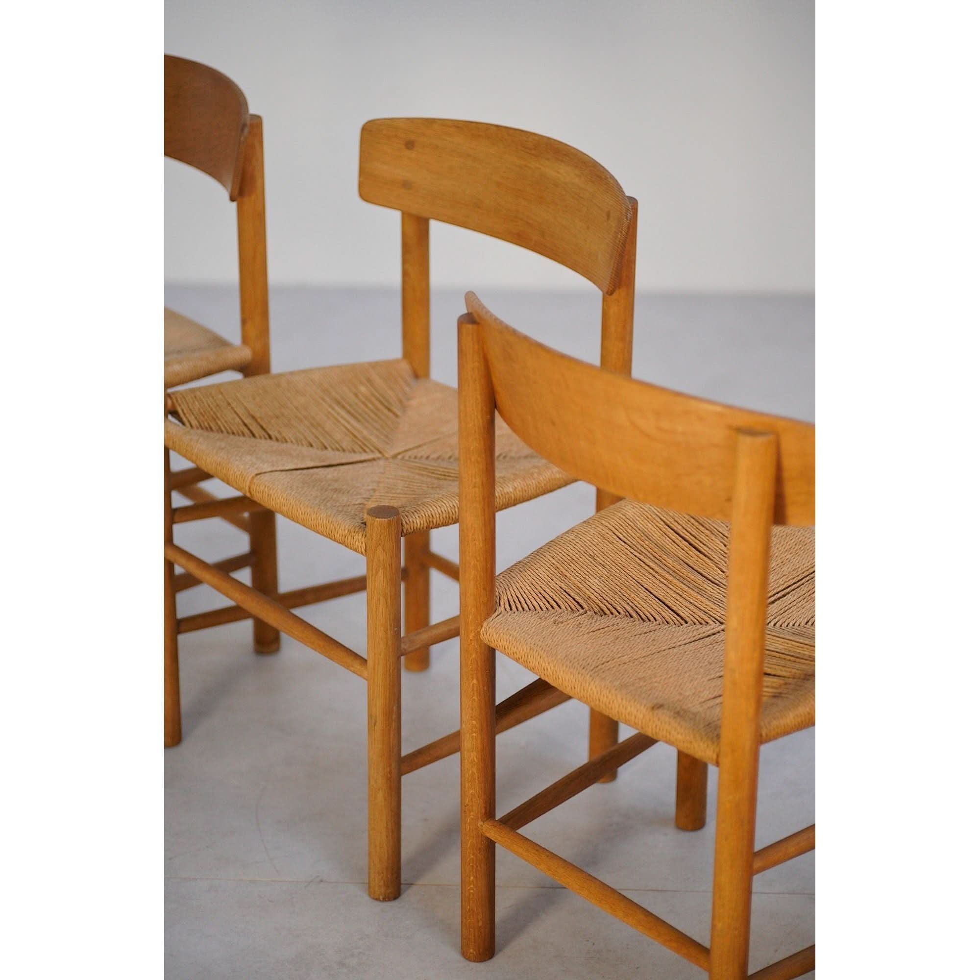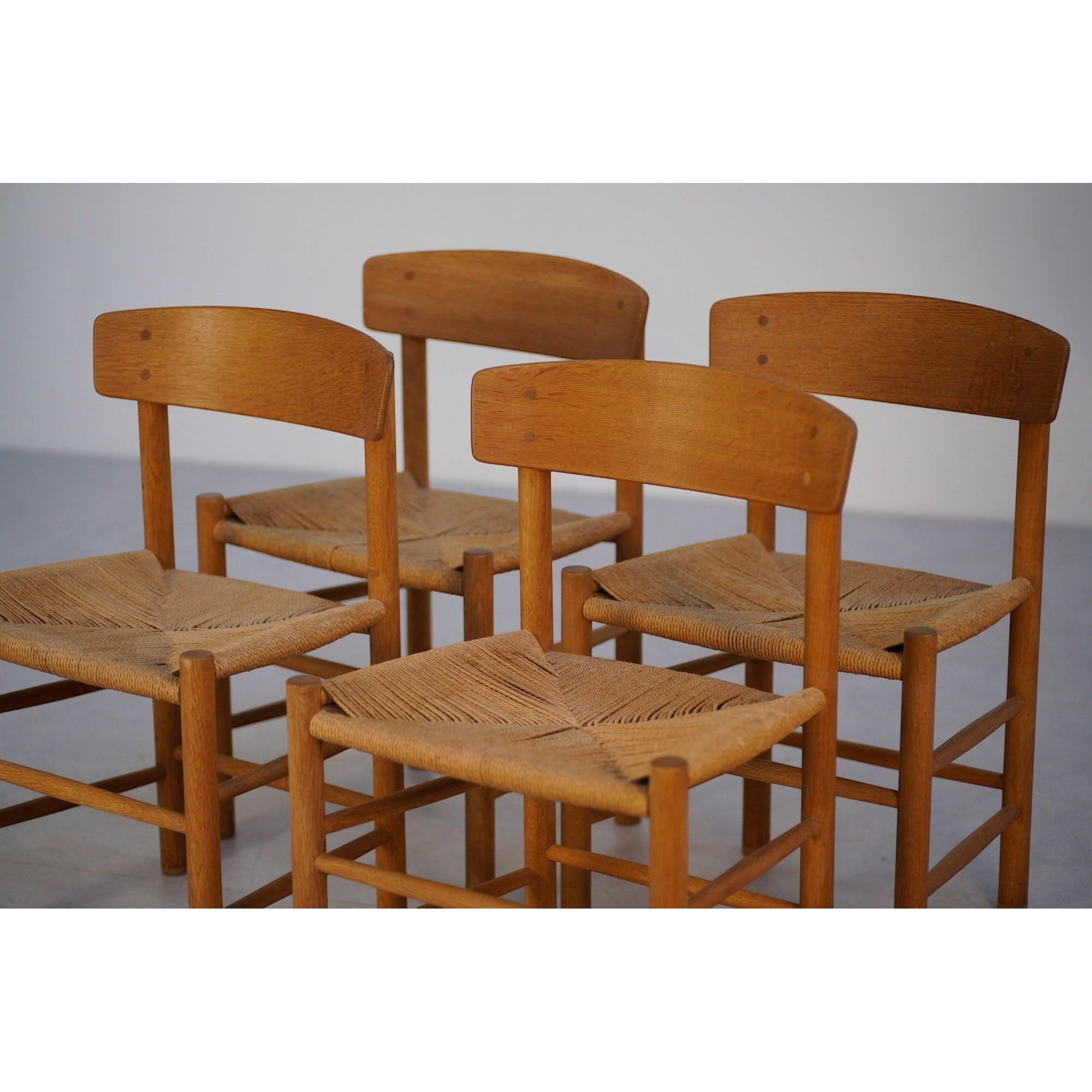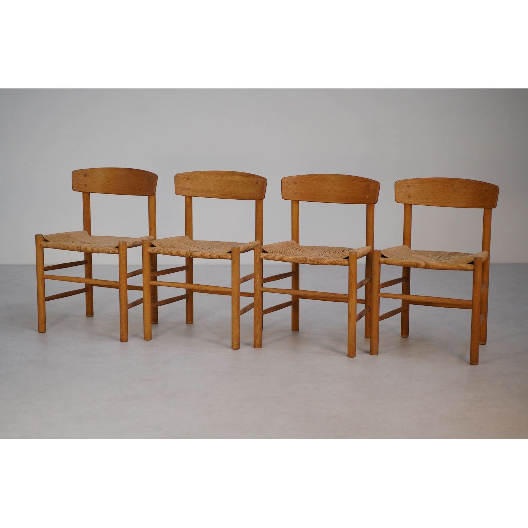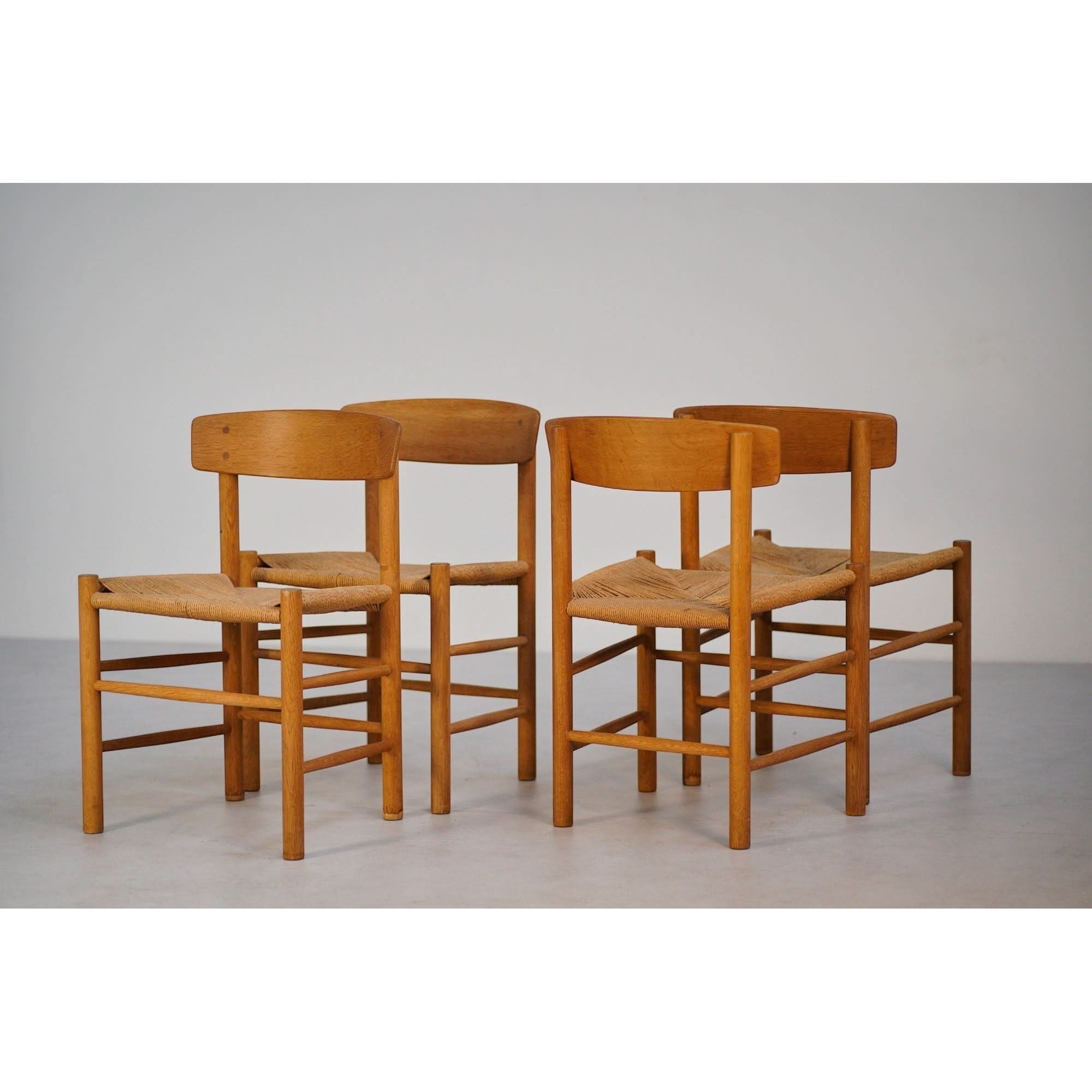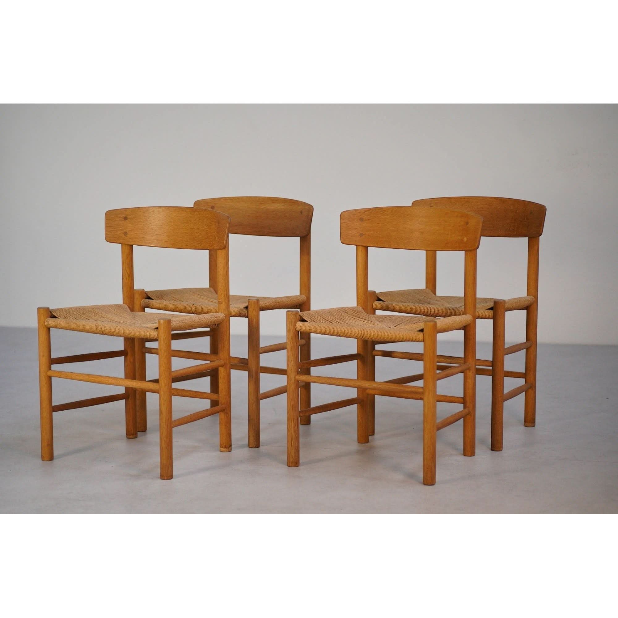 Originally designed by Mogensen in 1947 and knows as the peoples chair, this is an original set manufactured in Denmark in the 1970s. Crafted from oak and paper cord. Signs of light wear consistent of age, generally in excellent vintage condition. Please keep in mind these are original vintage pieces, so minor imperfections are to be expected and add to the character of the chairs. Price for the 4 chairs, sold as a set