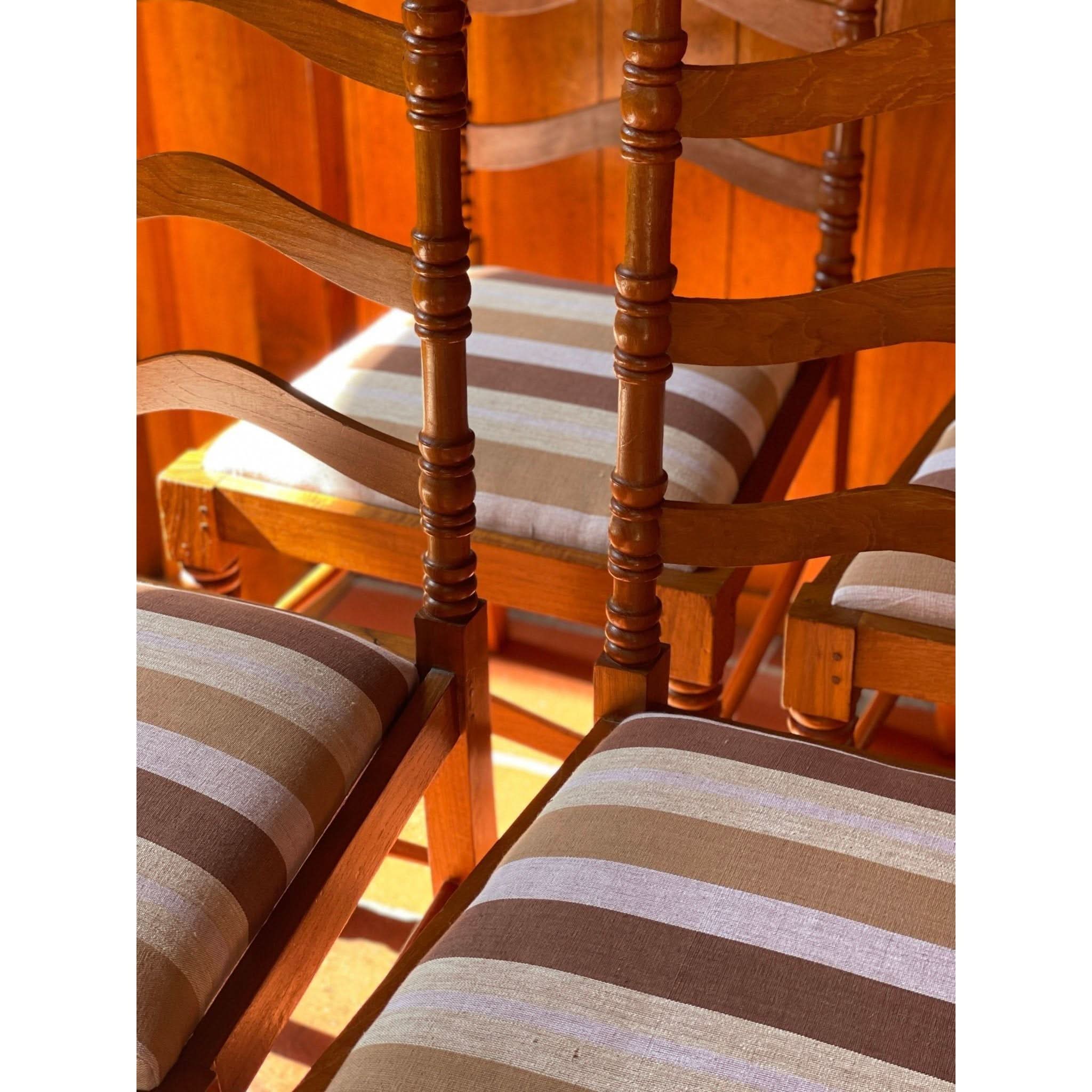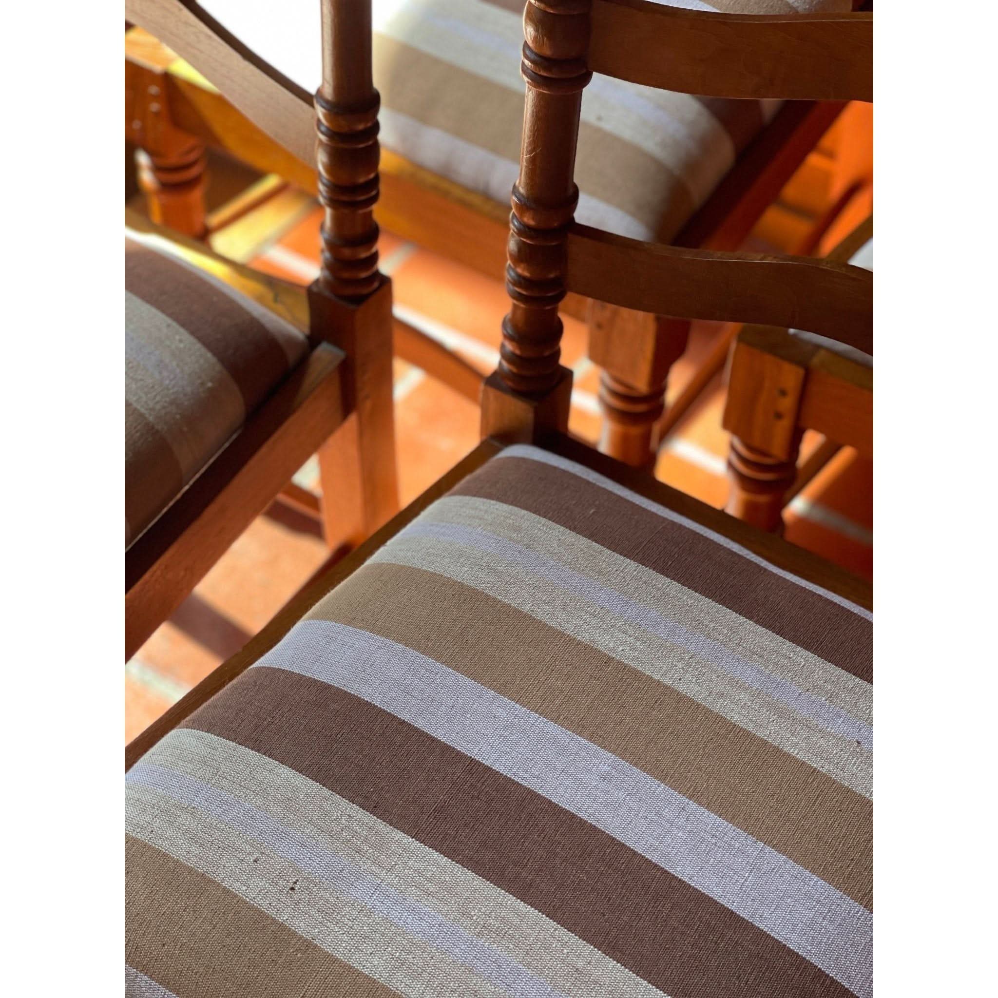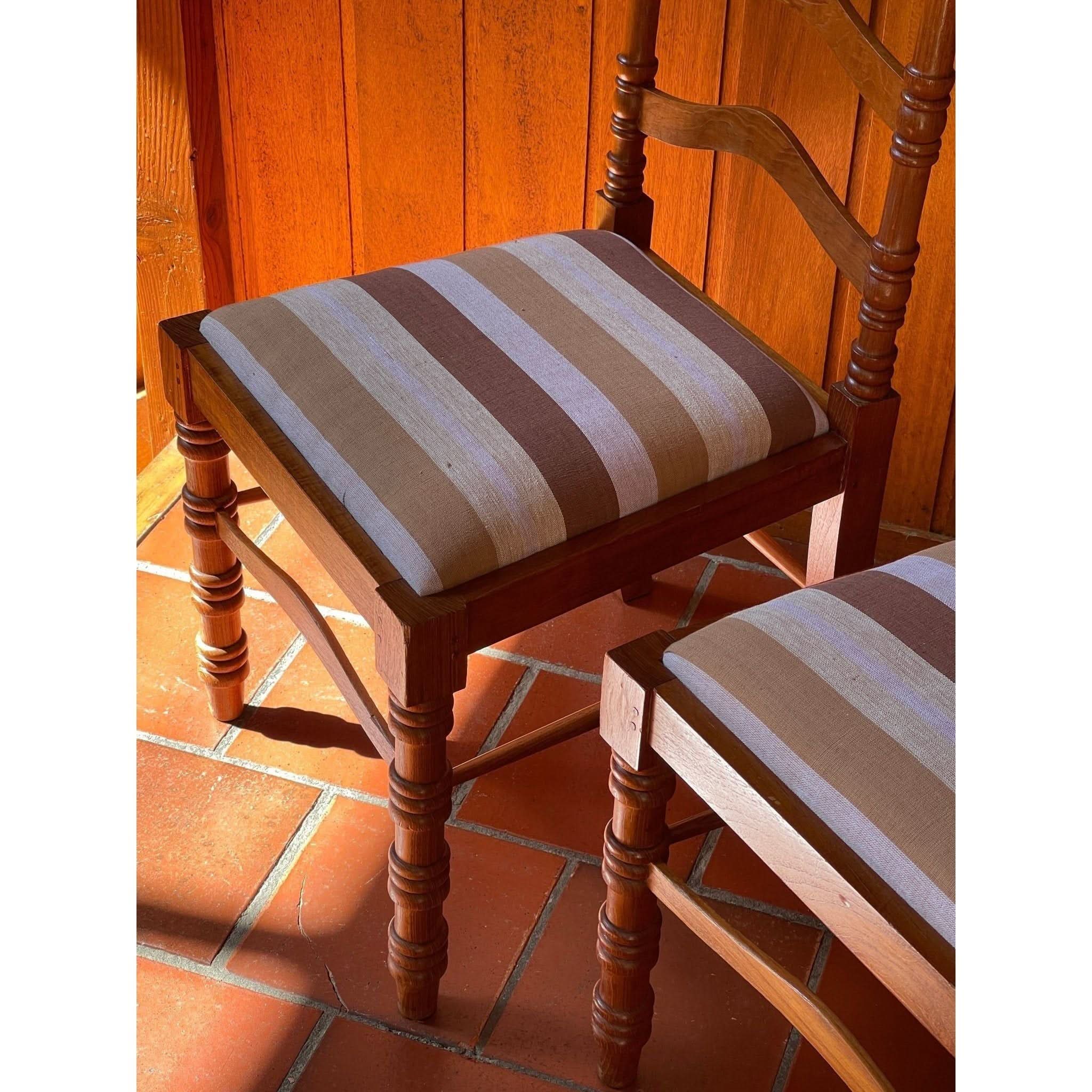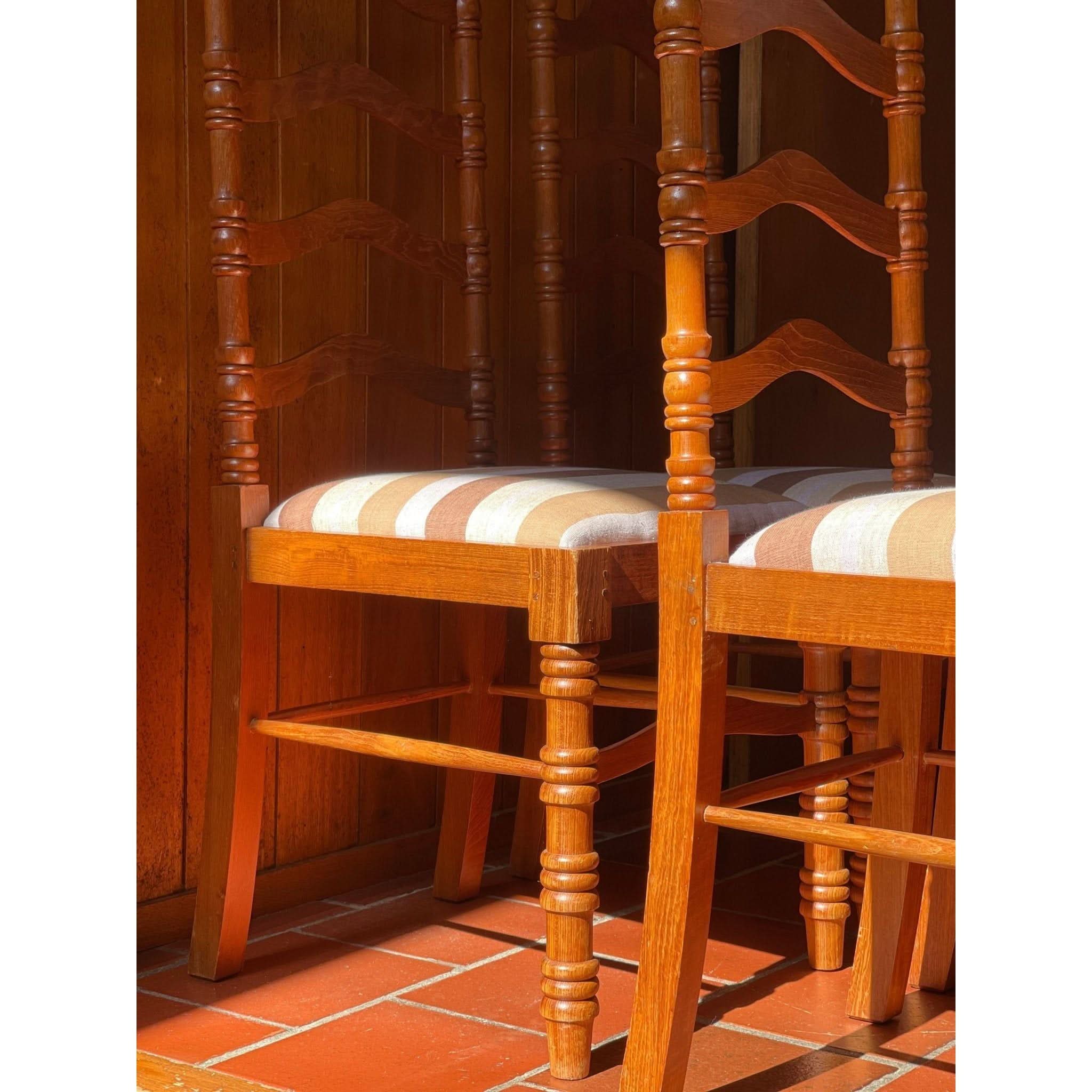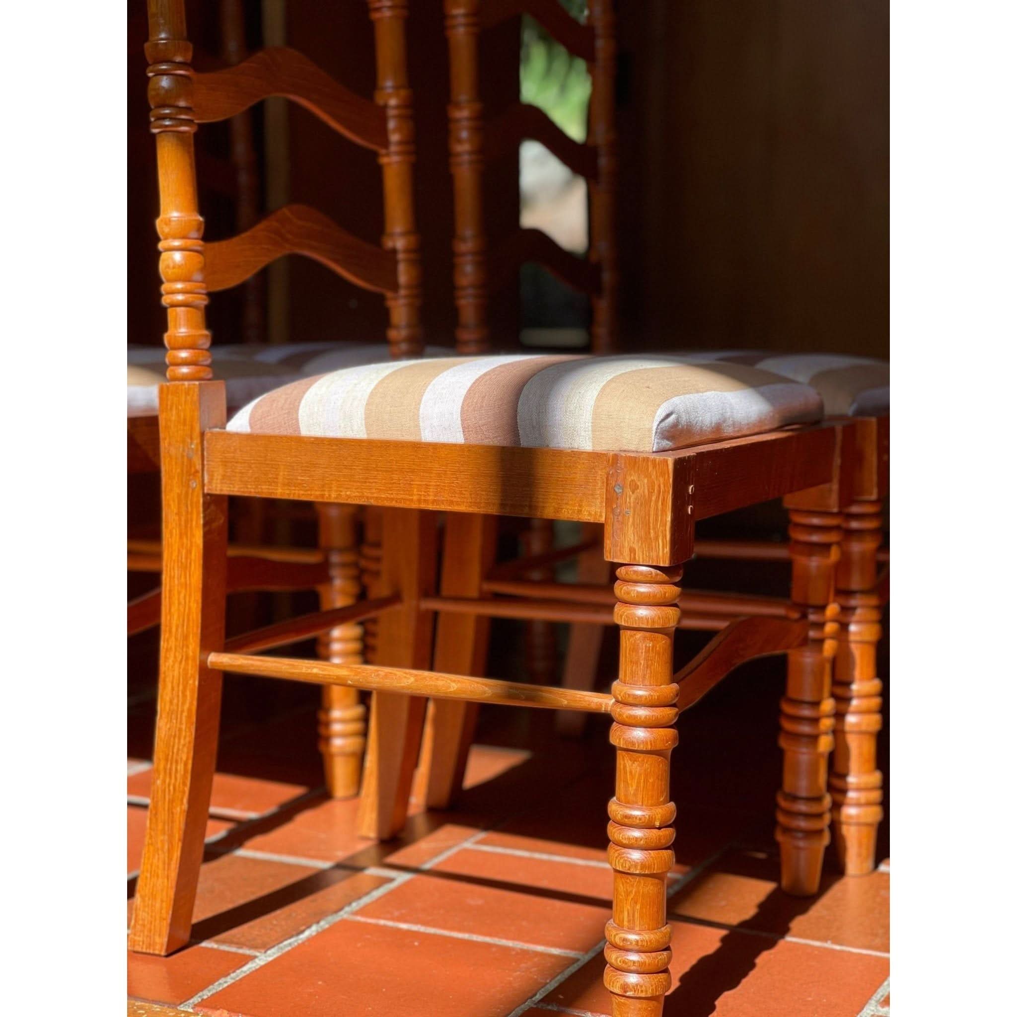 the most incredible turned timber ladderback dining chairs with new stripe upholstery to the seats. the details on these are beyond amazing!
