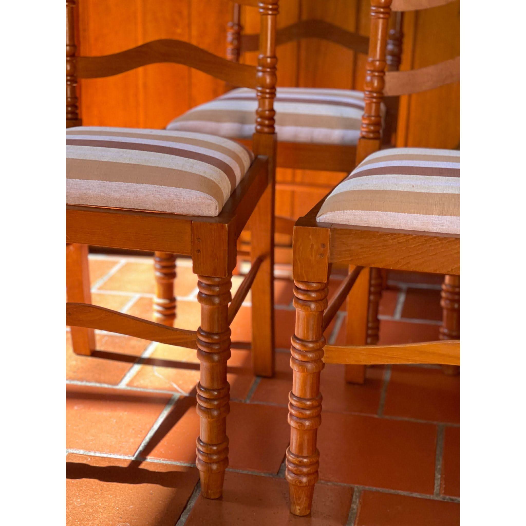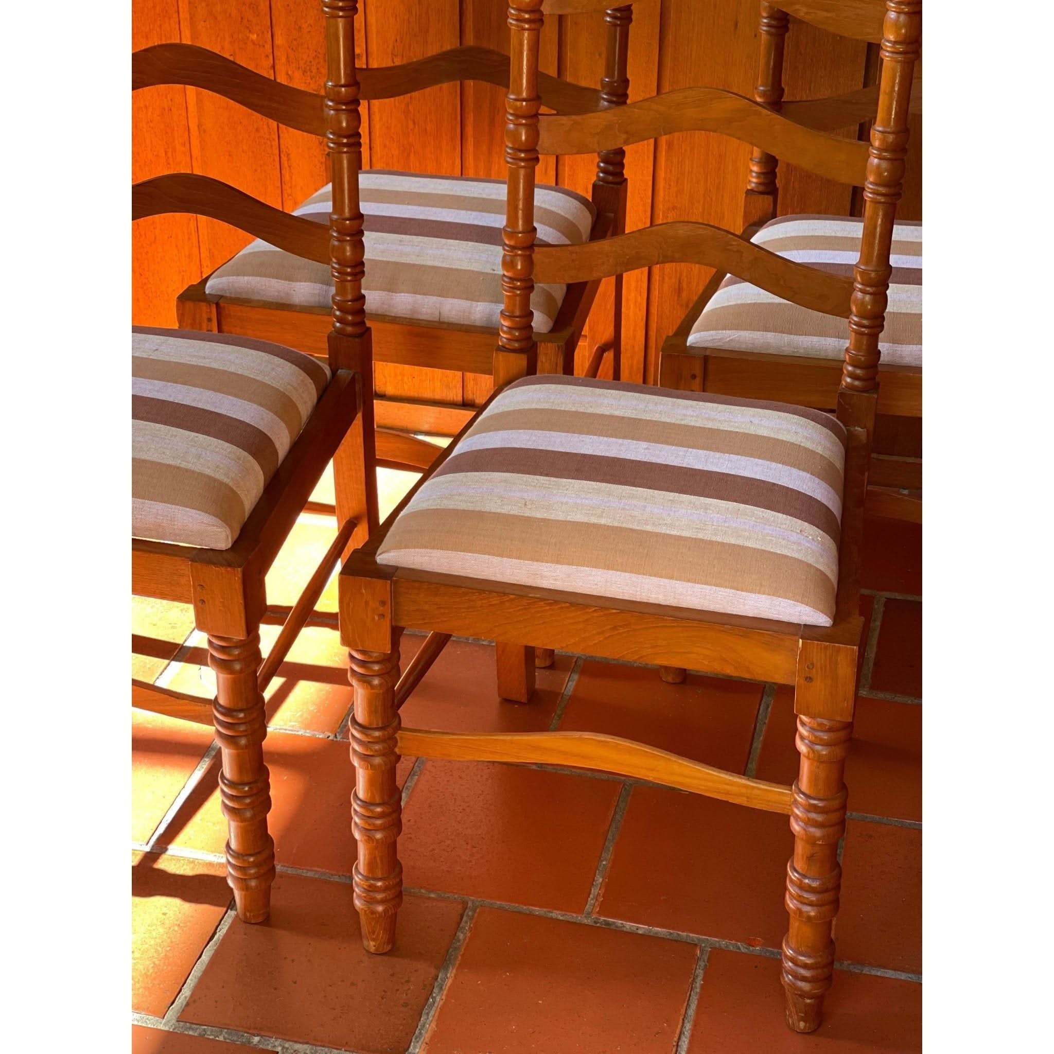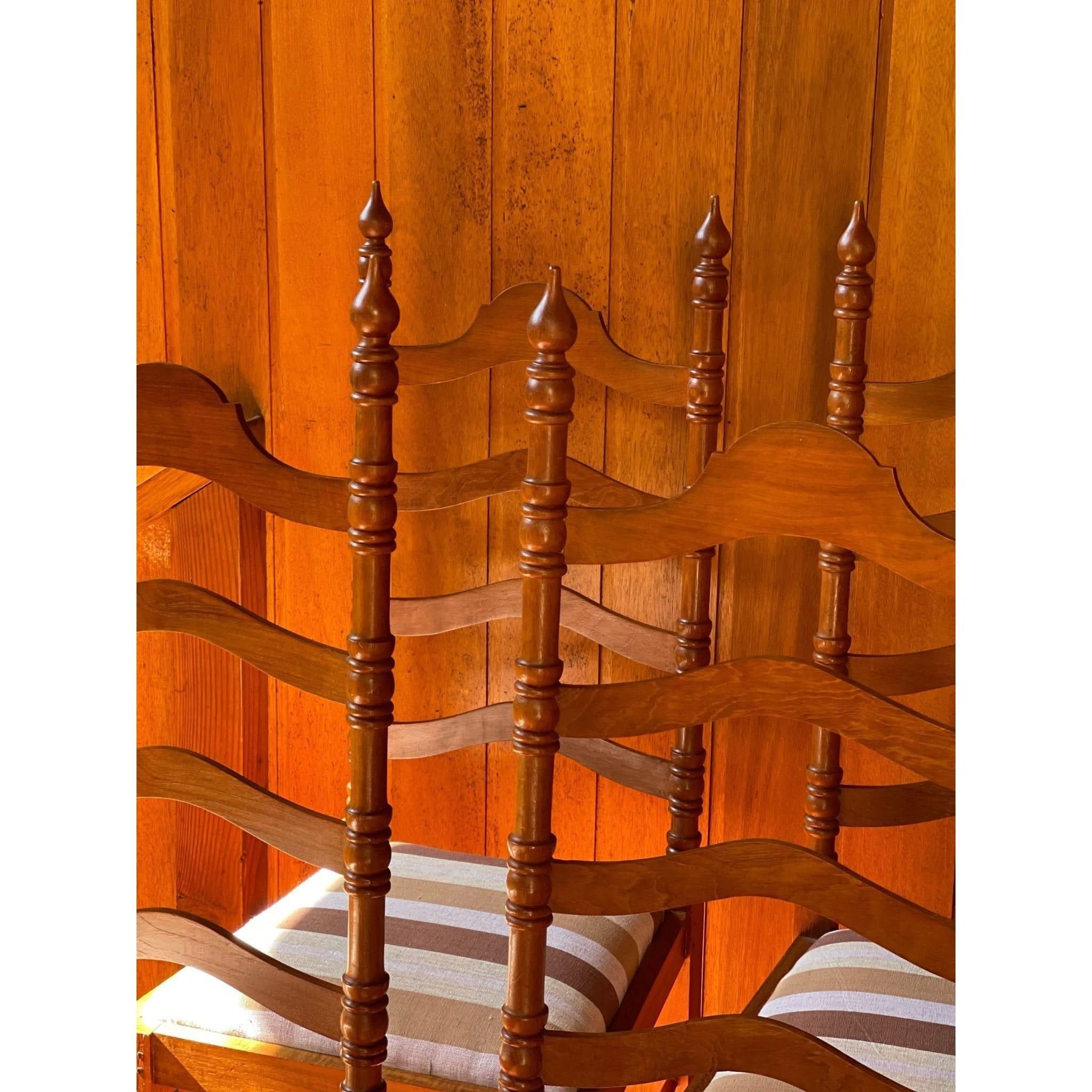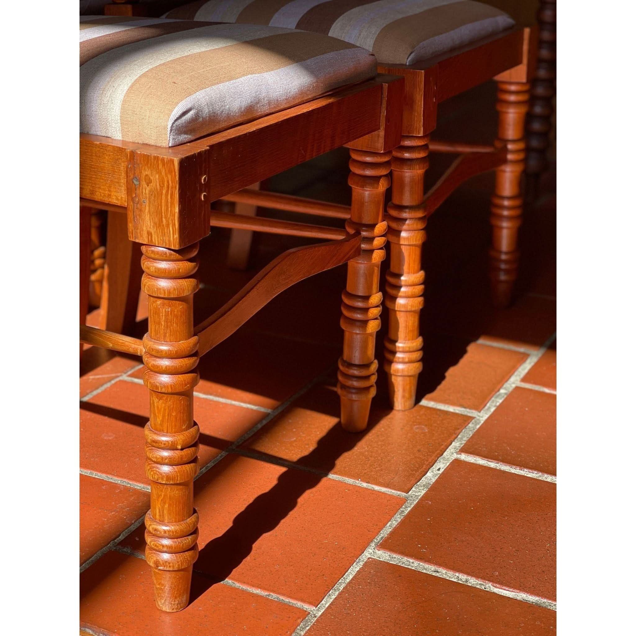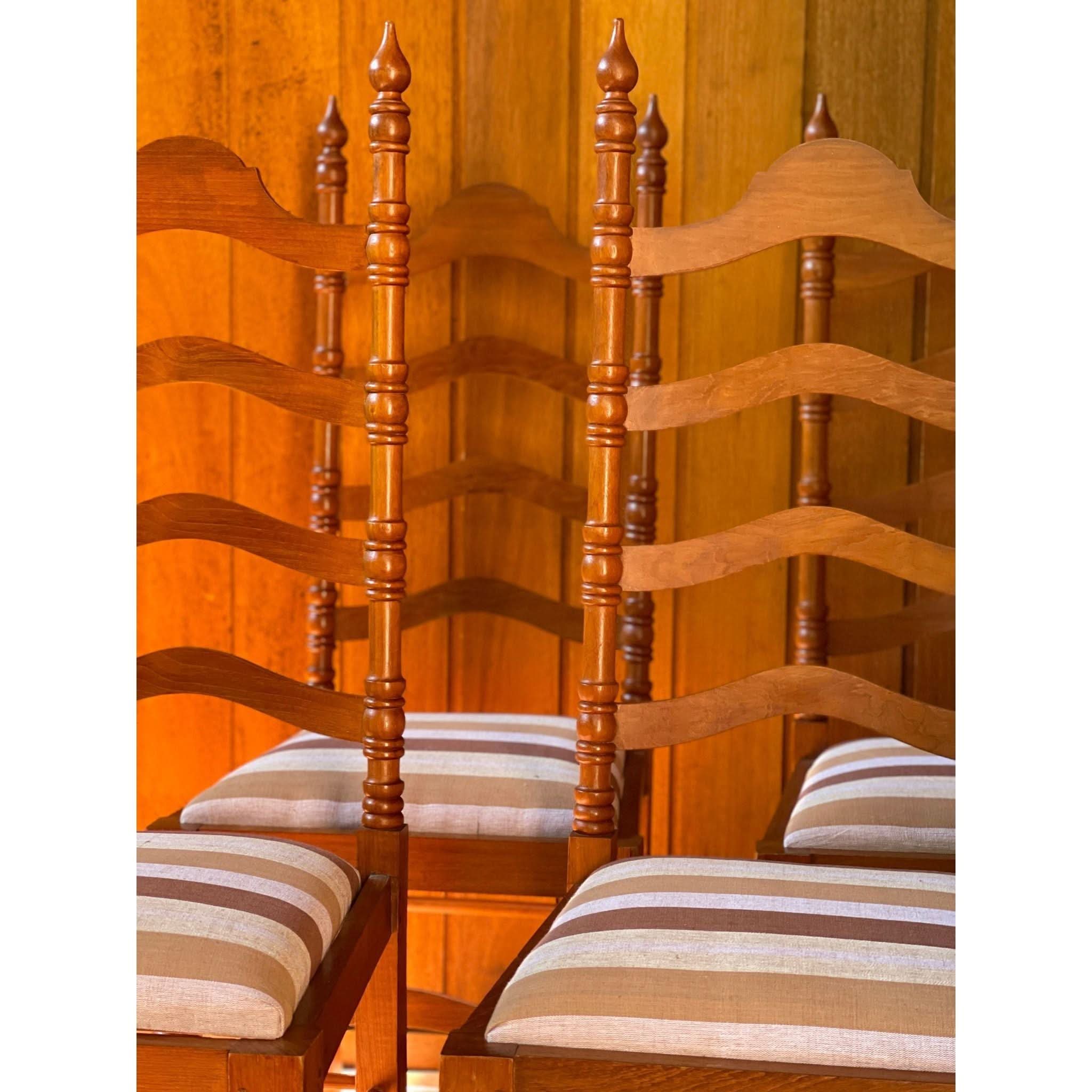 the most incredible turned timber ladderback dining chairs with new stripe upholstery to the seats. the details on these are beyond amazing!