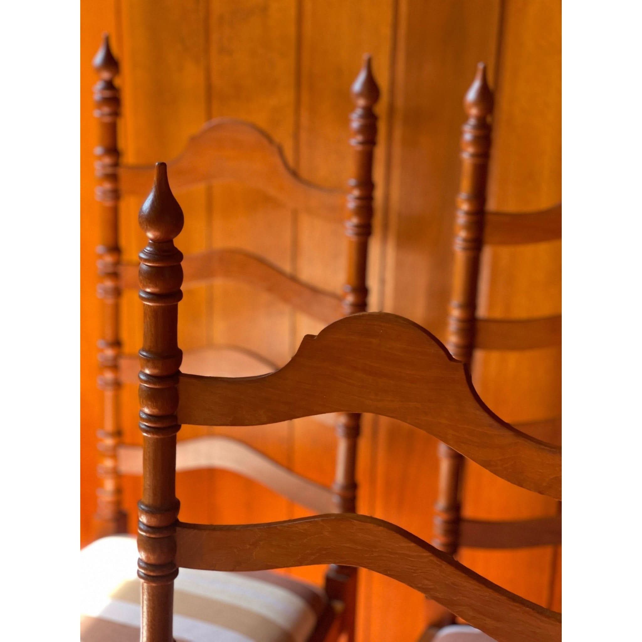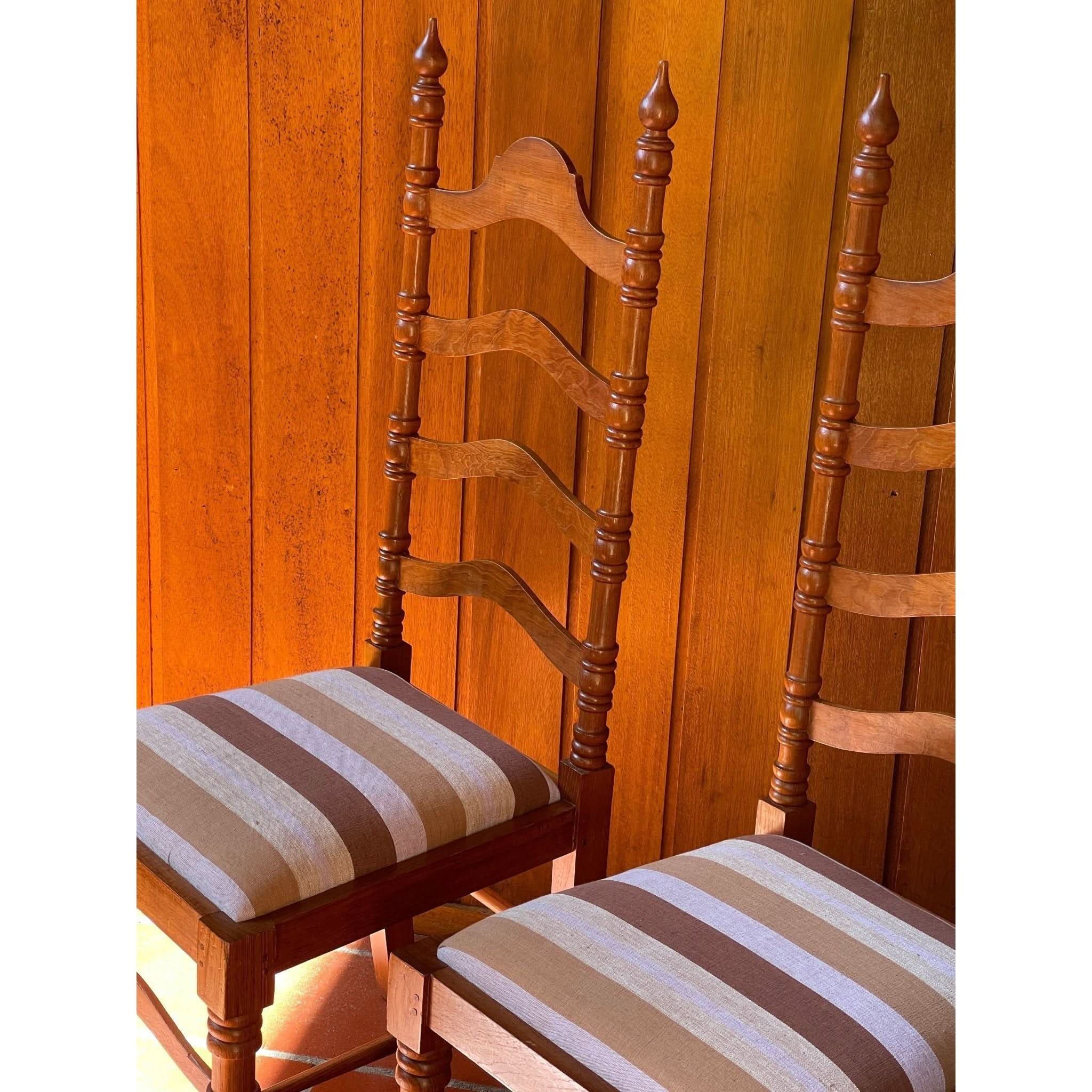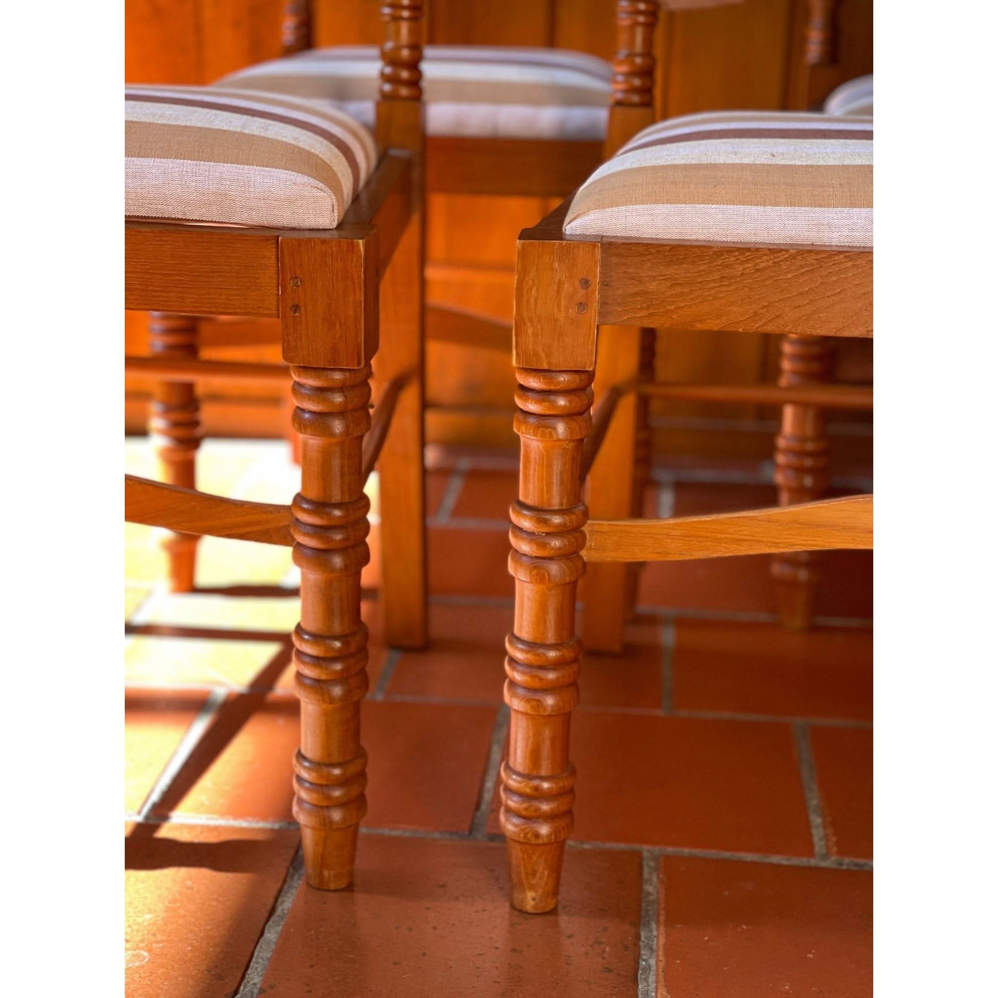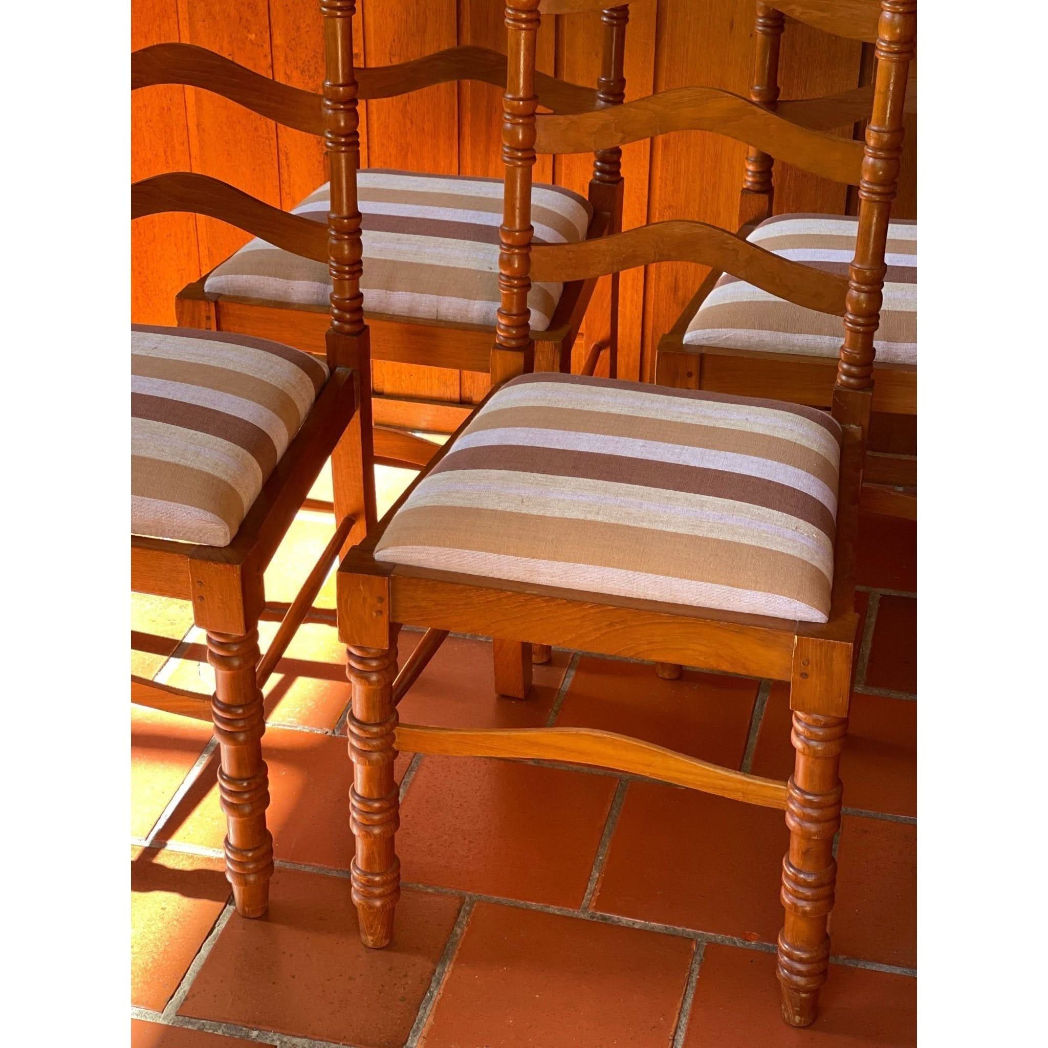 the most incredible turned timber ladderback dining chairs with new stripe upholstery to the seats. the details on these are beyond amazing!