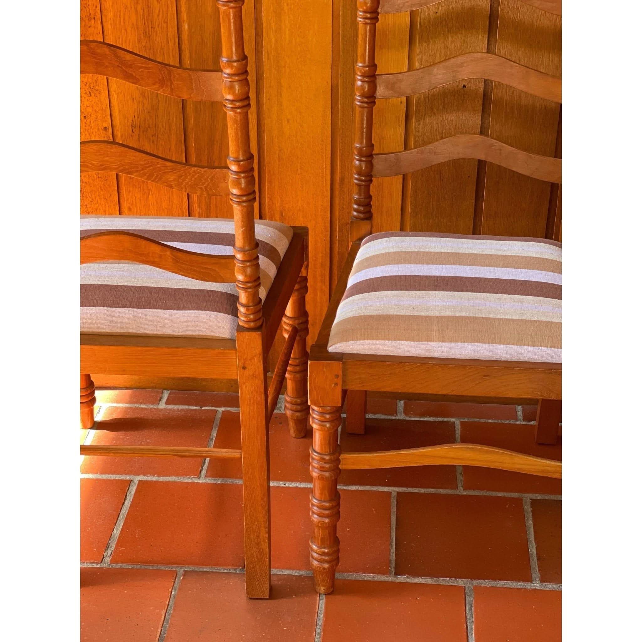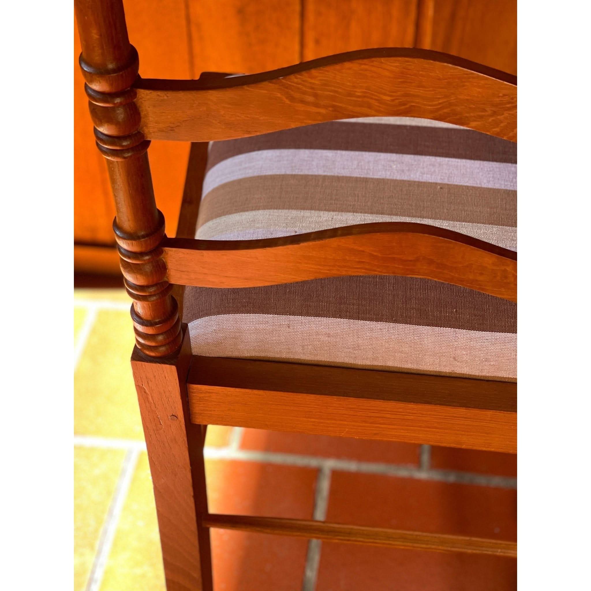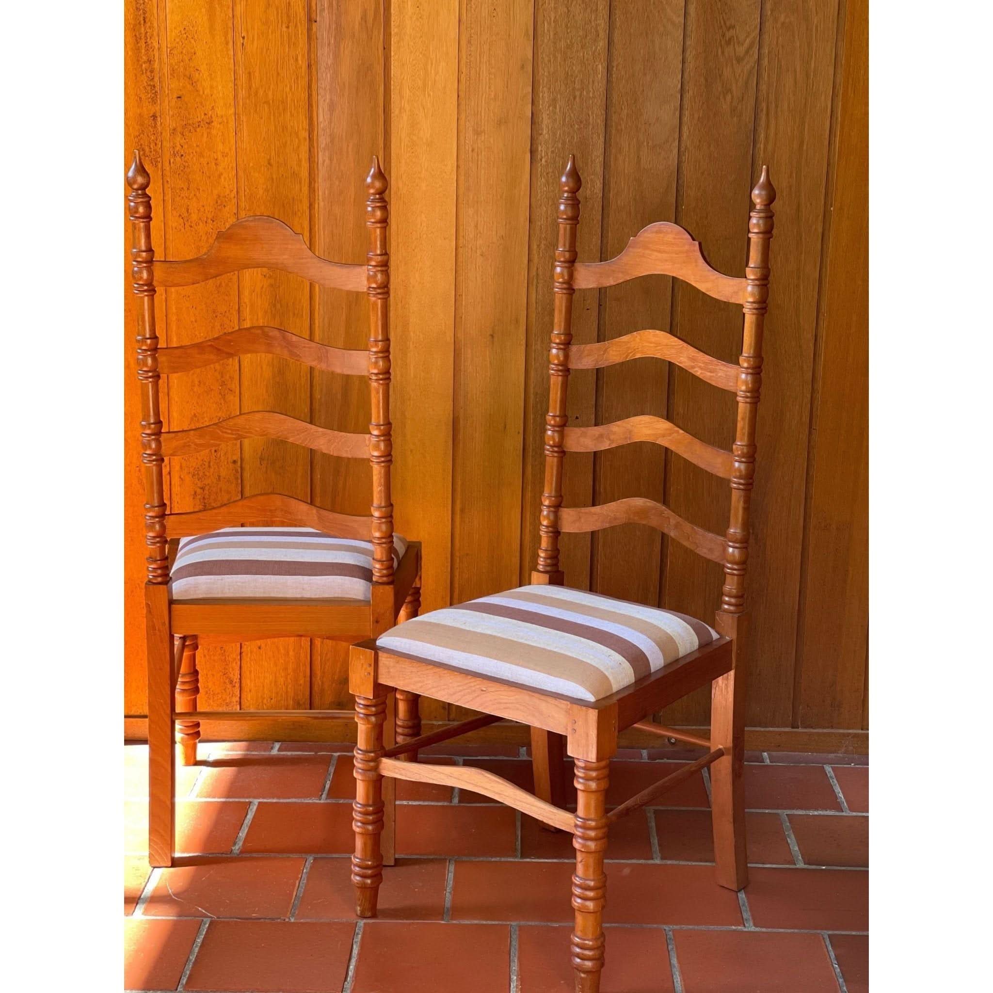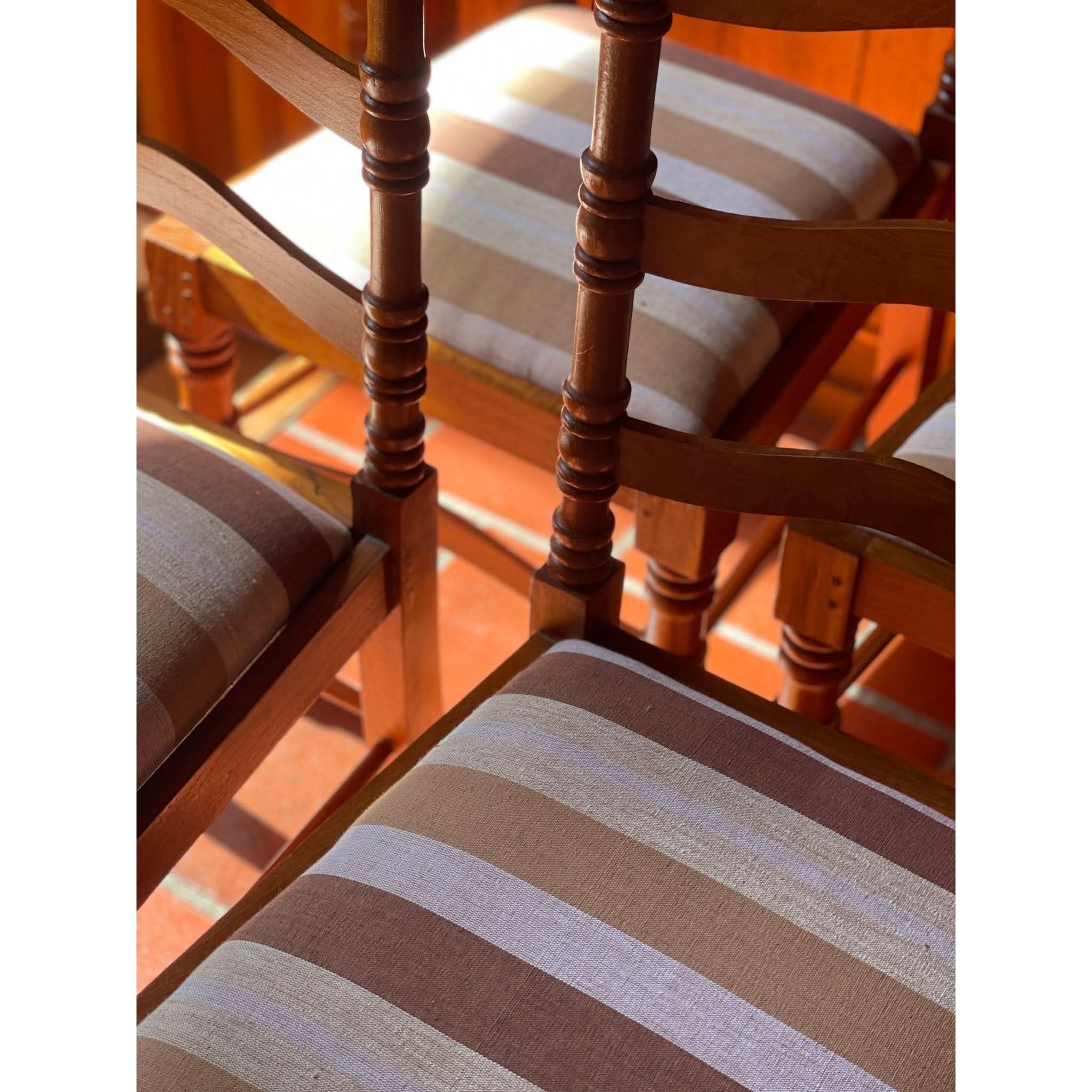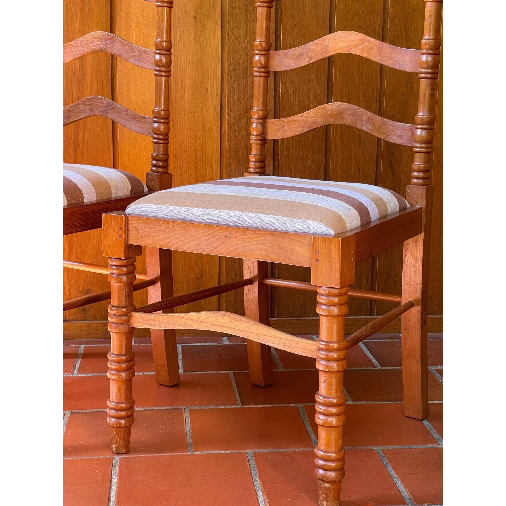 the most incredible turned timber ladderback dining chairs with new stripe upholstery to the seats. the details on these are beyond amazing!