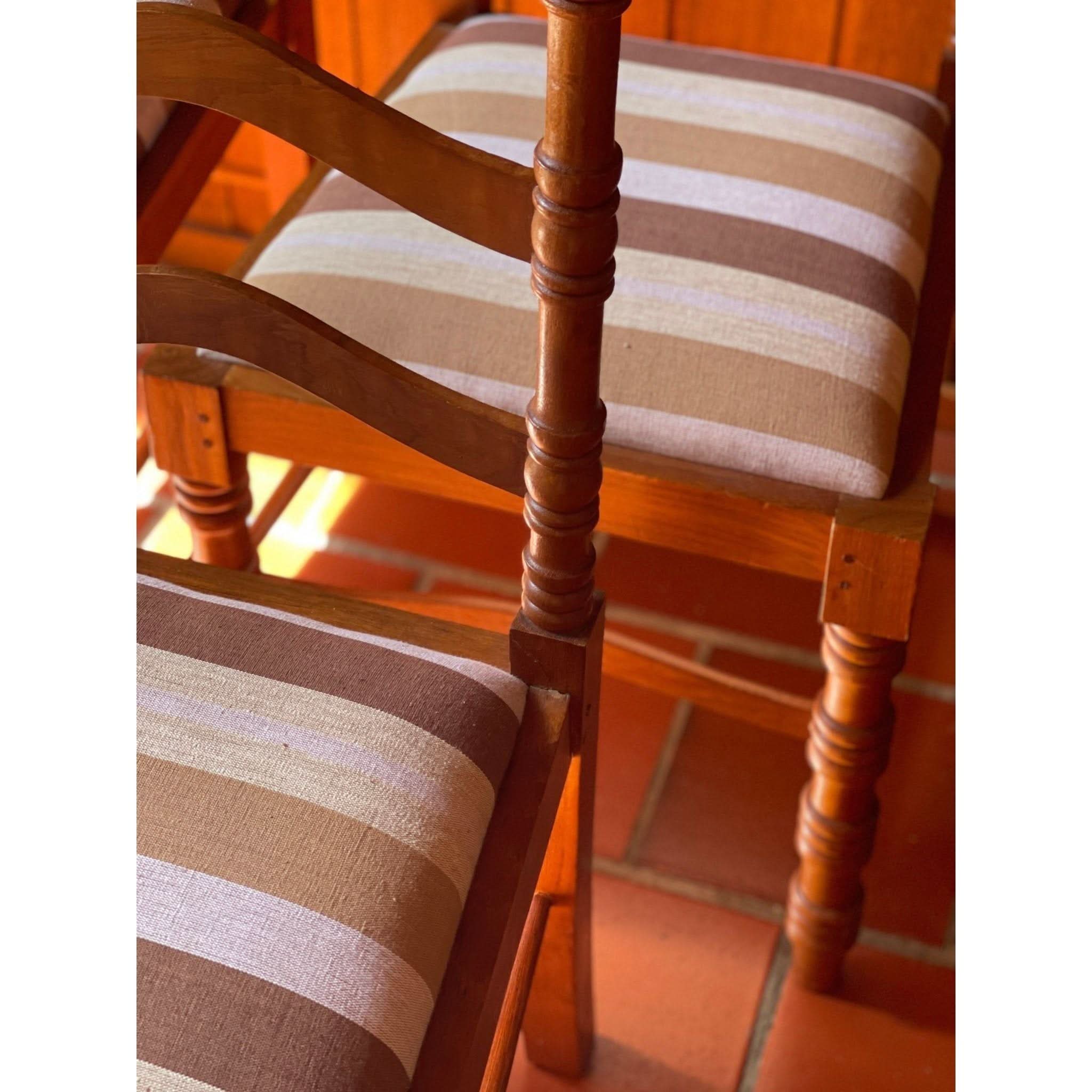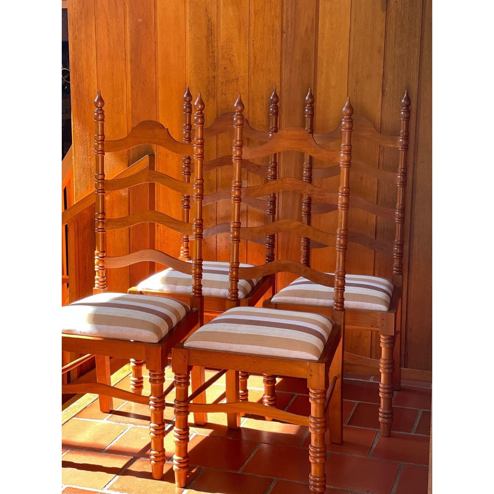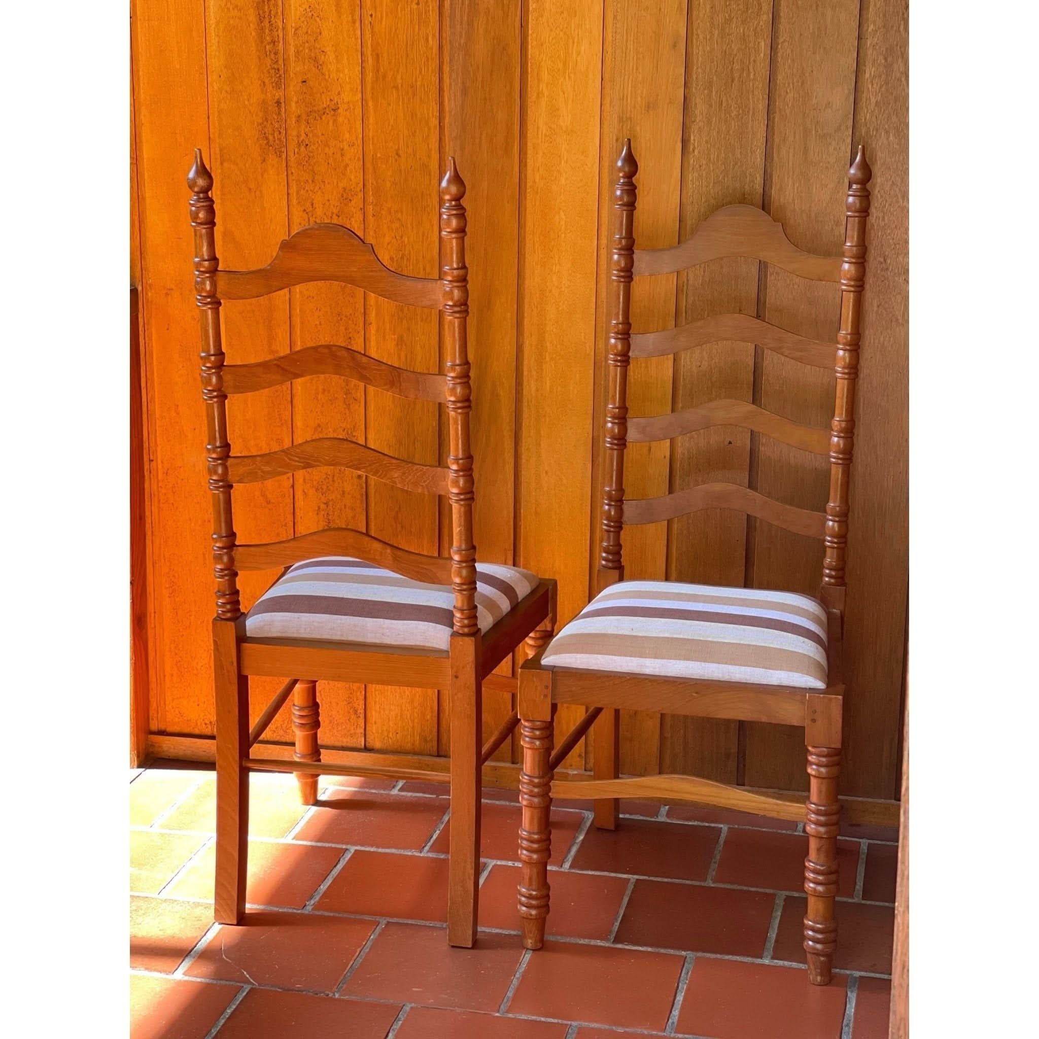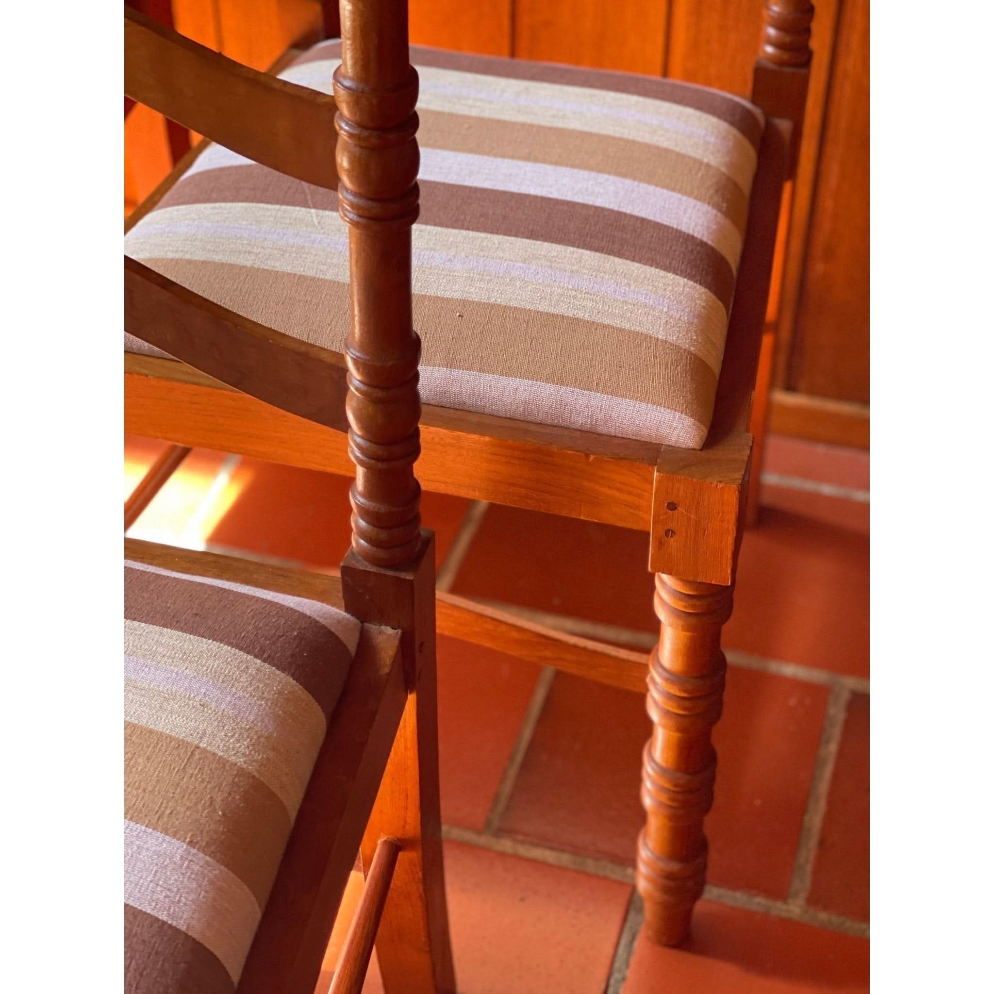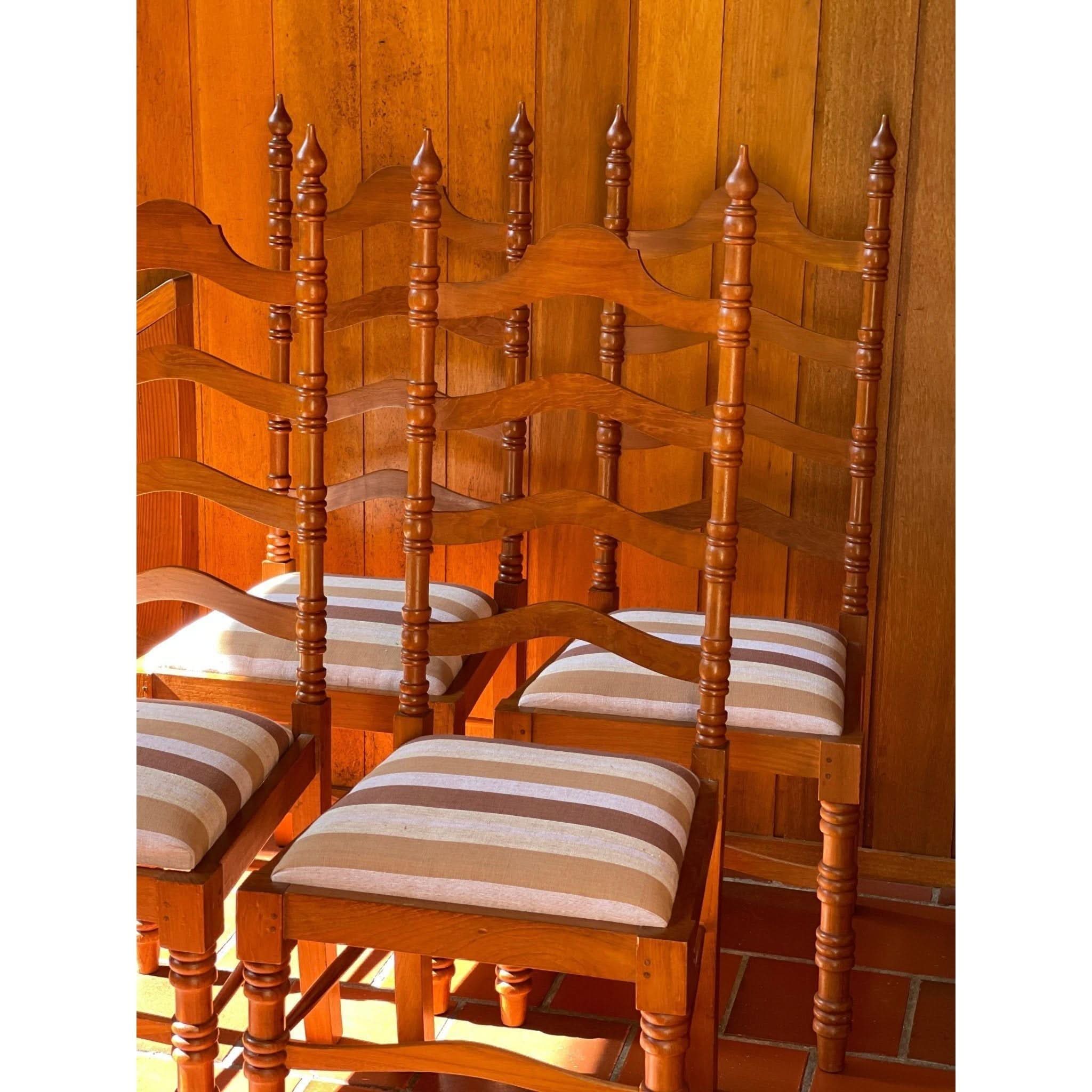 the most incredible turned timber ladderback dining chairs with new stripe upholstery to the seats. the details on these are beyond amazing!