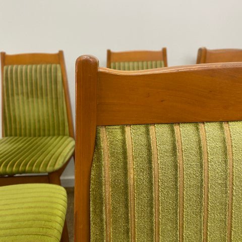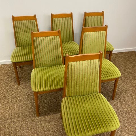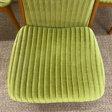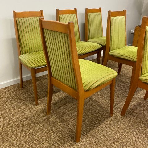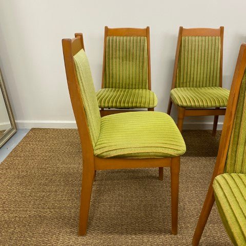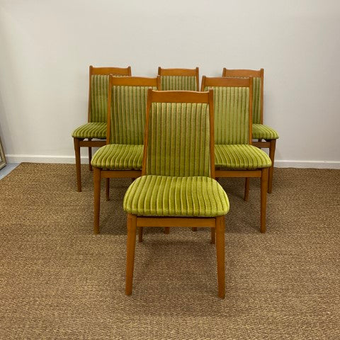 This set of Chiswell style retro dining chairs features green velvet upholstery and sleek retro-inspired frames. Their clean lines and curved backs reflect the simple yet colourful mid-century design style. Measurements listed below give overall height, seat height is 46cm.