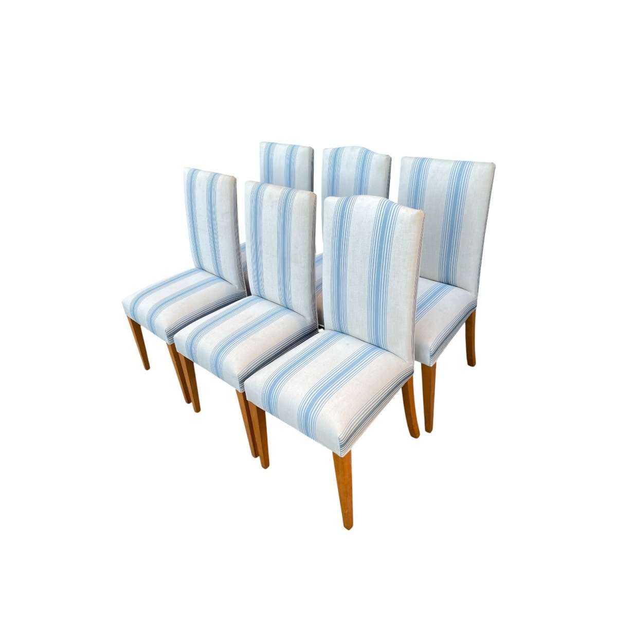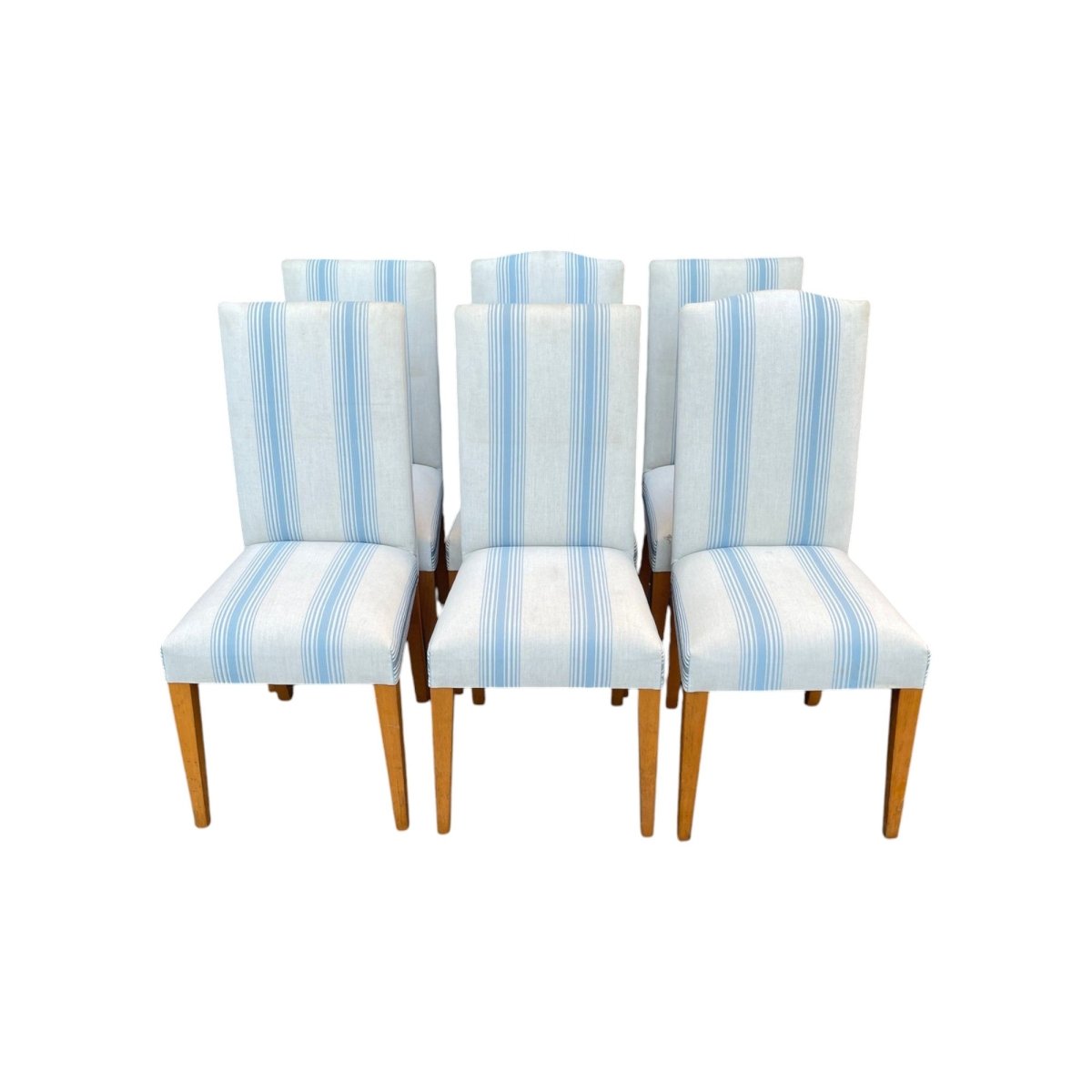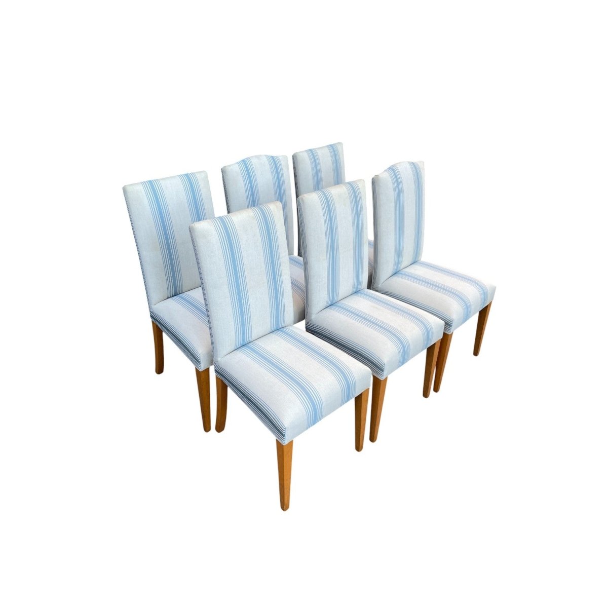 Set of 6 Upholstered Dining Chairs with Blue and White Stripes