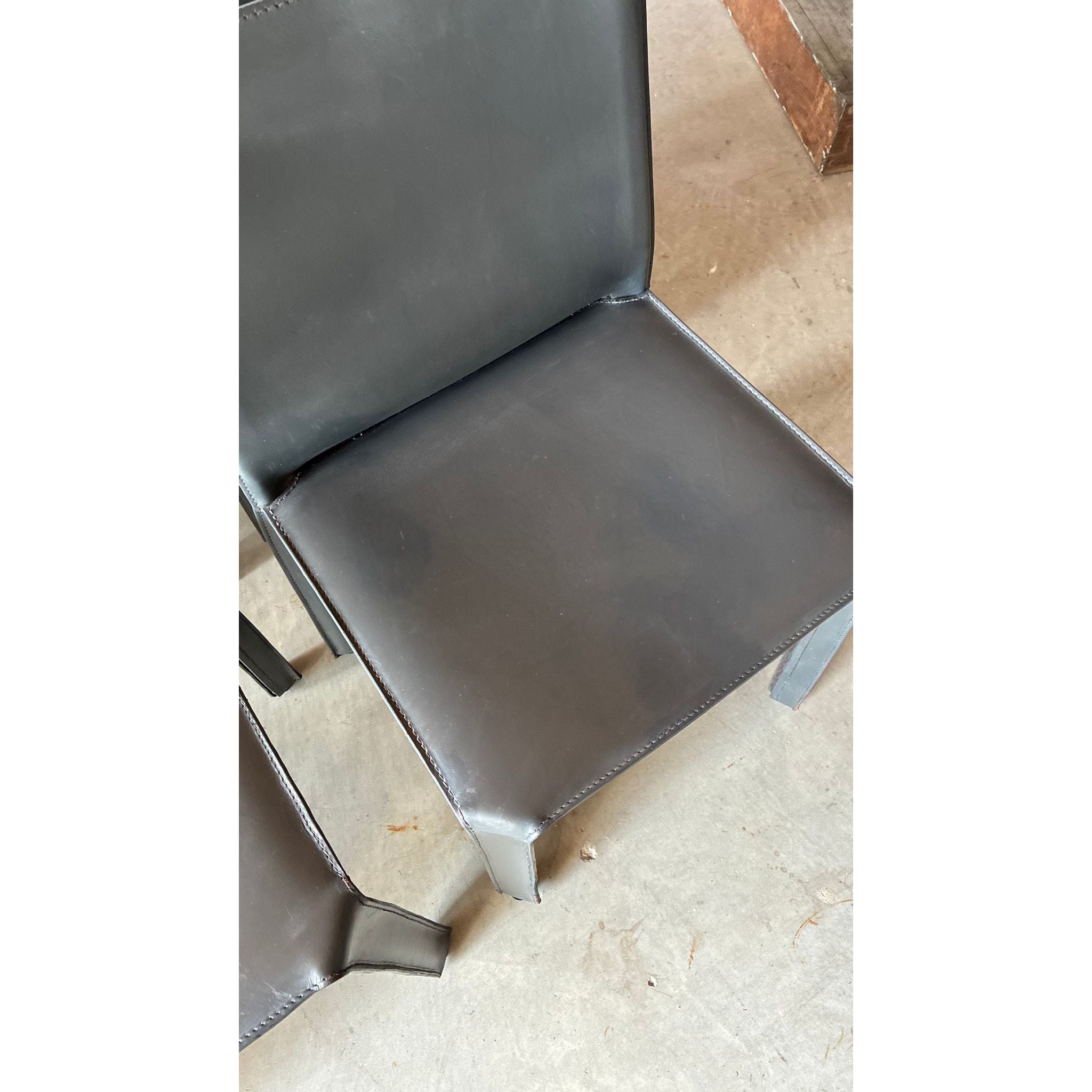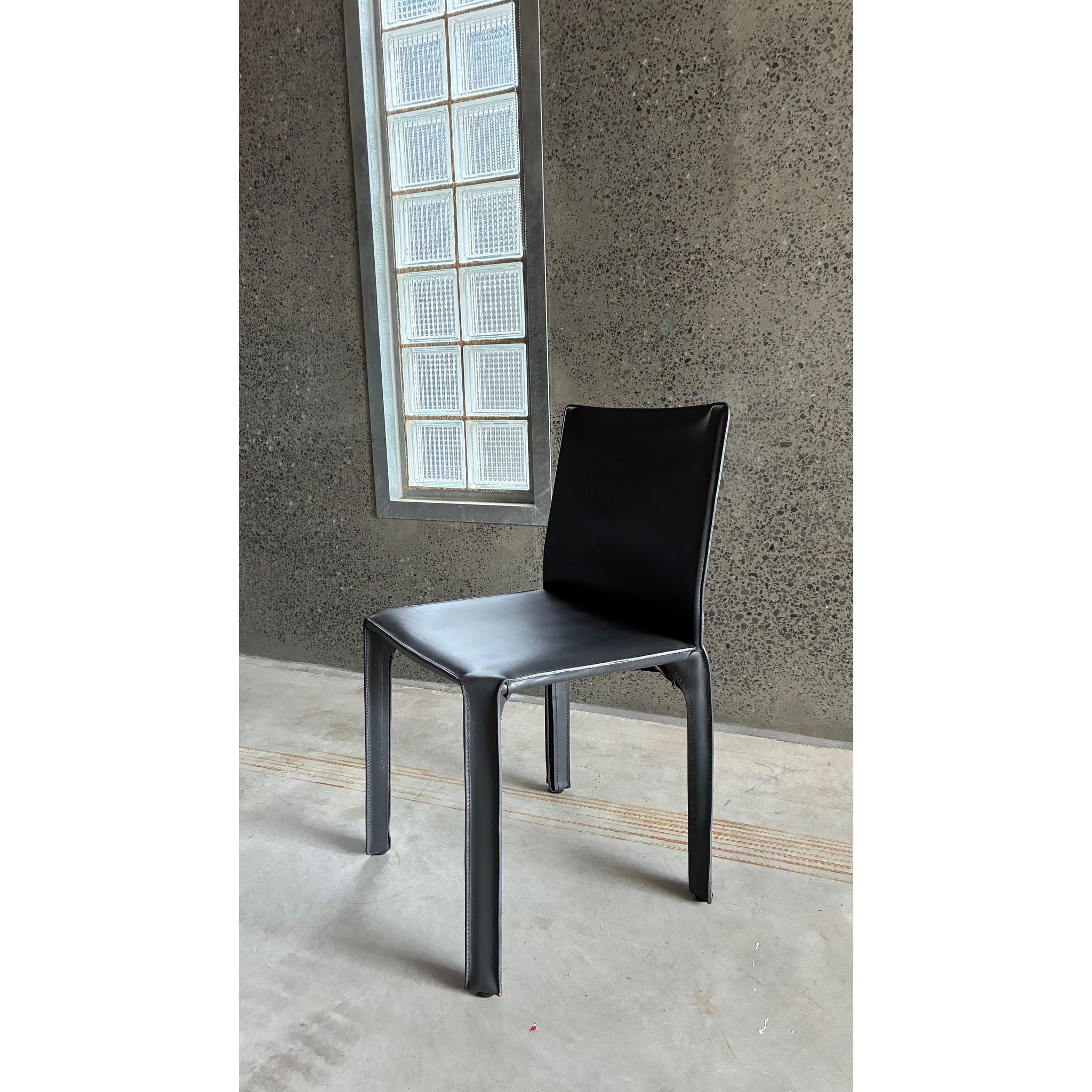 A set of eight dining chairs attributed to the influential CAB 412 chair, designed by Italian architect Mario Bellini. Known for their innovative construction; a leather skin stretched over a steel skeleton - the CAB series has become a cornerstone of late-20th century Italian design.