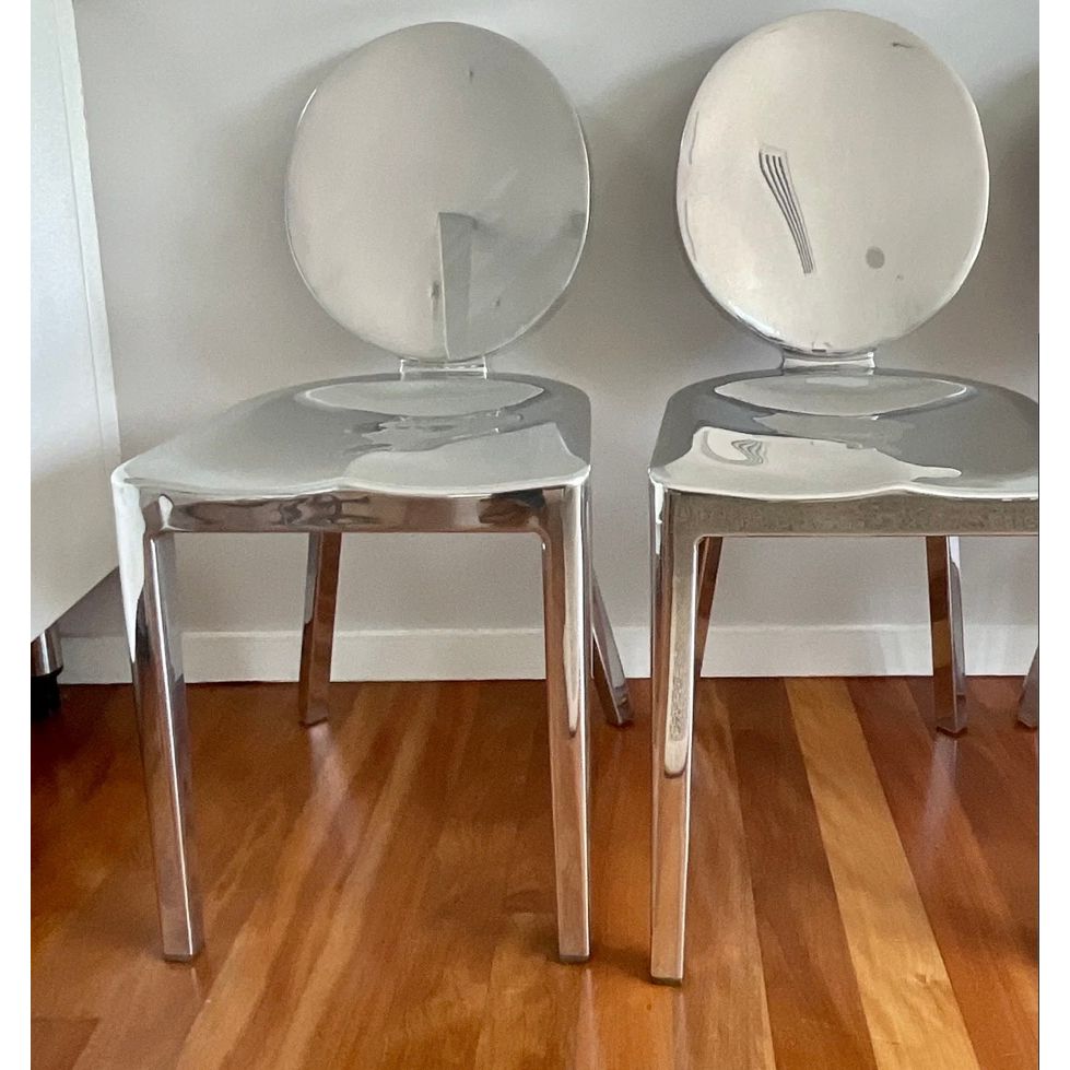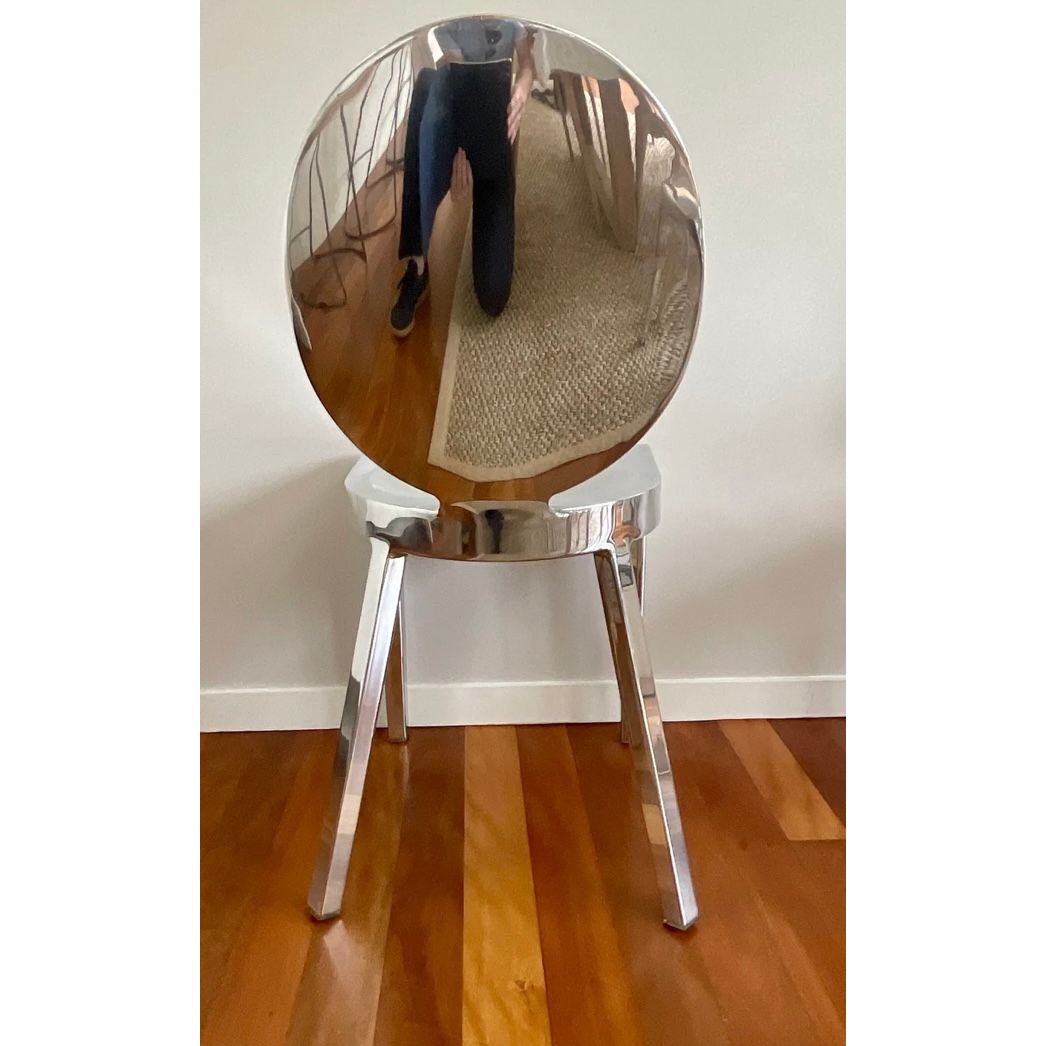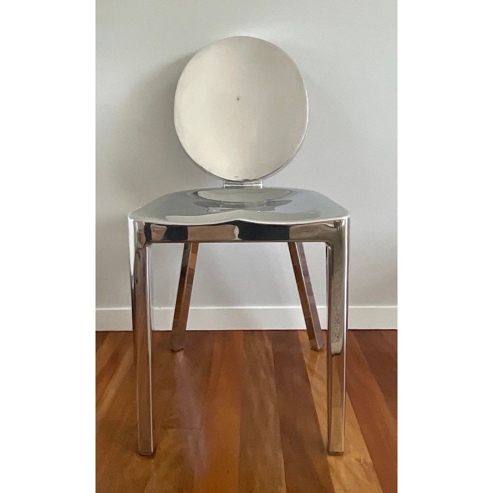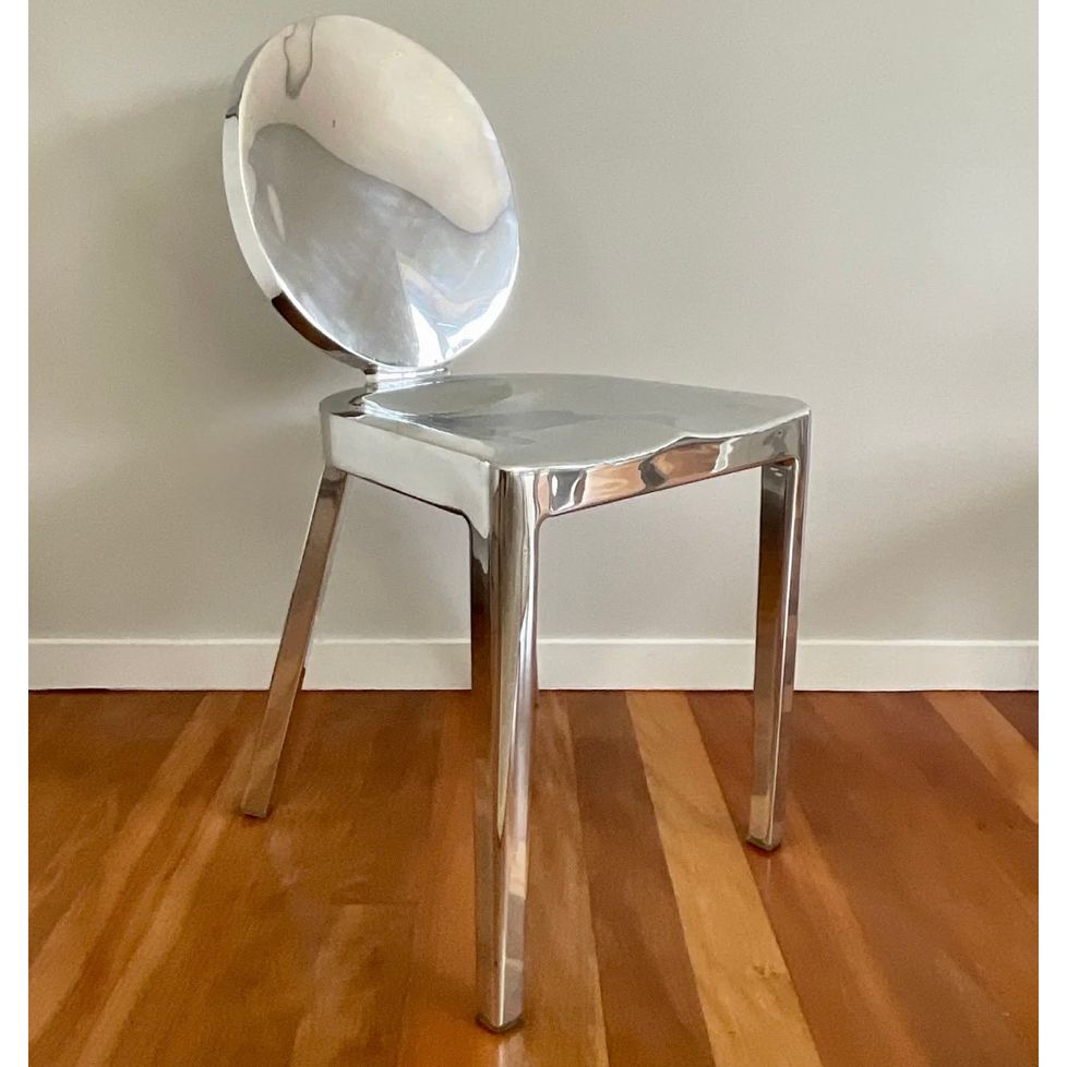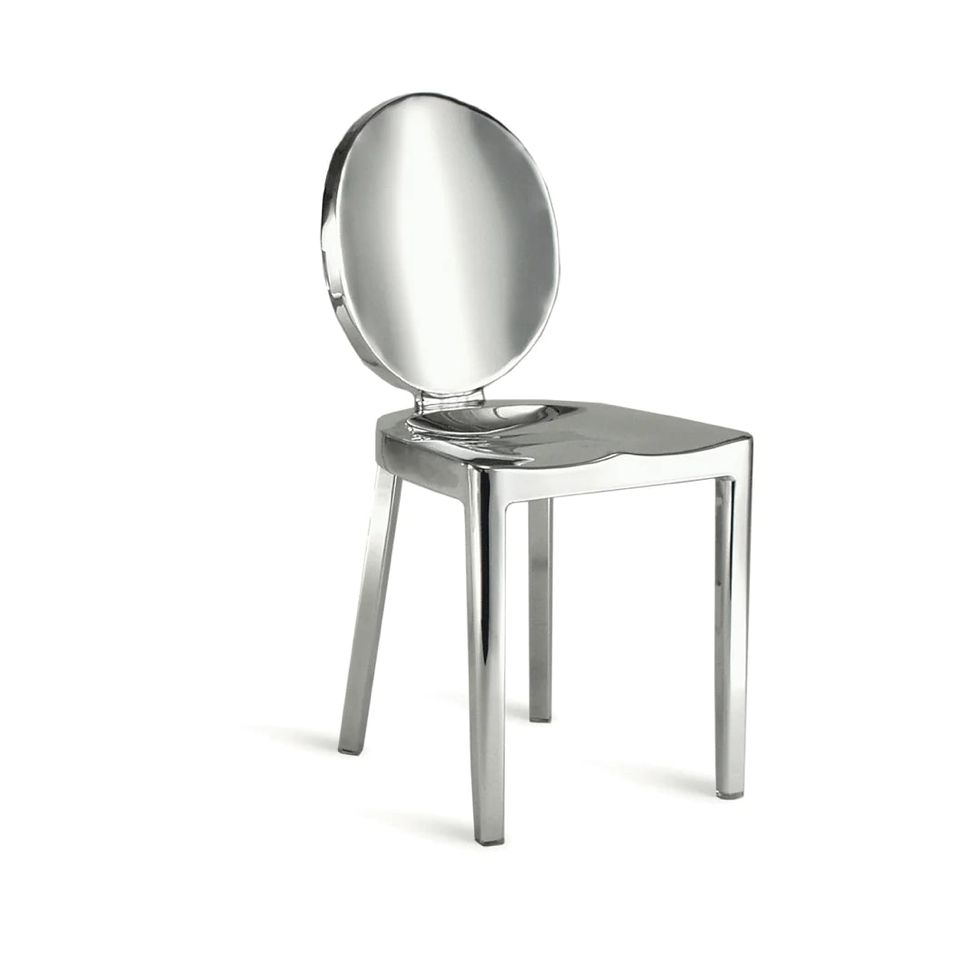 First designed for the Chinese restaurant Kong in Paris. The one armed barstool was intended to make it easy and graceful for the guests to slither in and out of the bar. Kong requires the hand welding of 24 separate pieces of aluminum, and 8 hours of hand polishing. Standard glides: soft plastic TPU glides for all-around use, including outdoor use.