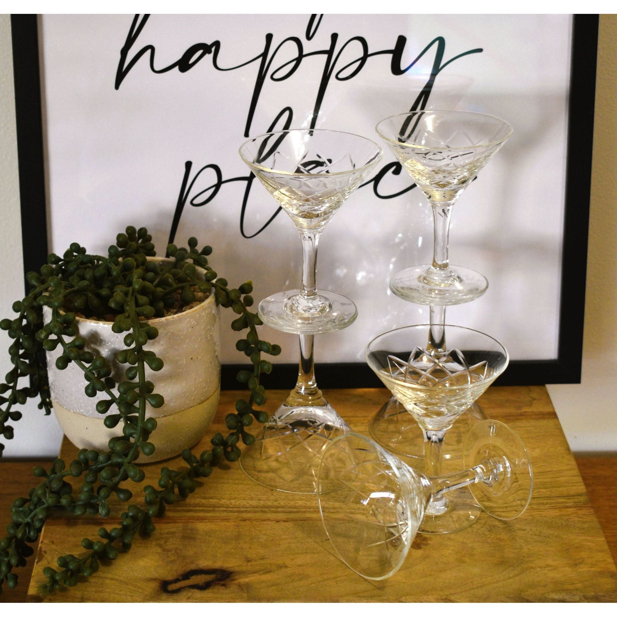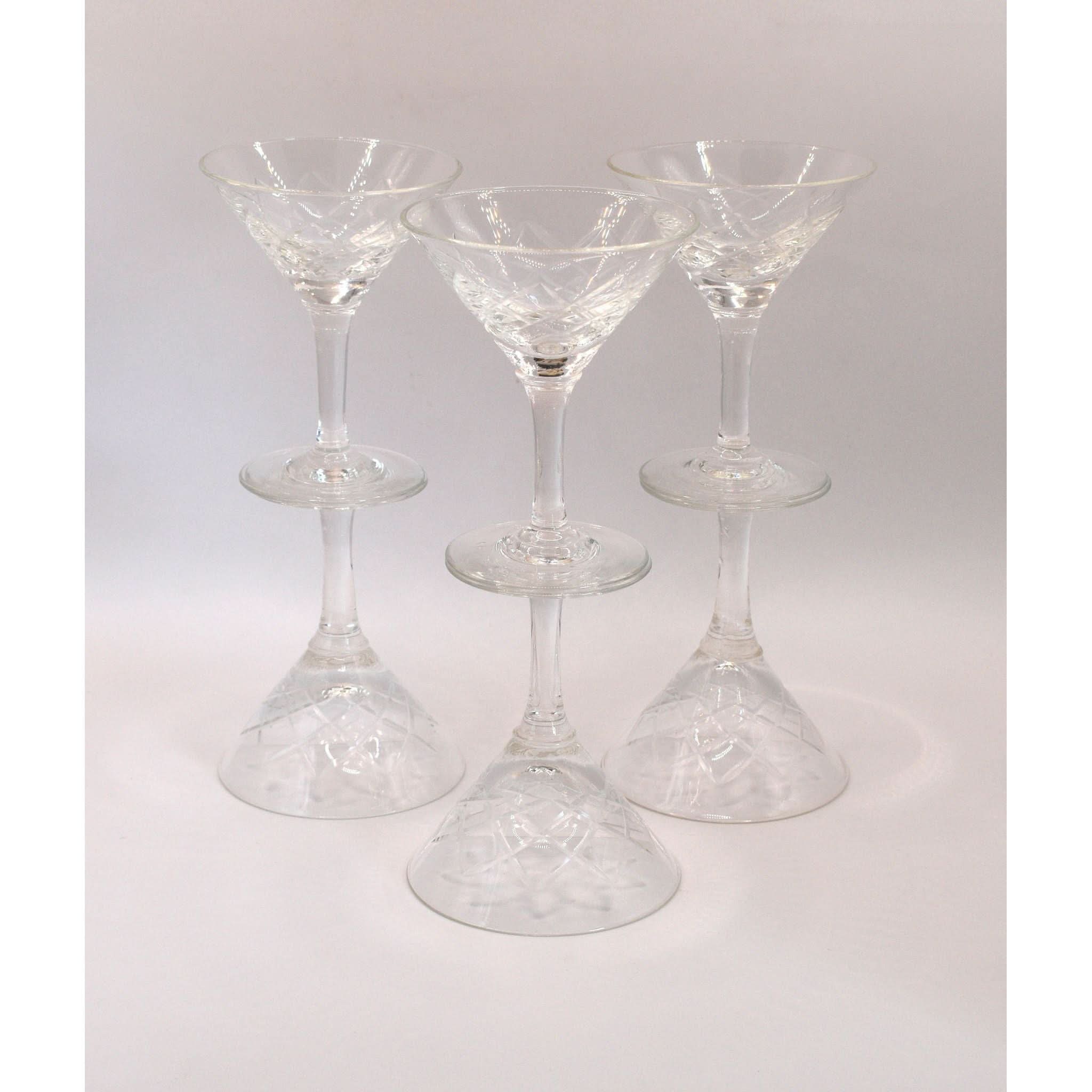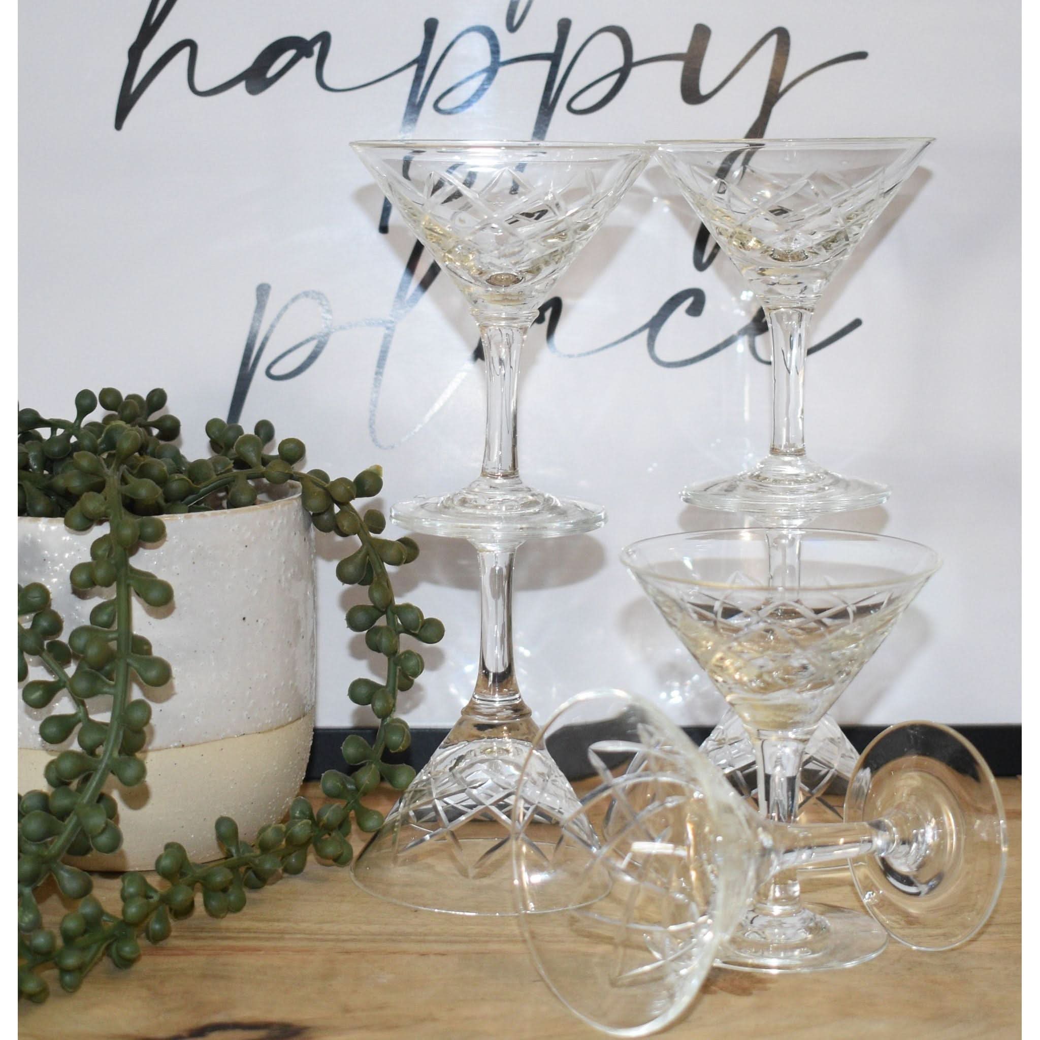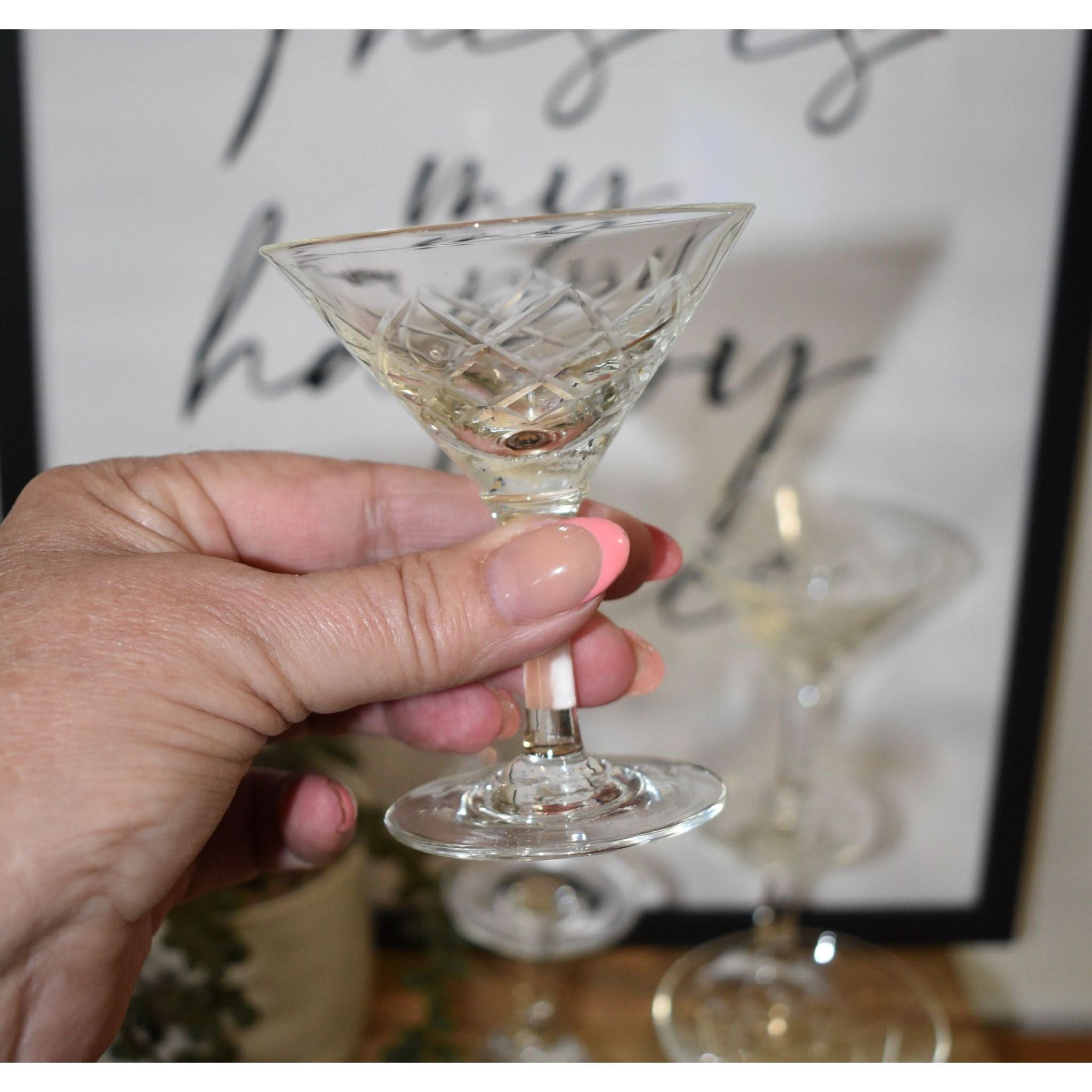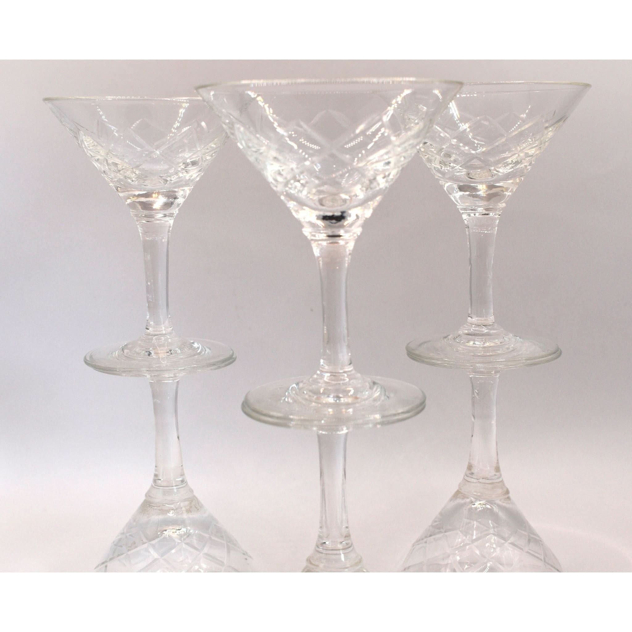 Indulge in the elegance of these vintage small martini glasses. With a classic cut design, they are the perfect addition to any dinner party. Whether you prefer liquors or sherry, these glasses will elevate your drinking experience. Don't be fooled by their size, as they are sure to make a statement and impress your guests!
