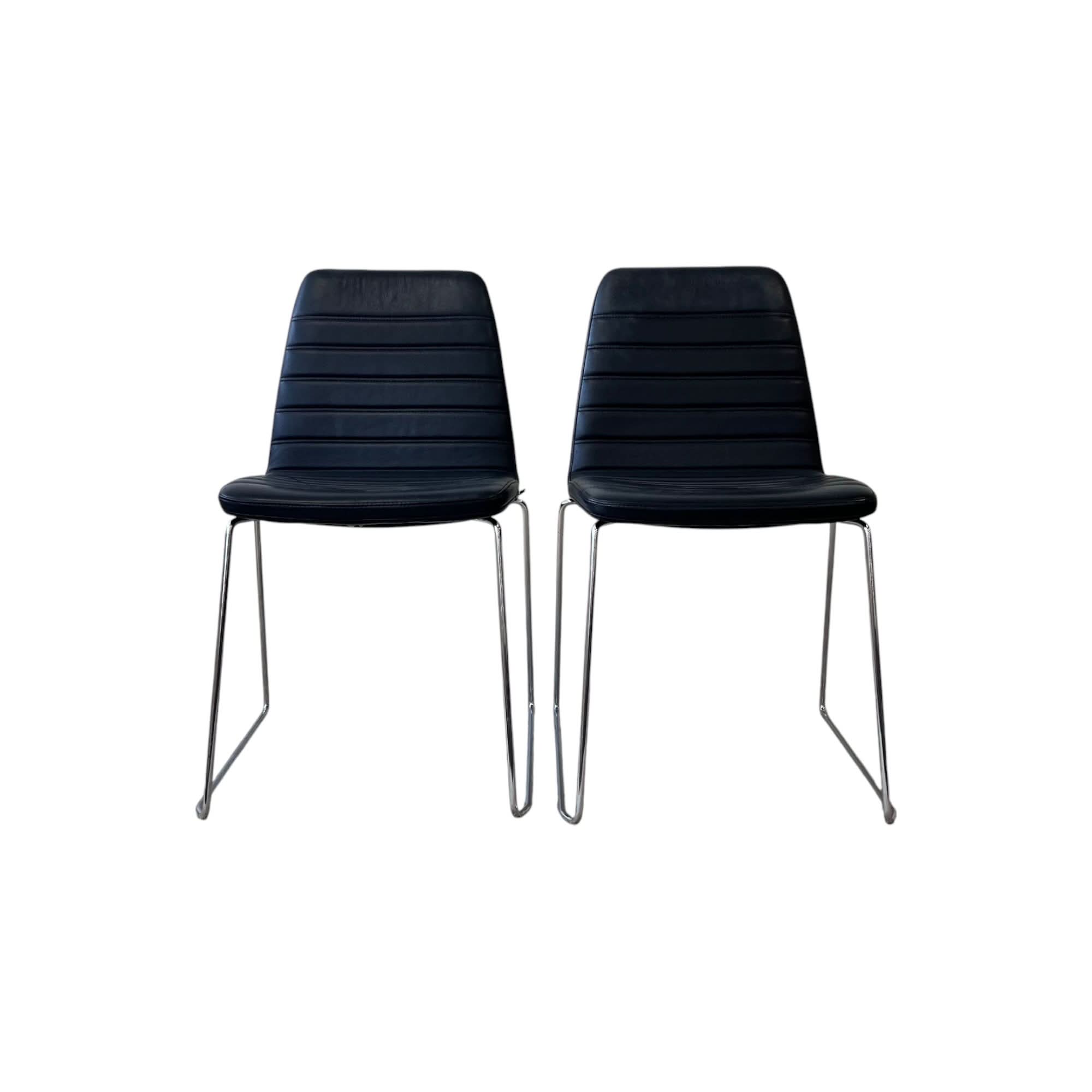 The Spinal Chair 44 series was designed by Danish architect & designer Paul Leroy for Paustian. This contemporary chair has a timeless, sleek and international expression and is great as a very comfortable meeting, visitor chair or dining chair. These chairs feature horizontal channel stitching detail and chrome runner legs which suits any modern interior space.