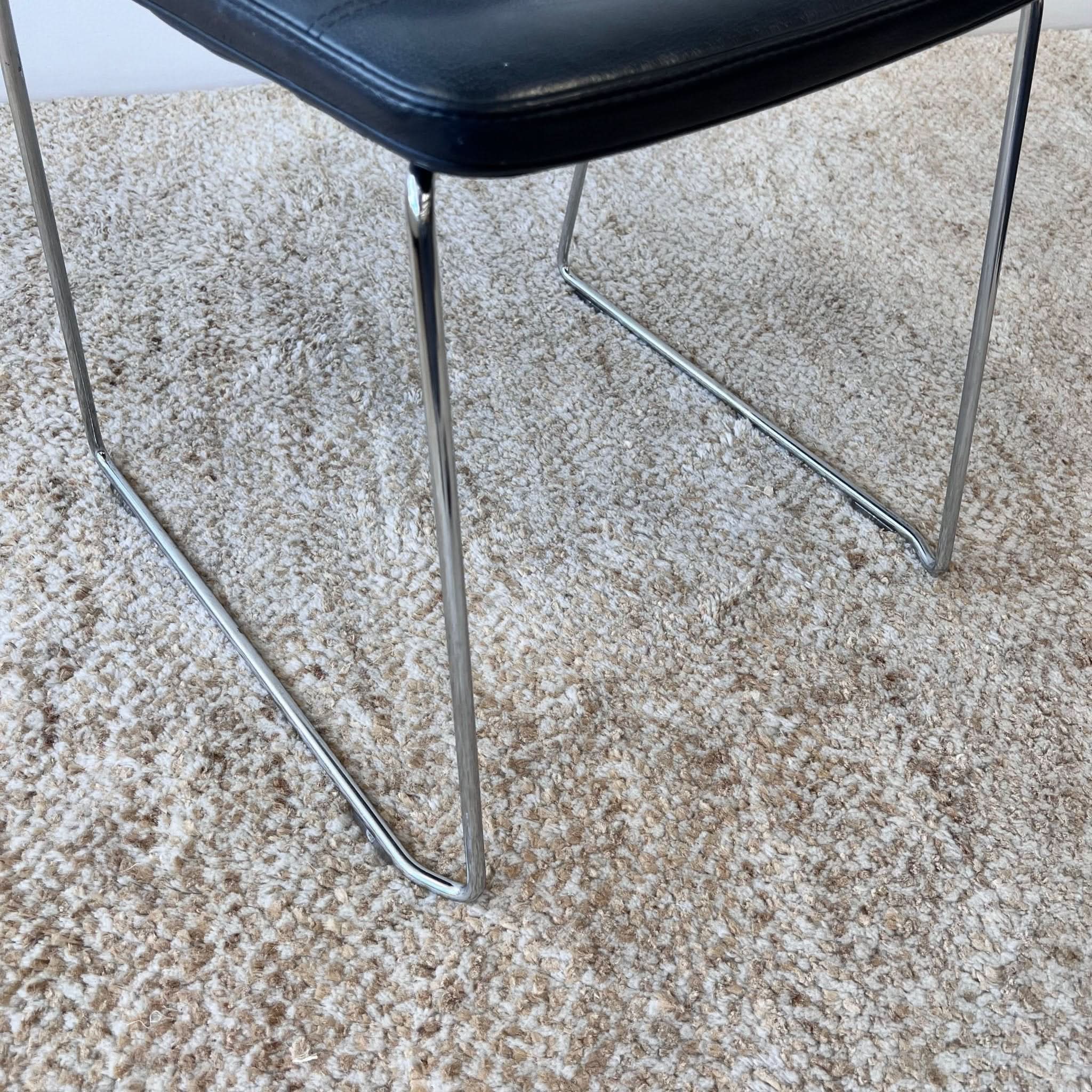 Materials: Wooden shell upholstered in leather with channel stitching; Chrome runner legs