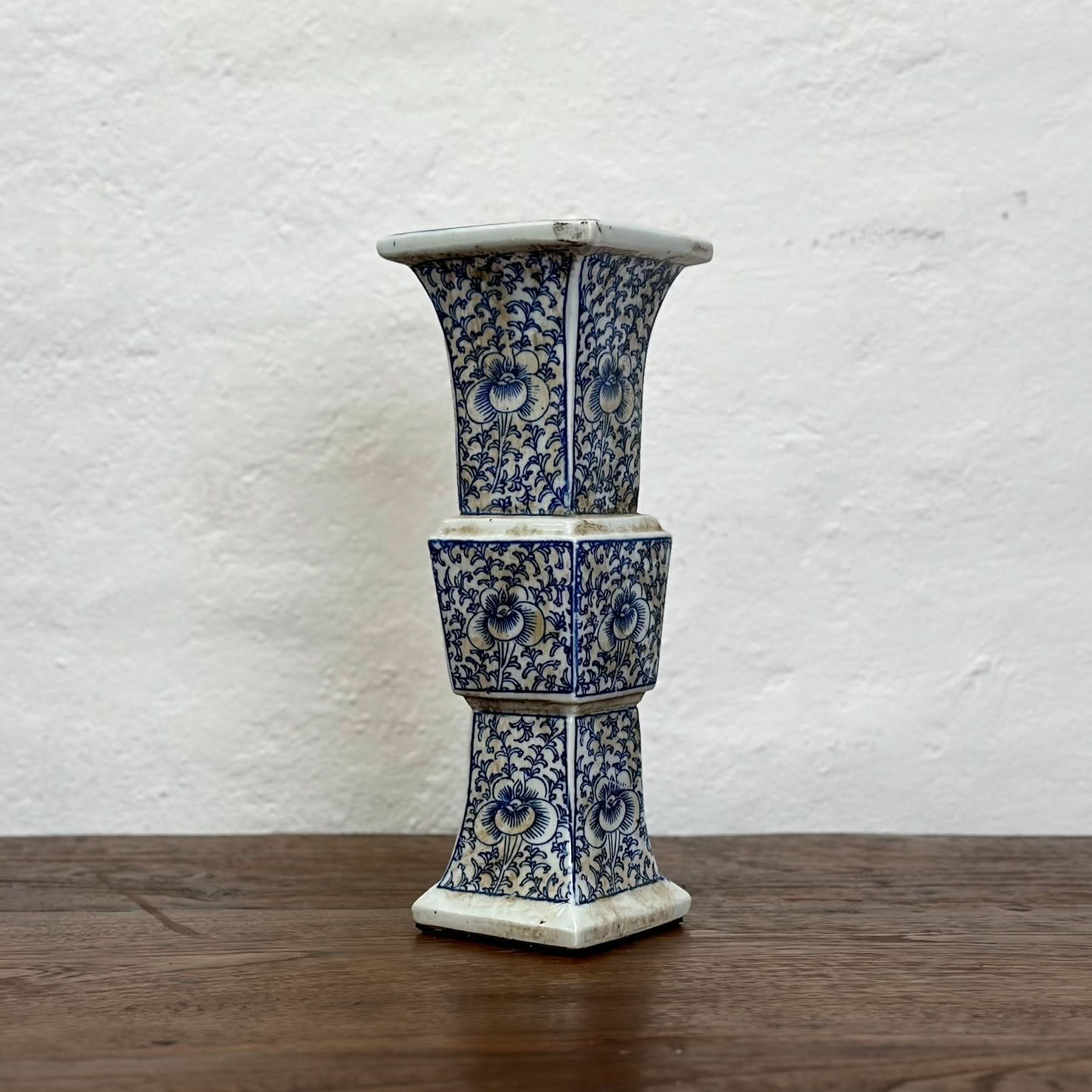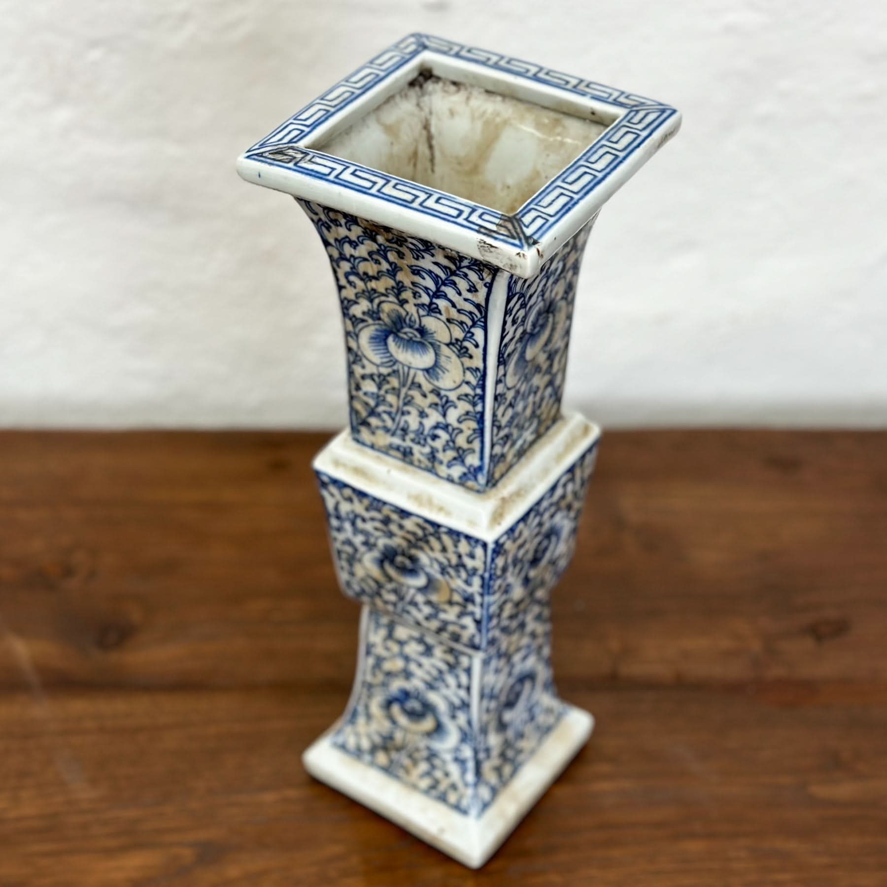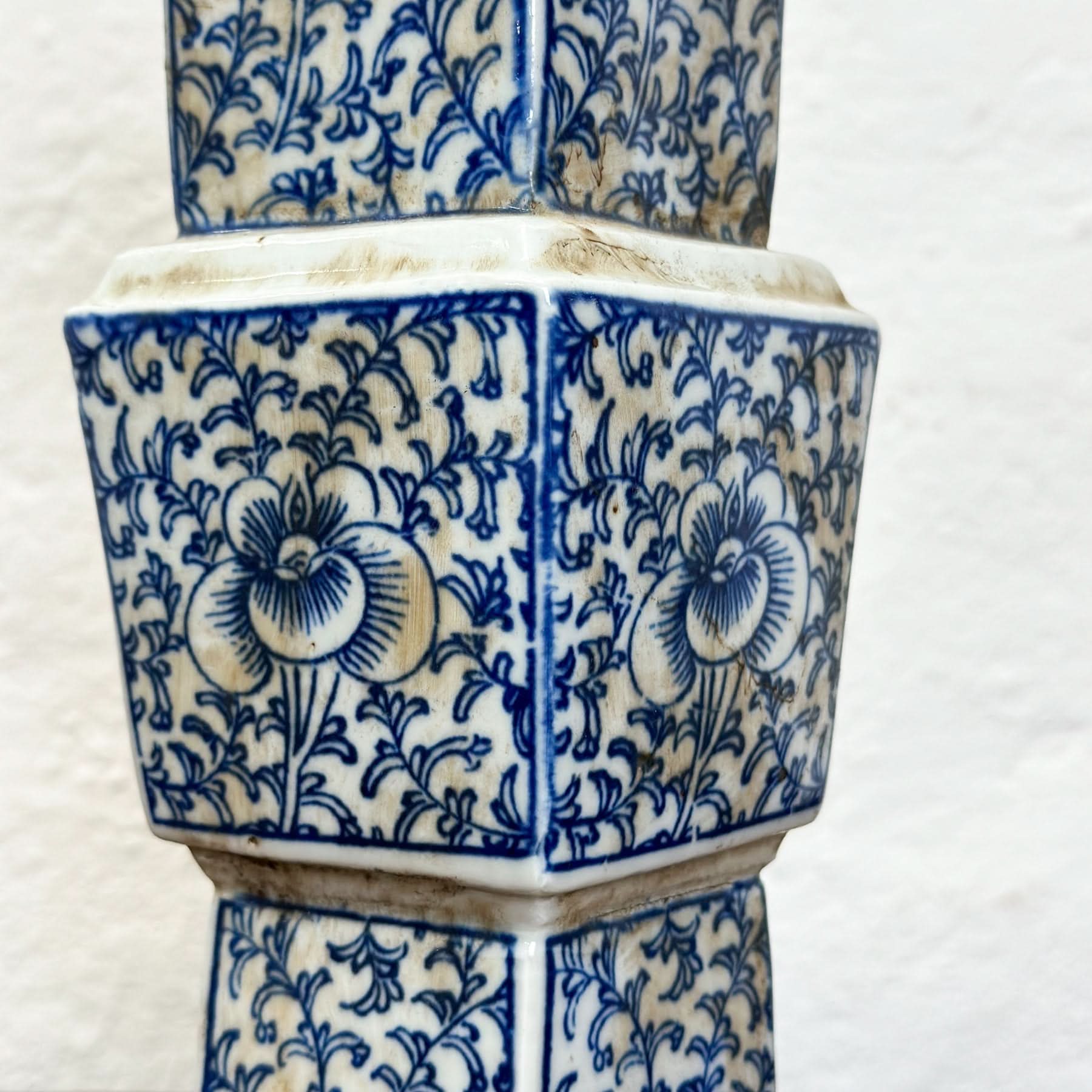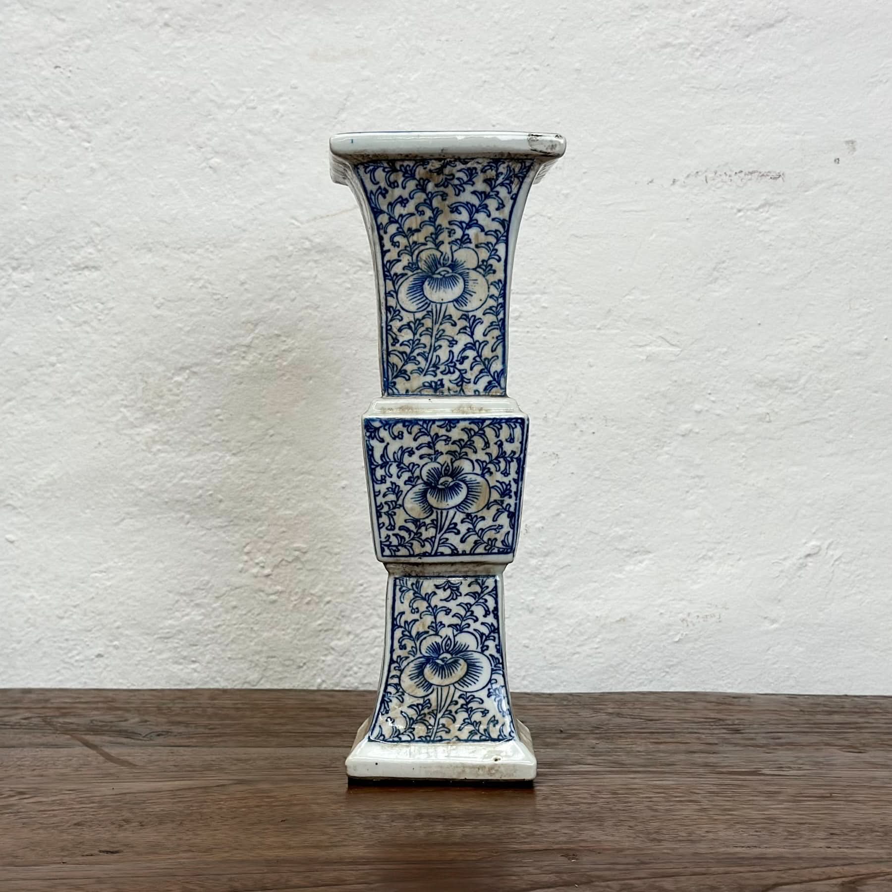 This powerful linear piece uses the same rampant vine and the still point of the centre the peony which anchors the exuberant character of this vase painter’s design. It is a dramatic work and paired with the round candleholders make a striking conversation piece.