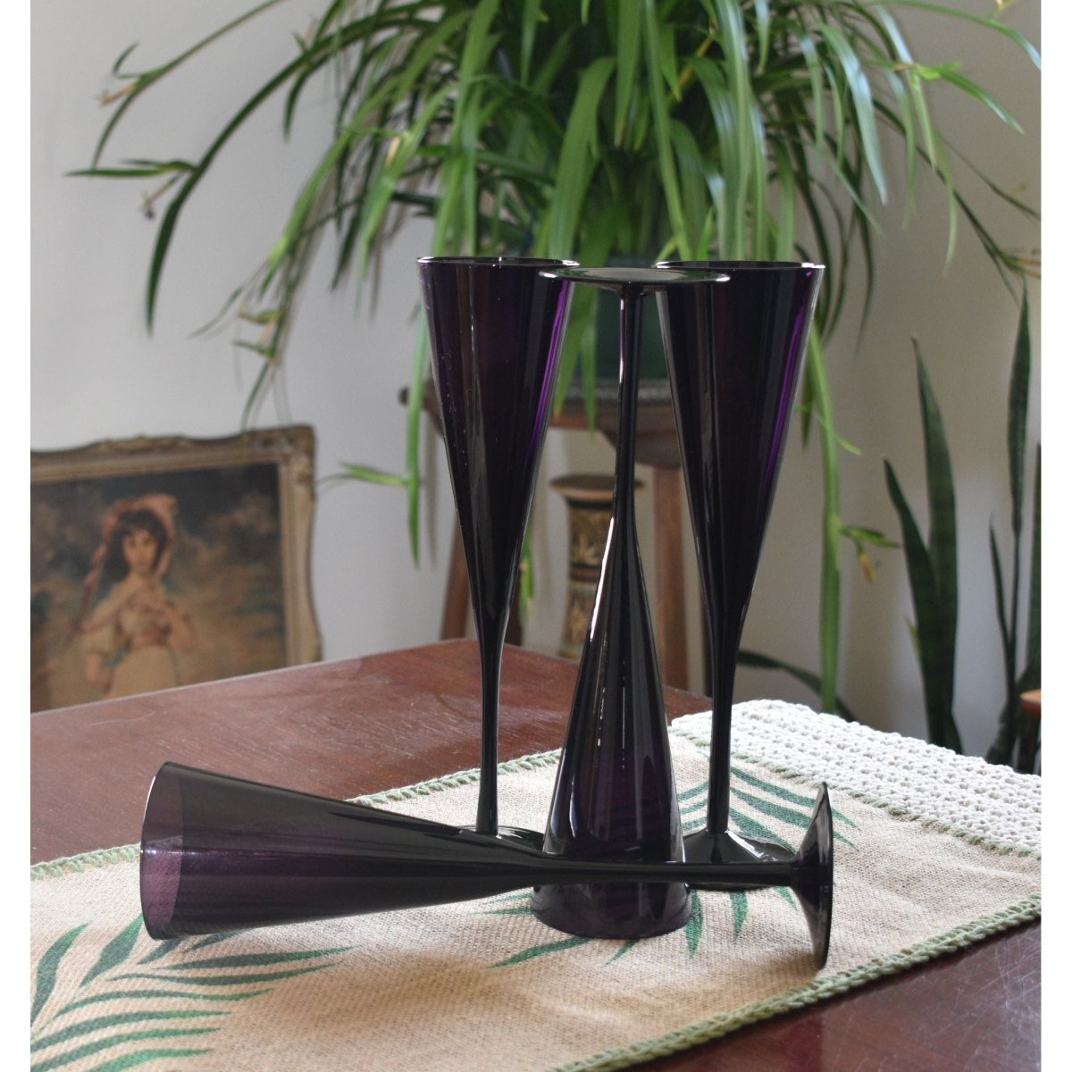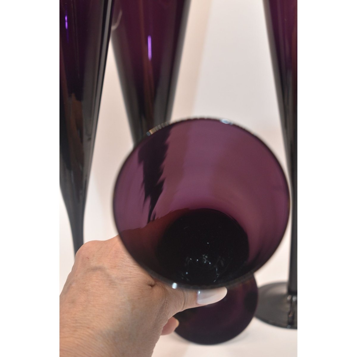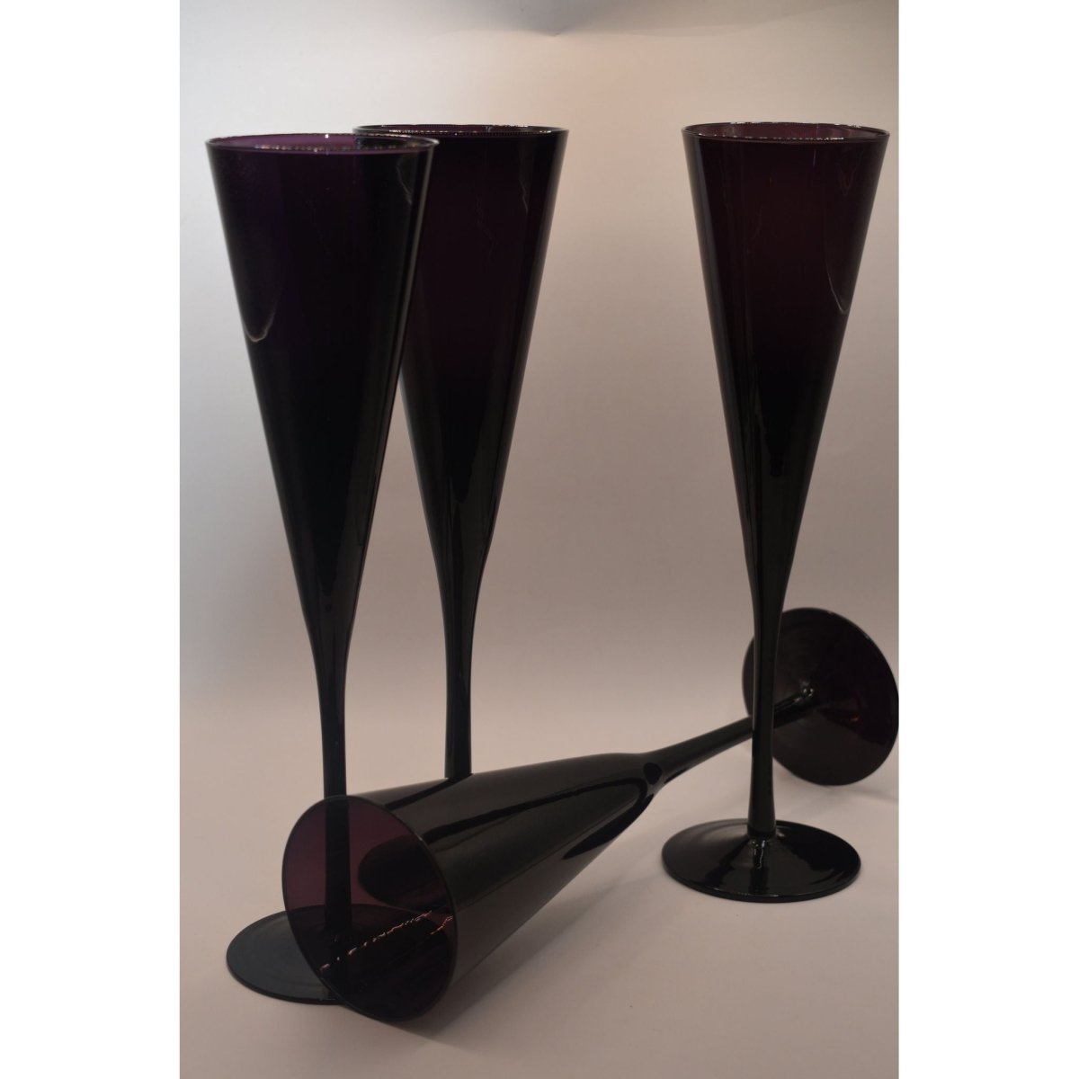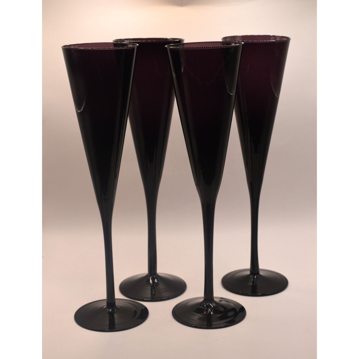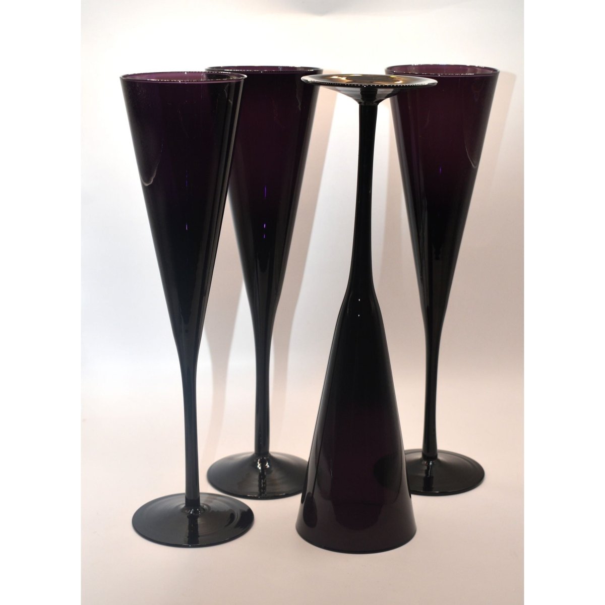 Raise a toast in style with this fabulous set of 4 tall stemmed champagne flutes that bring serious glamour to your glassware collection. Featuring a chic trumpet silhouette and striking deep amethyst purple, these beauties are perfect for celebrating life's special moments—whether you're sipping bubbly on a Friday night or hosting an elegant dinner party. The elongated stems add a touch of sophistication while the jewel-toned colour makes every pour feel like an occasion. Transform your celebrations with a splash of purple perfection.