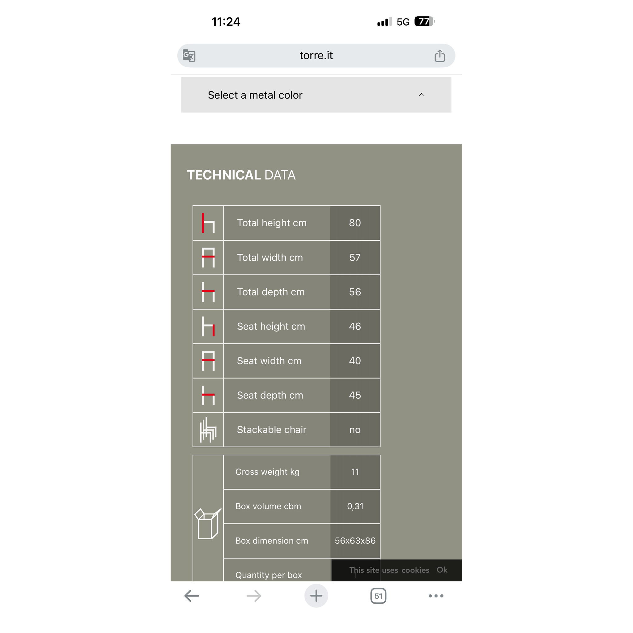 W 54cm x L 58cm x H 79cm