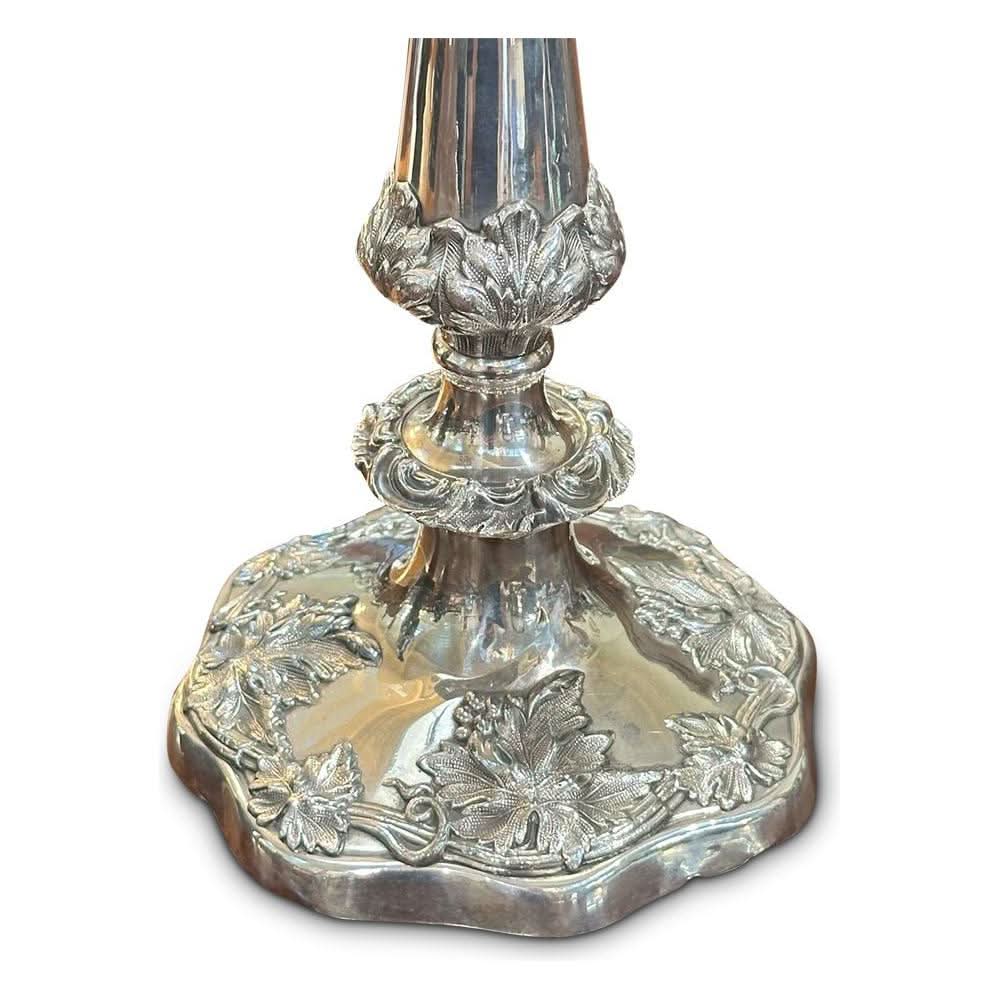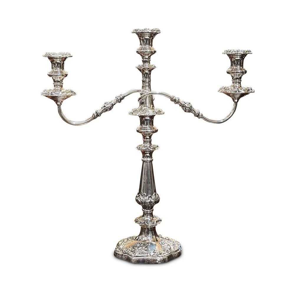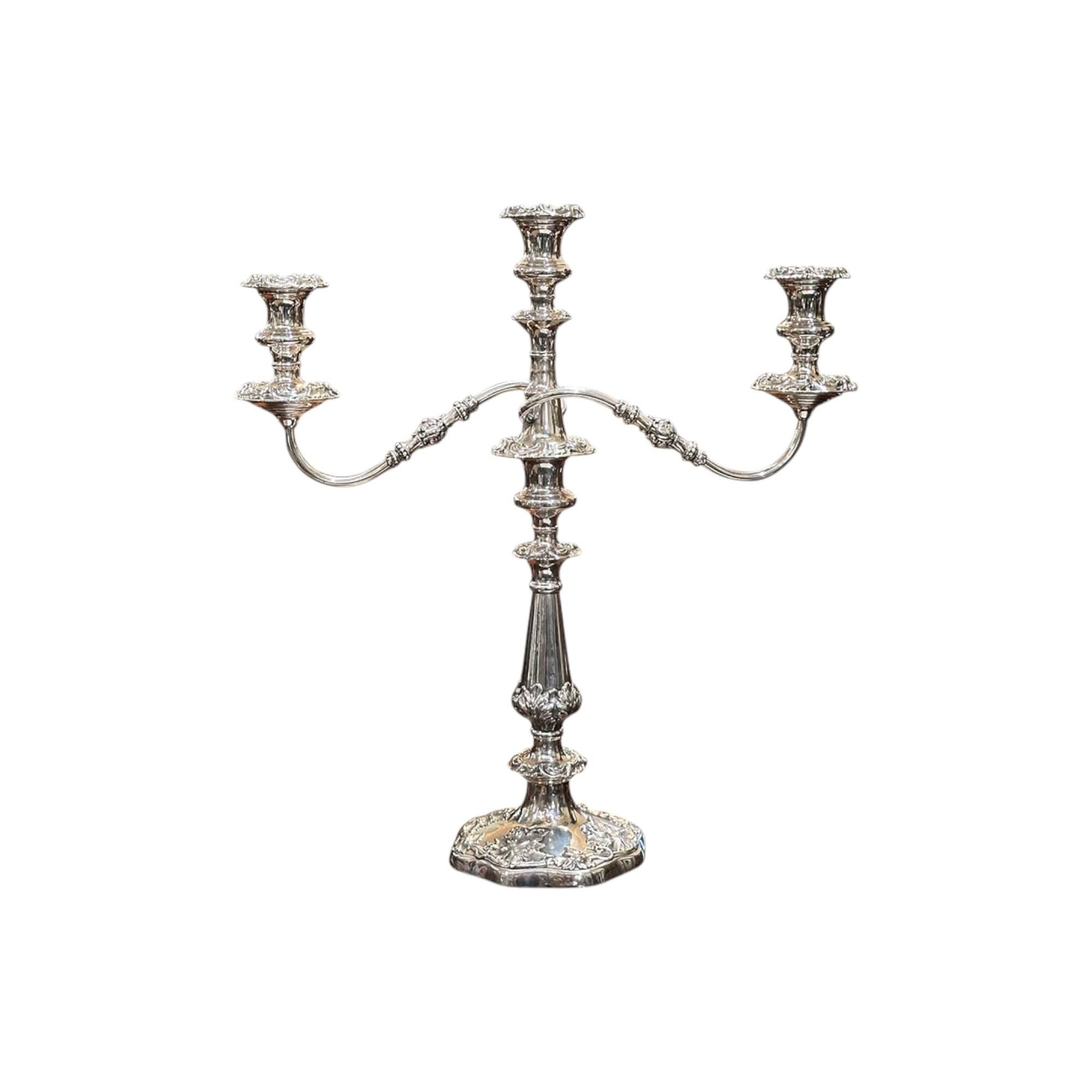 Crafted in England from a quality silver plate, this candelabra would make a stunning centrepiece for your dining room table. It features a central candle holder, and two branches that reach elegantly to either side. The base has been beautifully cast with floral details, and has a good weight.