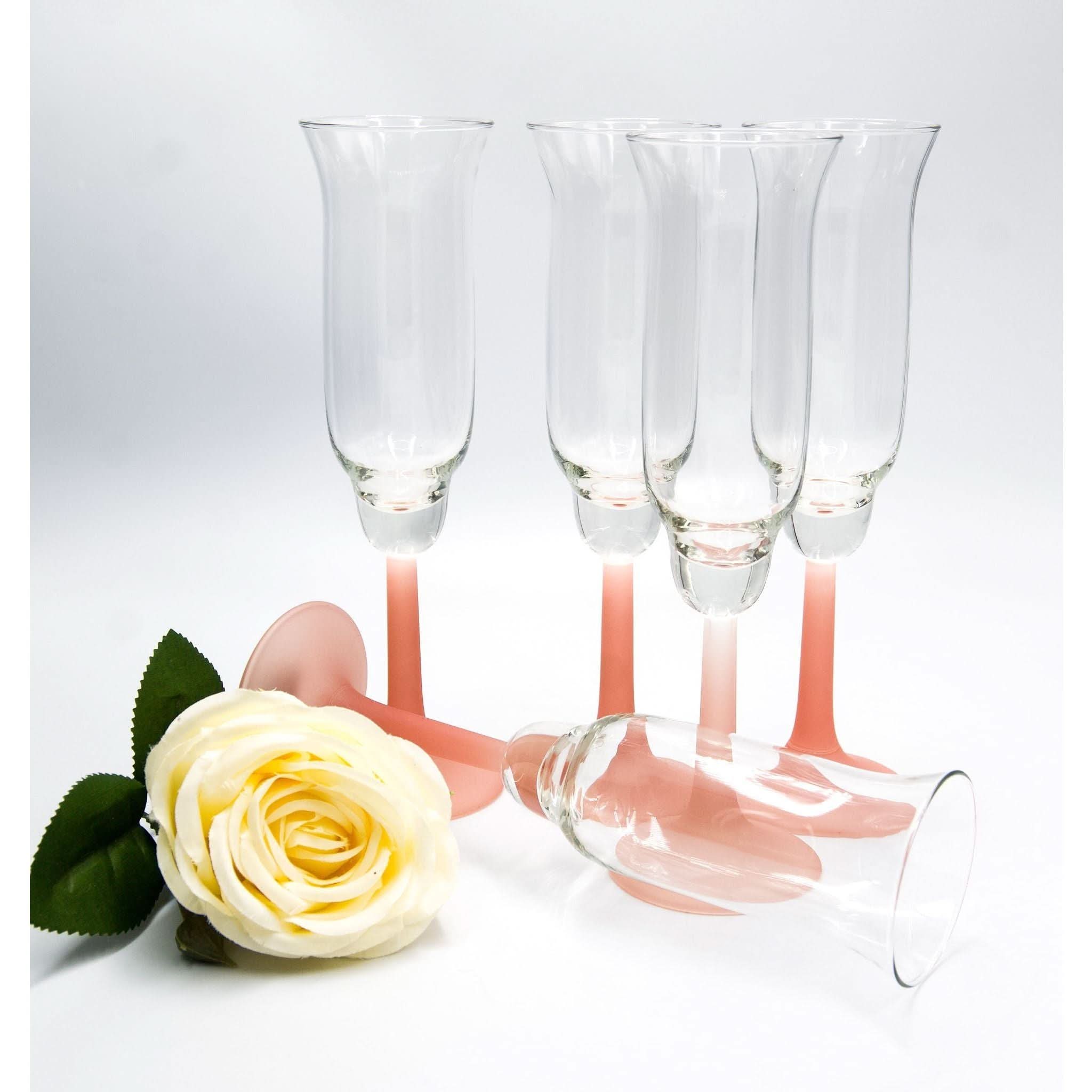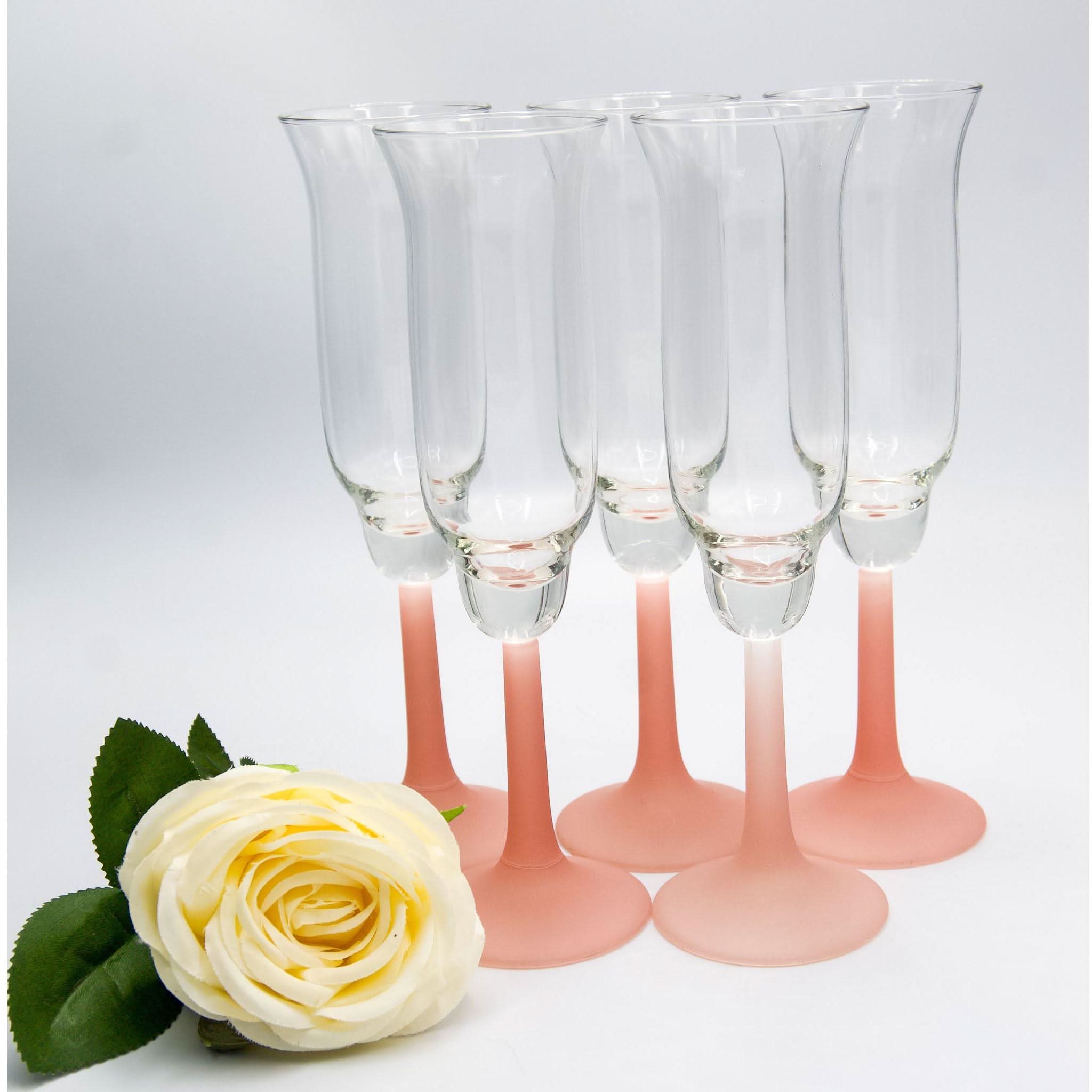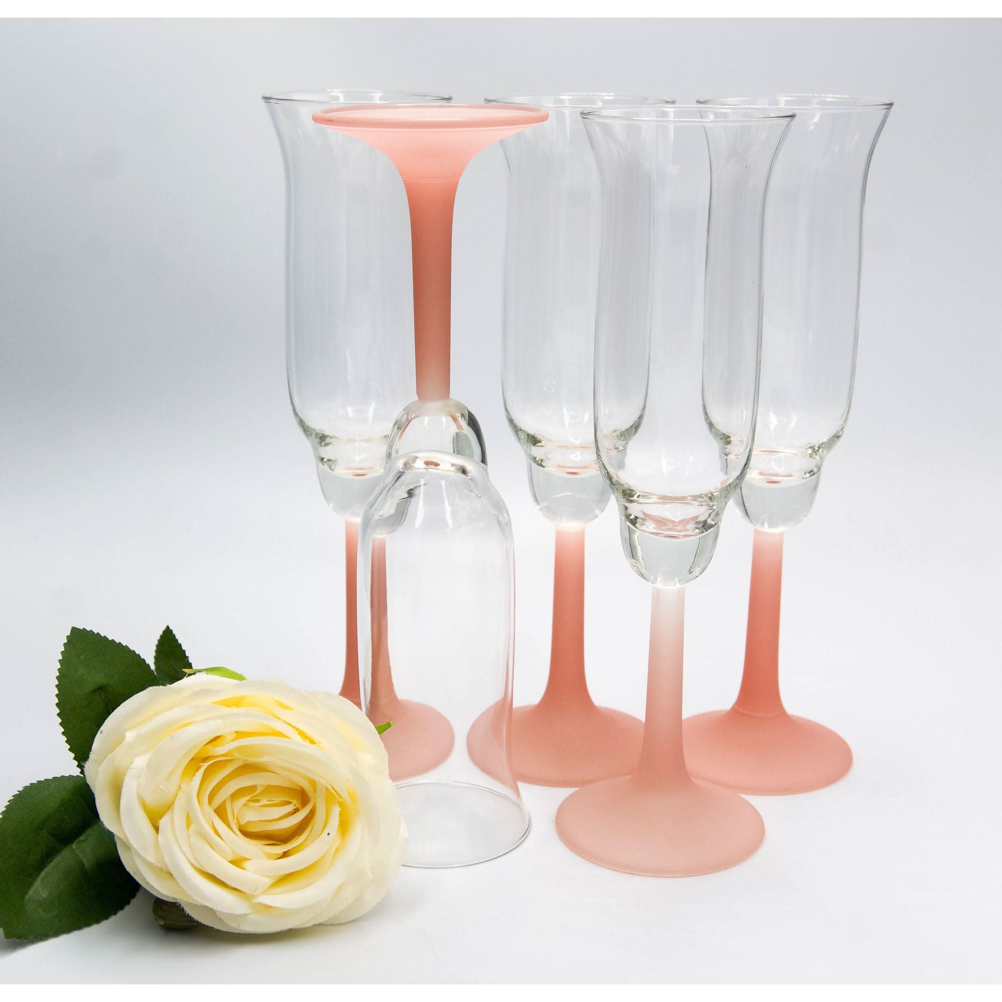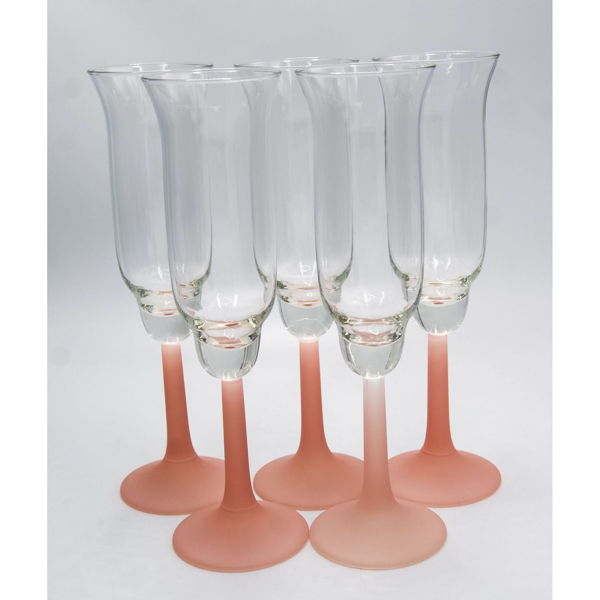 Indulge in a luxurious and timeless drinking experience with these stunning Vintage Frosted Pink Stemmed Tulip Shaped Champagne Flutes. Sip your favorite bubbly in style and elegance with these uniquely shaped glasses. Expertly crafted from high-quality materials, these flutes will add a touch of sophistication to any occasion. Elevate your drinking experience and impress your guests with these exquisite champagne flutes.