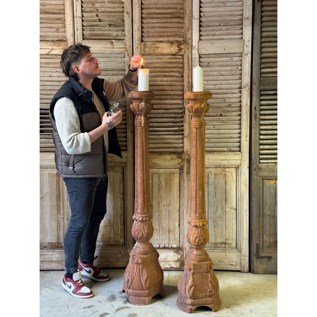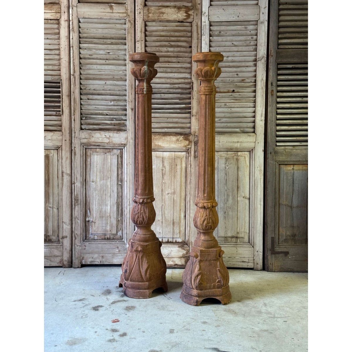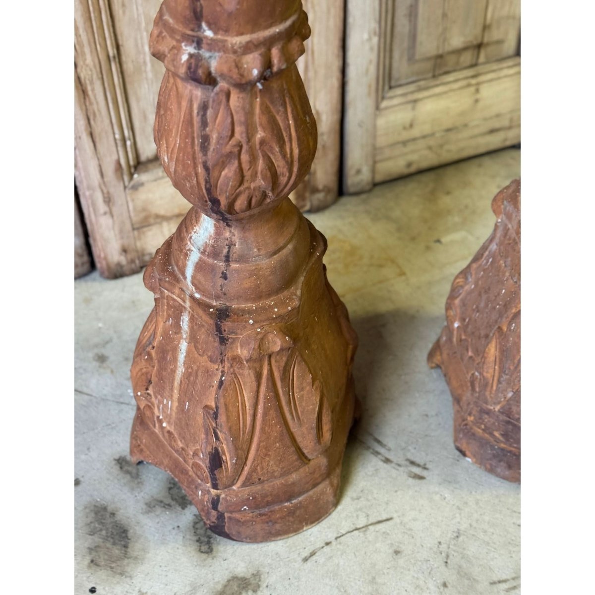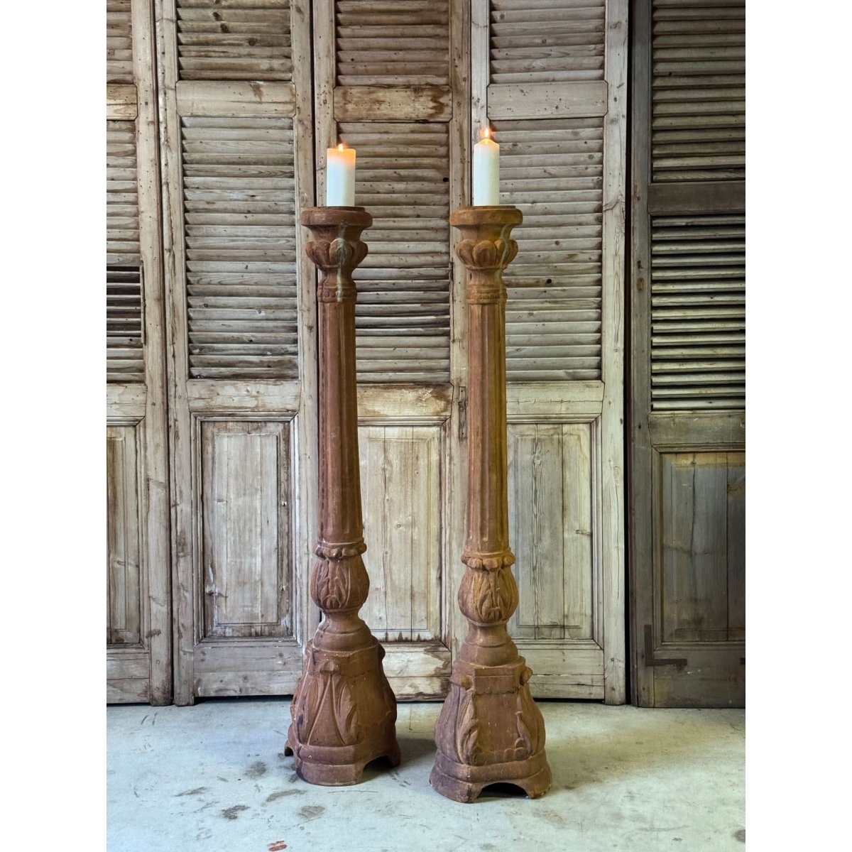 Beautiful pair of tall vintage terracotta columns / candle stands. Price is for the pair. Patina as expected with age.