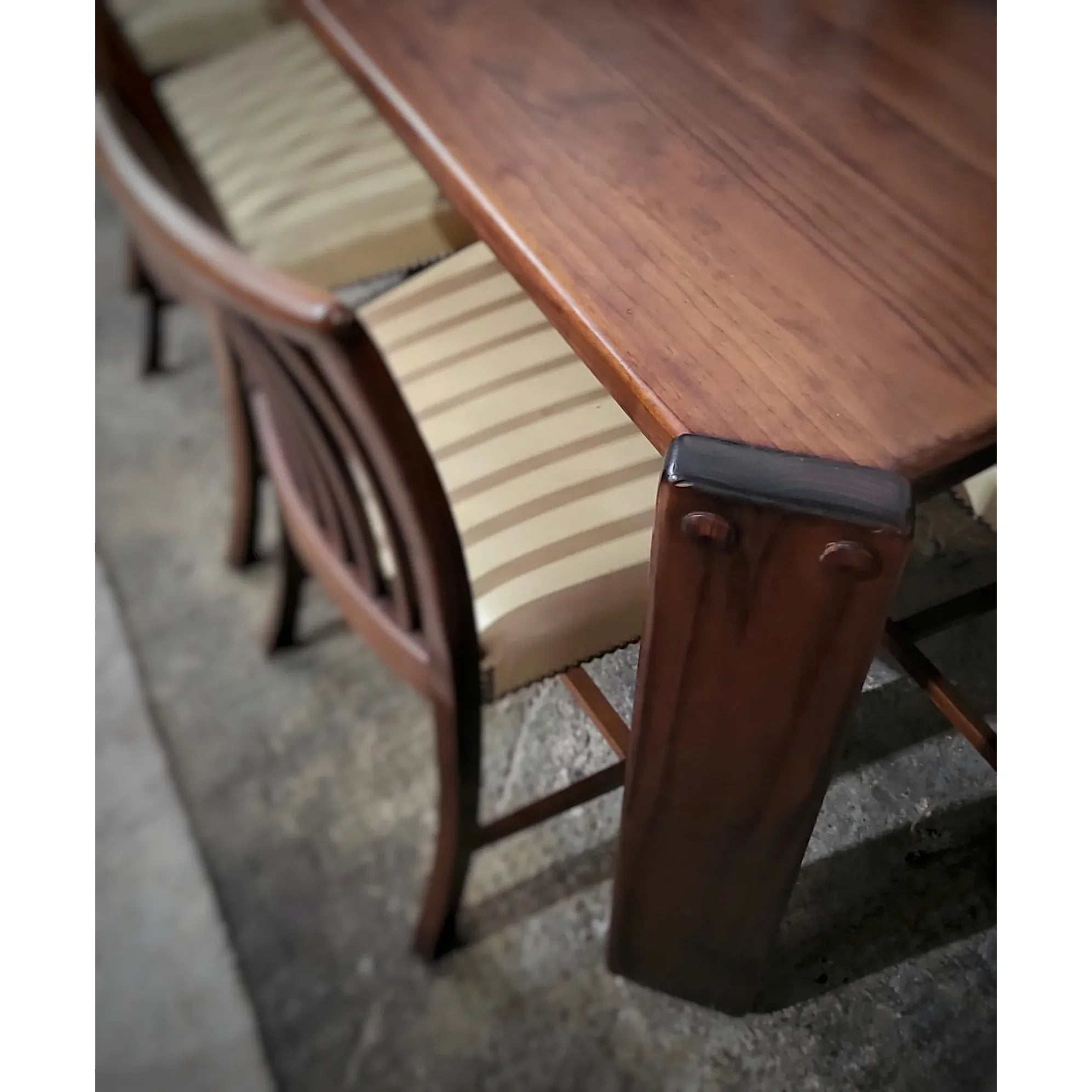 This piece has a rich patina and warm timber grain, making it a statement dining table or versatile work/creative table.