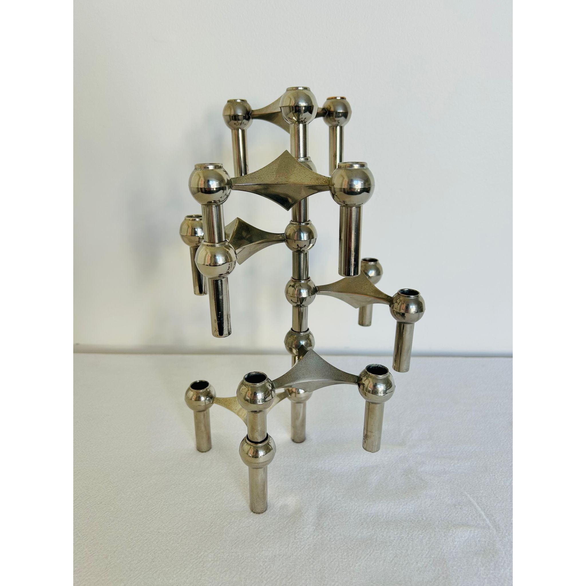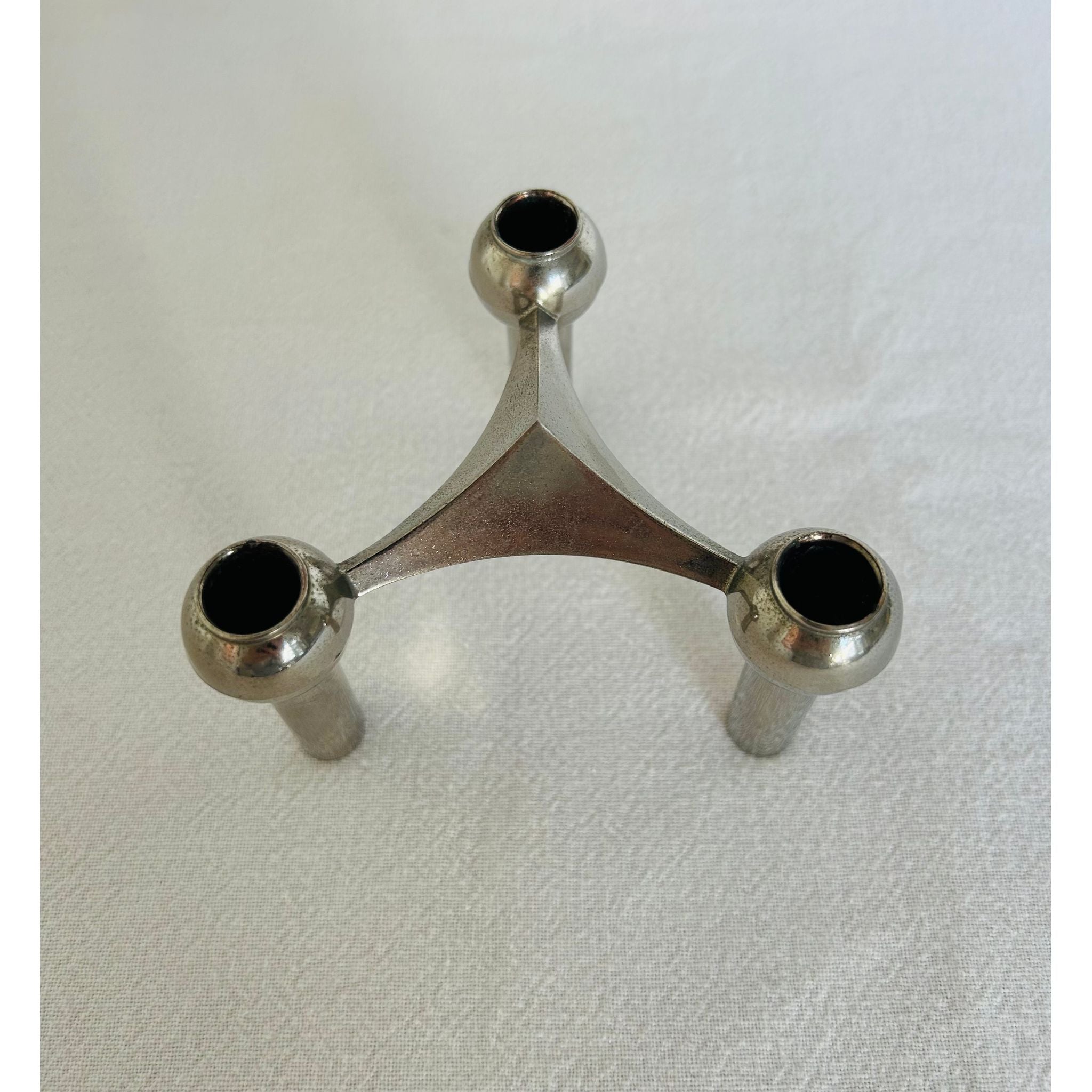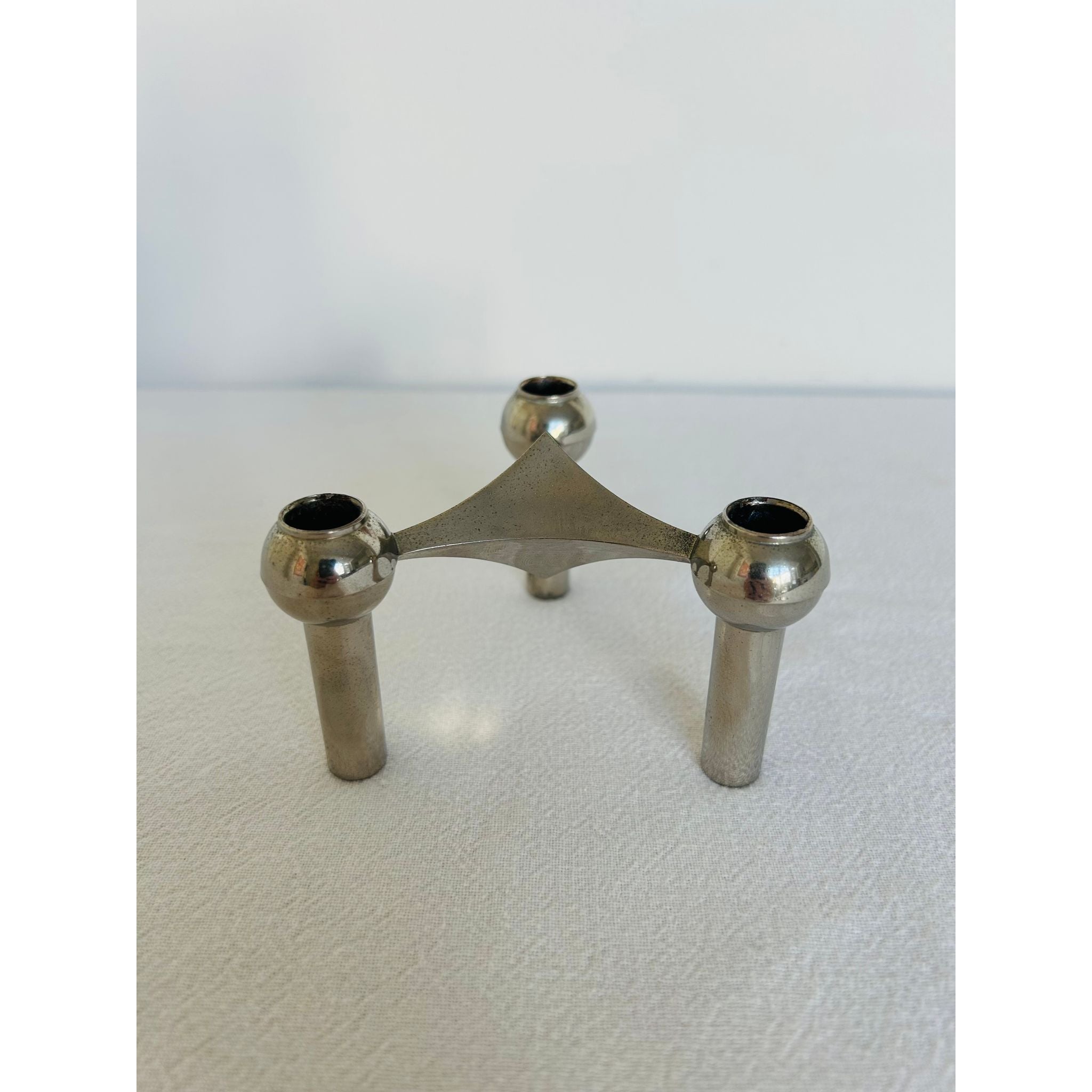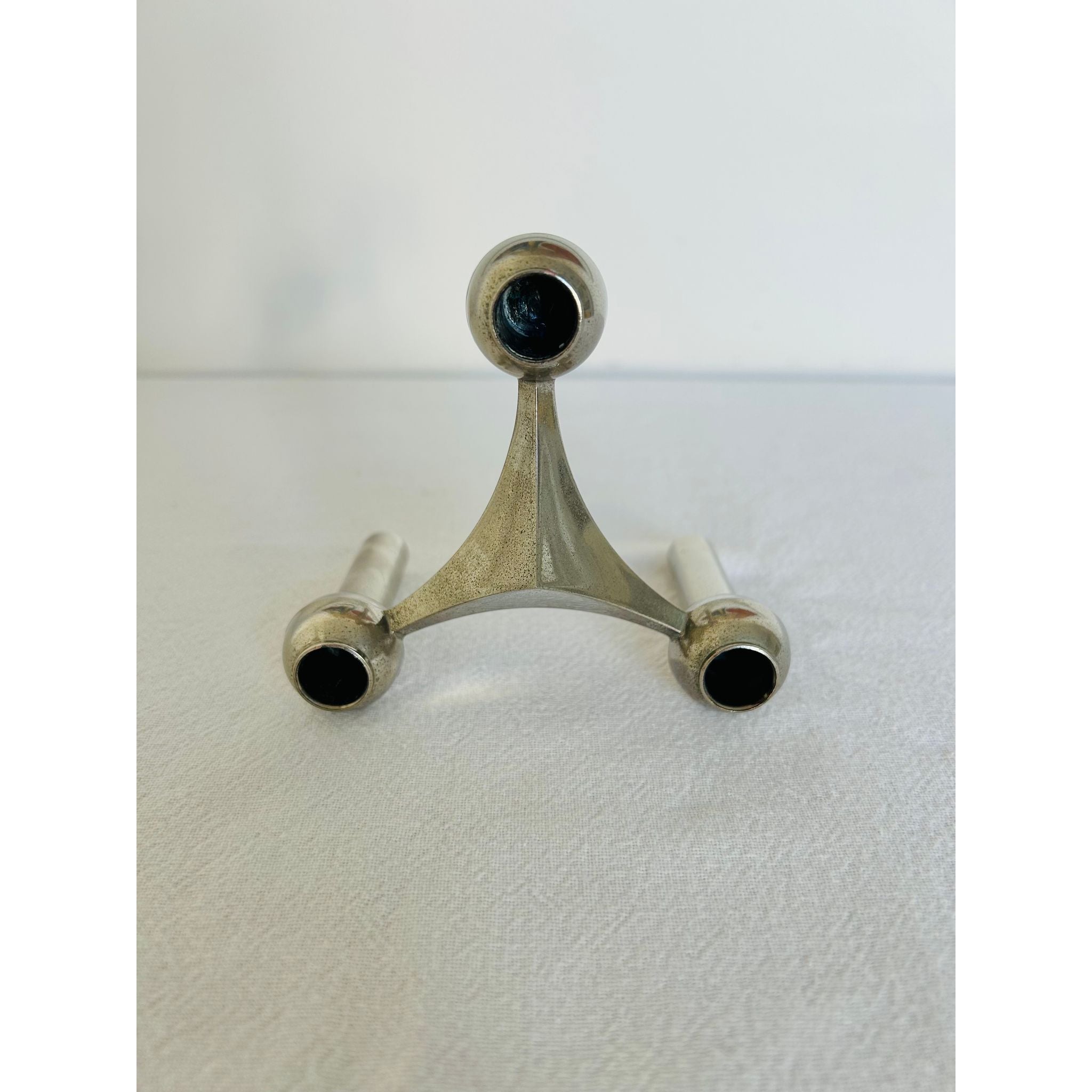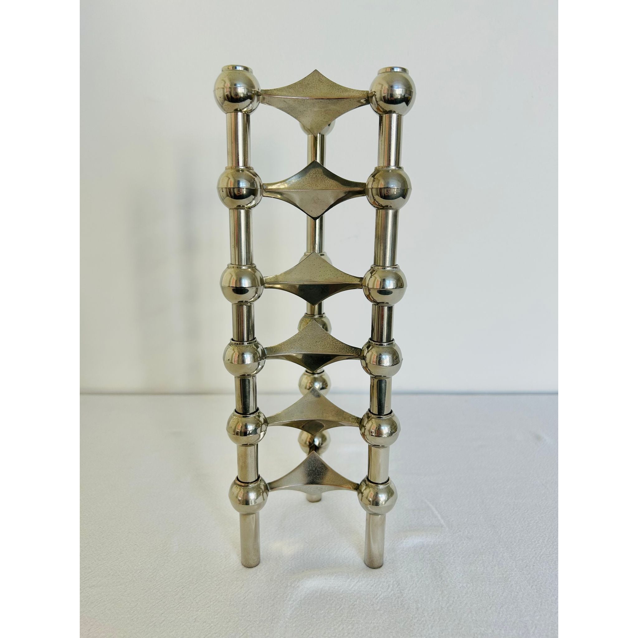 Crafted in chrome- plated metal, this piece reflects light beautifully and adds a touch of architectural elegance to any space. Whether adorned with taper candles or displayed as a standalone object, it remains a favourite among collectors and design enthusiasts worldwide.