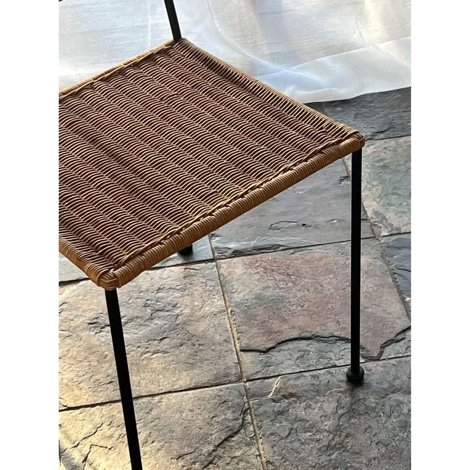 Crafted from natural/light brown woven wicker over a solid wrought iron matte black frame with rubber feet to protect floors.