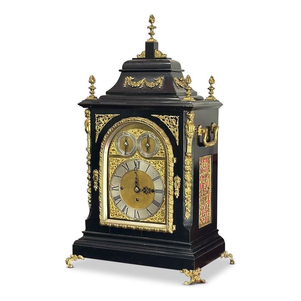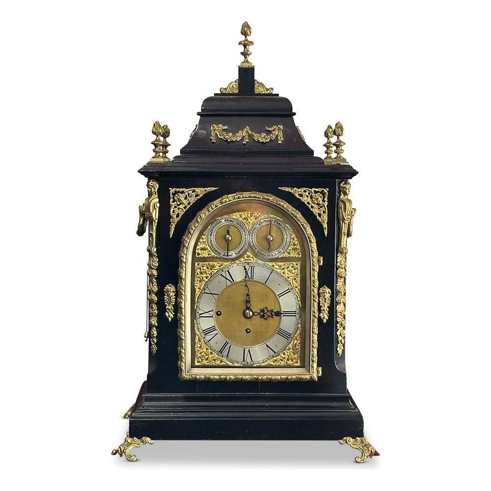 Introducing this superb clock from the 19th Century – An English ebonised bracket clock of large proportions with ormolu mounts.