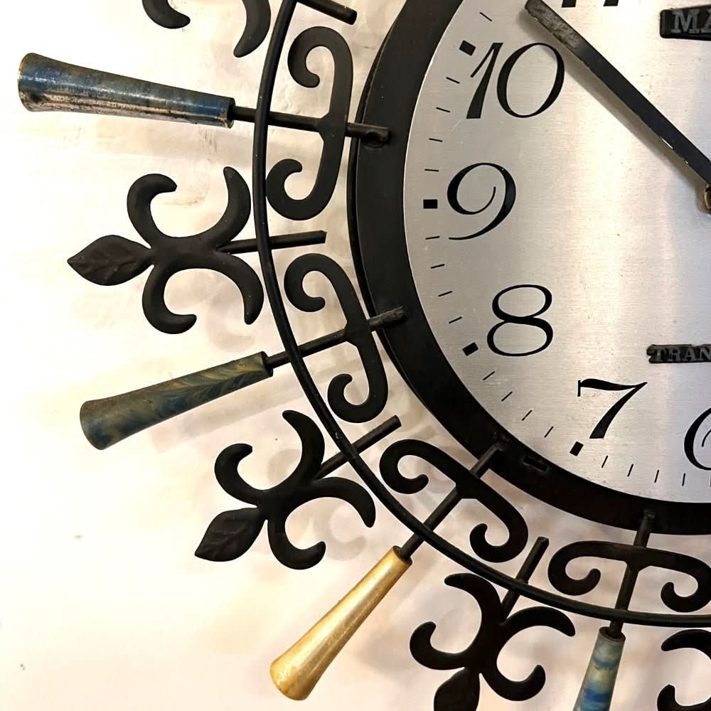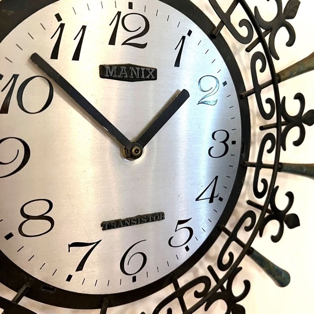 Manix starburst clock. Gold plastic tips have some wear/tarnish – please see images.