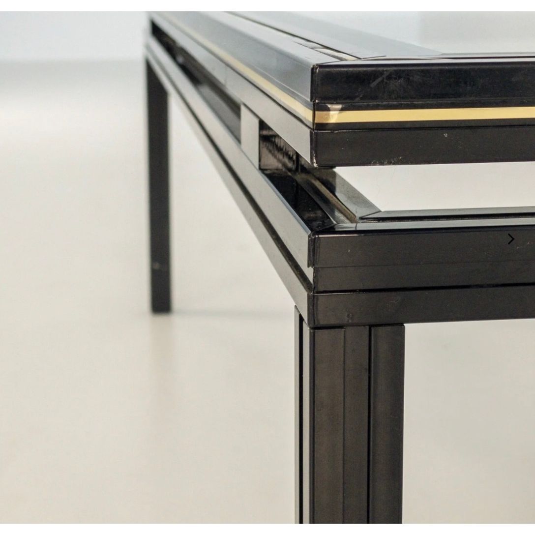 His company was known for their luxury coffee tables, characterised by their sleek and polished designs, often rendered in black or cream lacquer, lucite, or glass, and embellished with brass, silver or gold pin stripping.