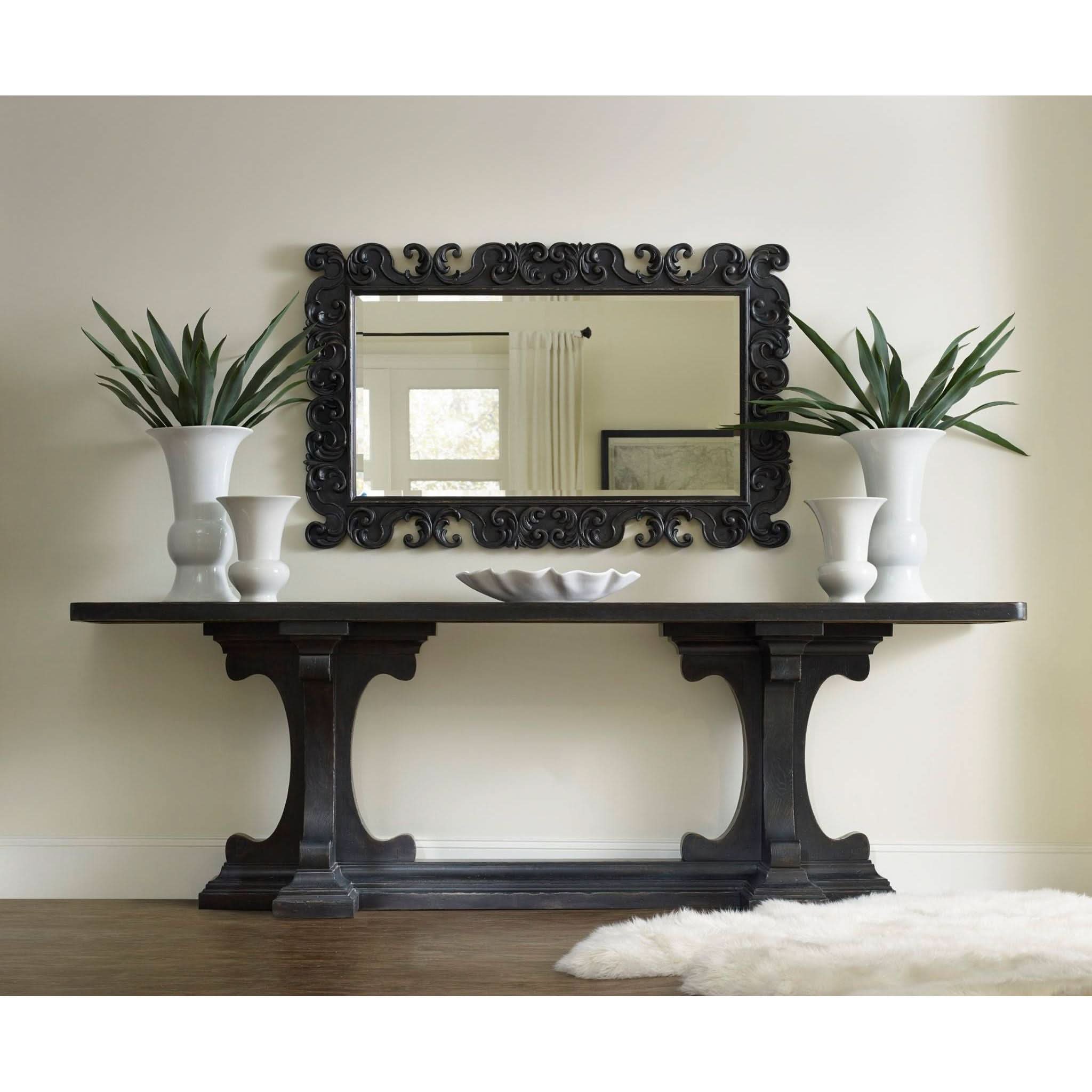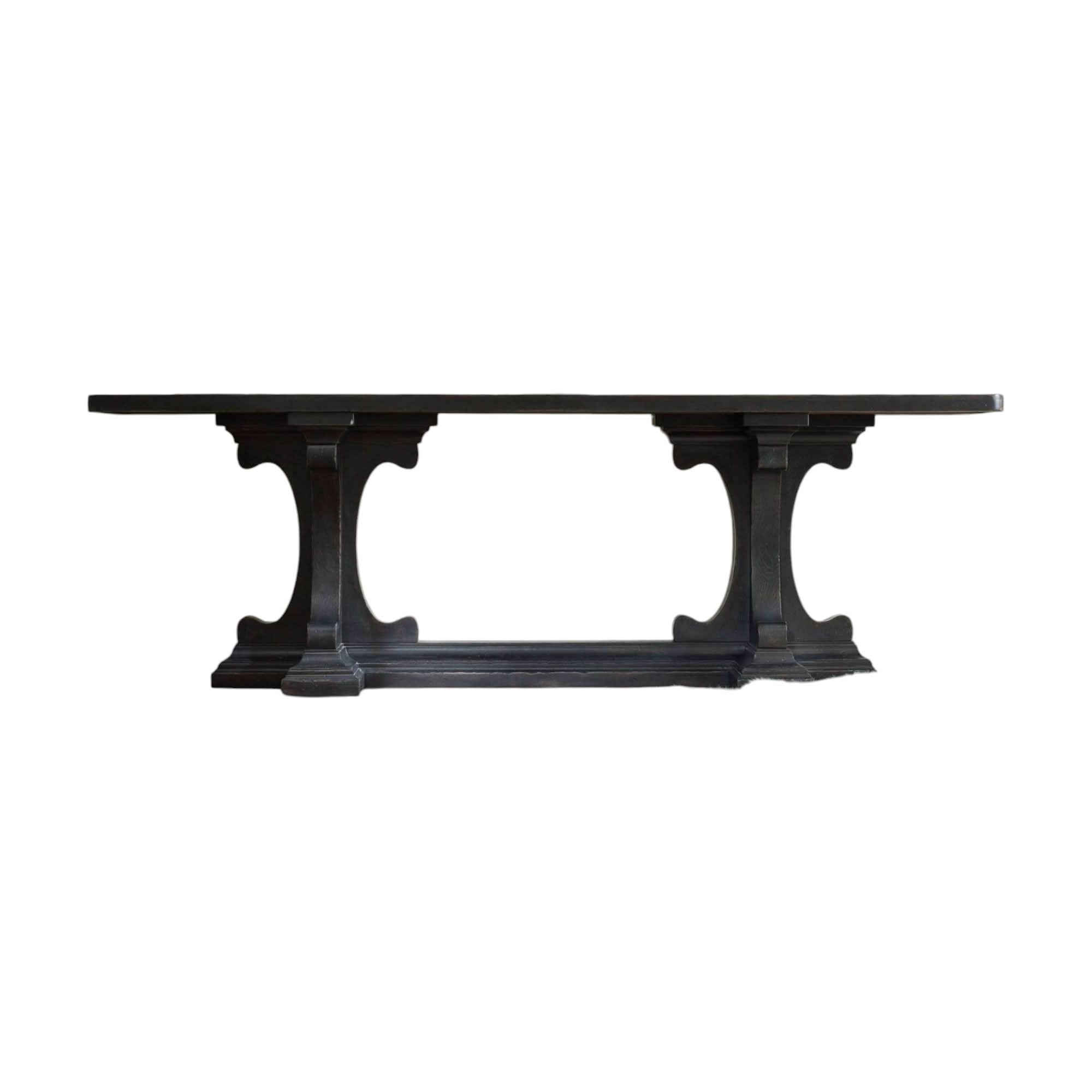 Stunning long console with double pedestal..aged oak timber Dark Charcoal/black colour