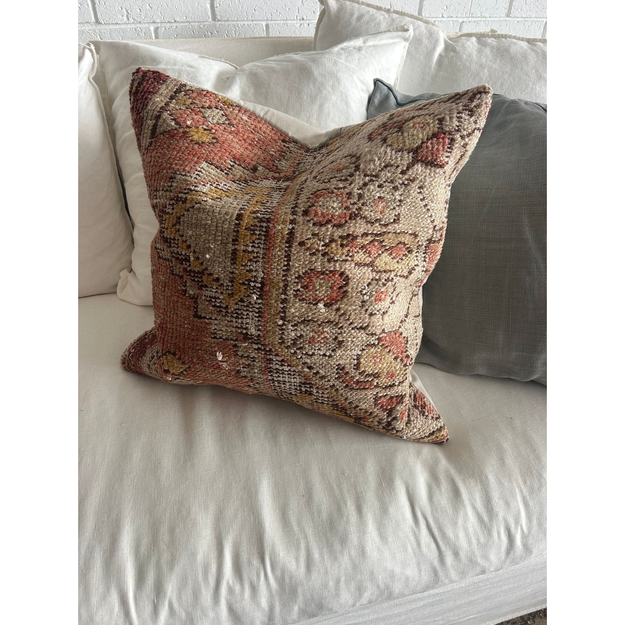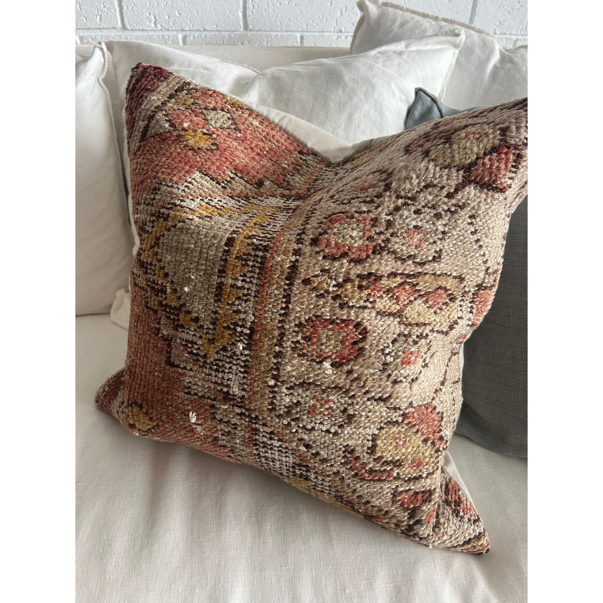 A gorgeous cushion, purposed from a vintage rug beyond repair.