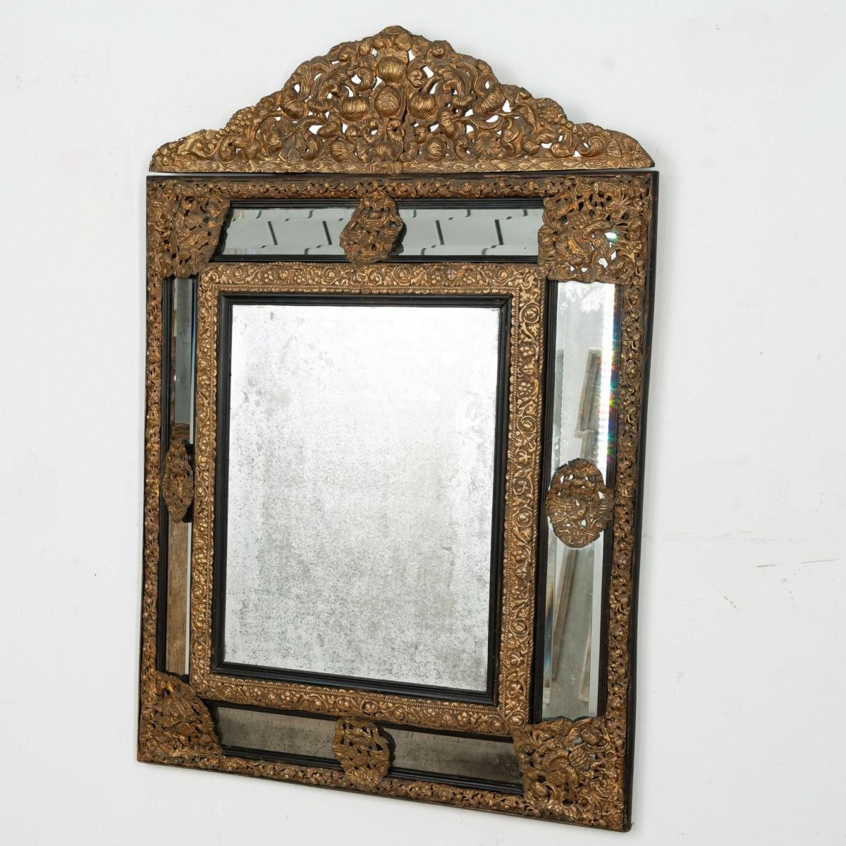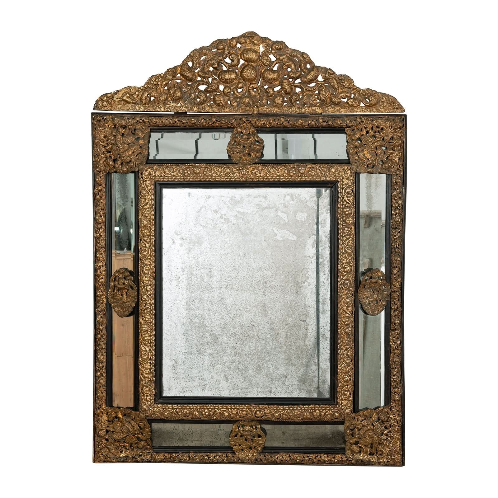 A Large 18th Century Gilt Metal Repousse Cushion Mirror